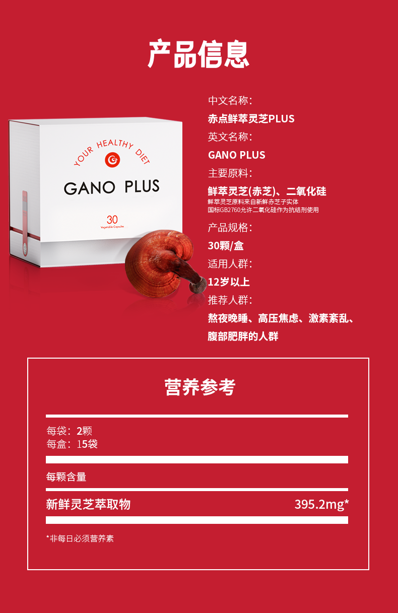 GanoExcel赤点鲜萃灵芝PLUS多重萃取冻干粉灵芝萃取物30颗装