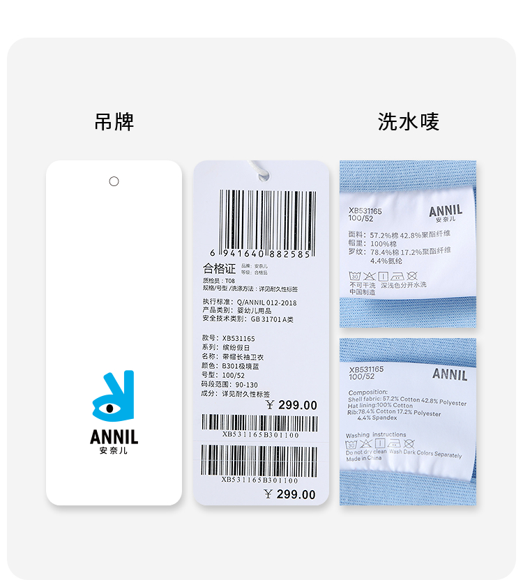 【实体店同款】男童带帽长袖卫衣秋季新款安奈儿童装XB531165