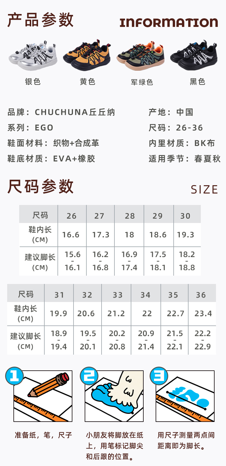 【赠袜子1双】轻户外运动鞋 | CHUCHUNA丘丘纳 儿童休闲鞋 男童女童运动鞋 可水洗 轻户外百搭运动鞋EGO系列