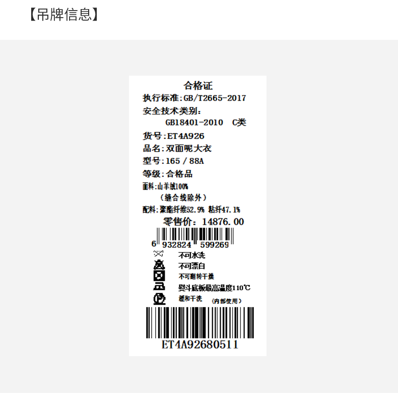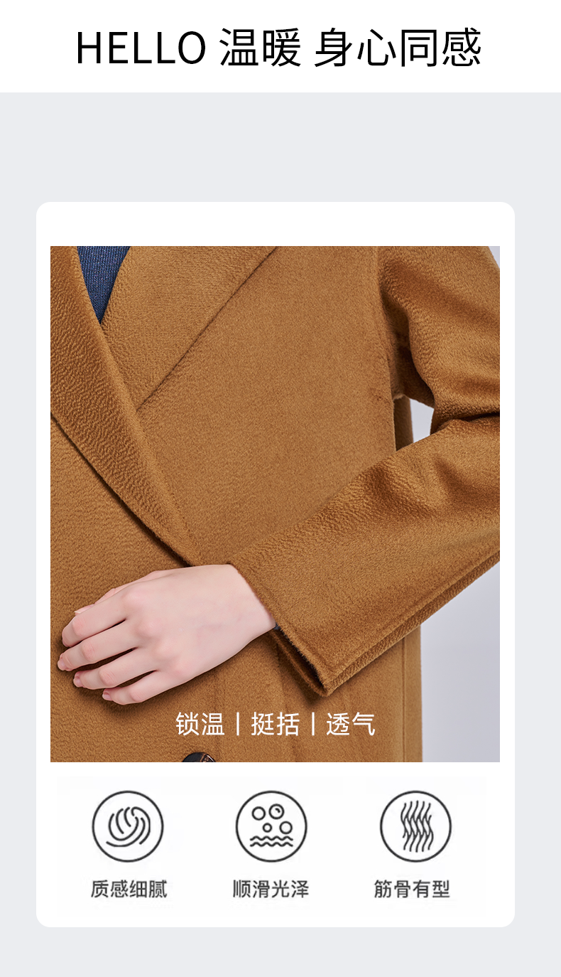 【100%羊绒】乔万尼新款100%山羊绒大衣高级感毛呢外套ET4A926