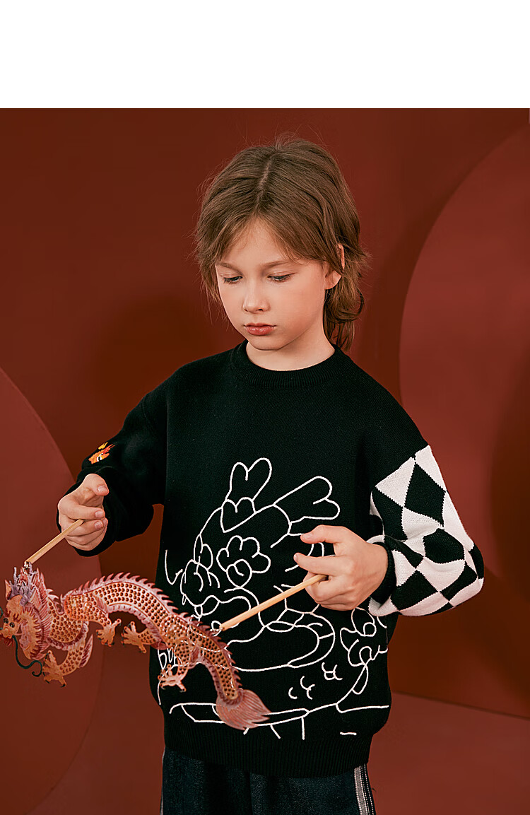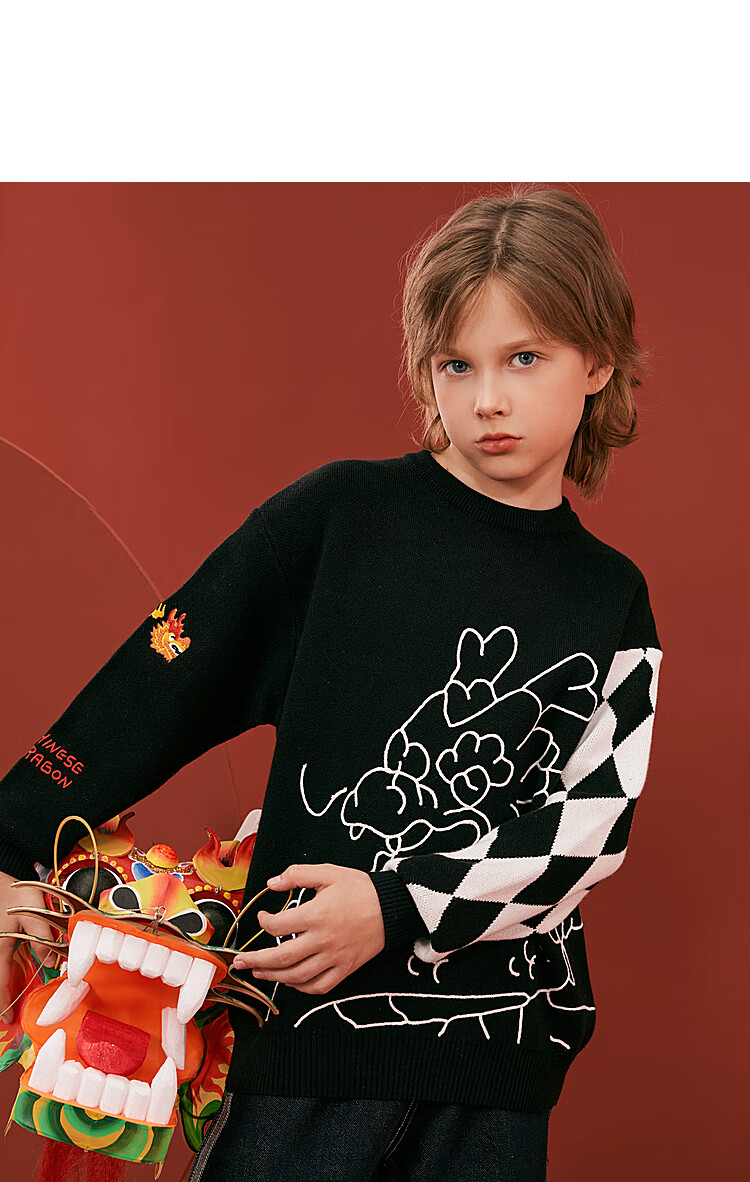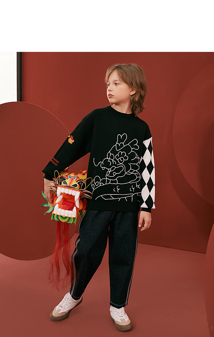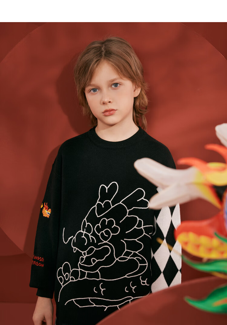 【MQD】童装冬季新款男童女童毛衣红色新年加厚儿童针织衫龙年潮