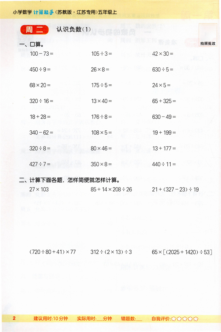 2025秋 小学数学计算能手5上 含答案 通城学典 小学五年级上册 口算估算笔算 苏教版 小学数学5上 江苏专用 强化训练练习题