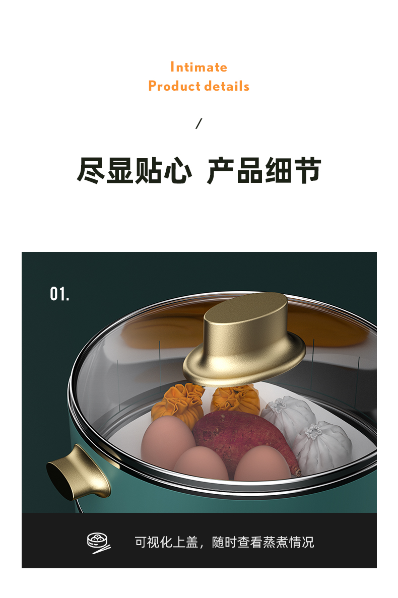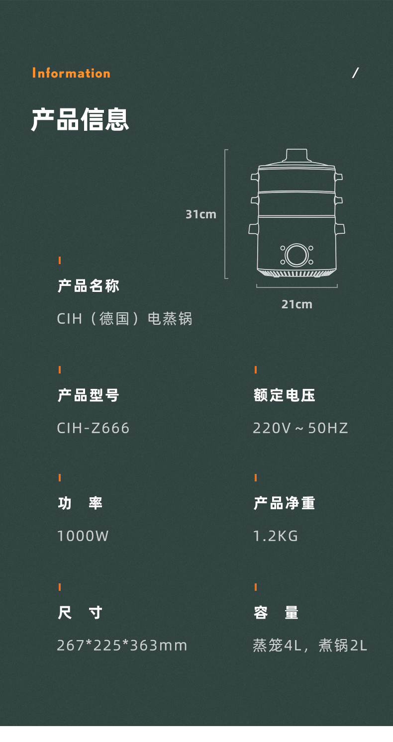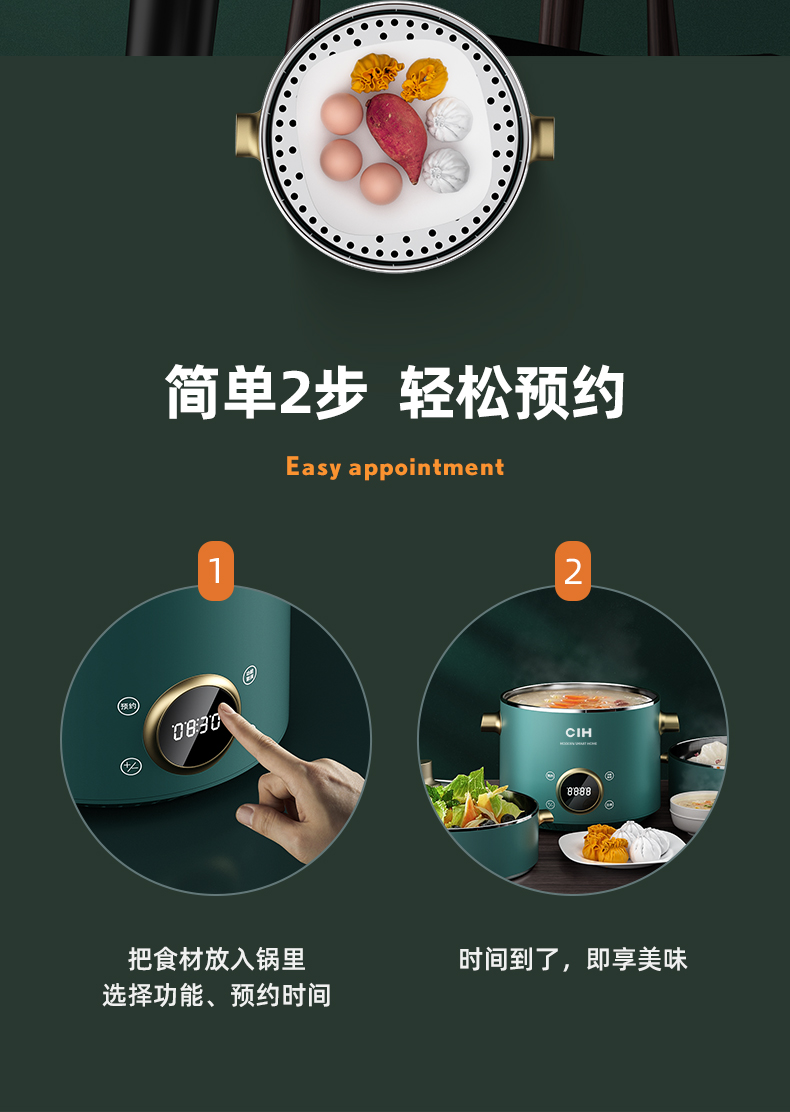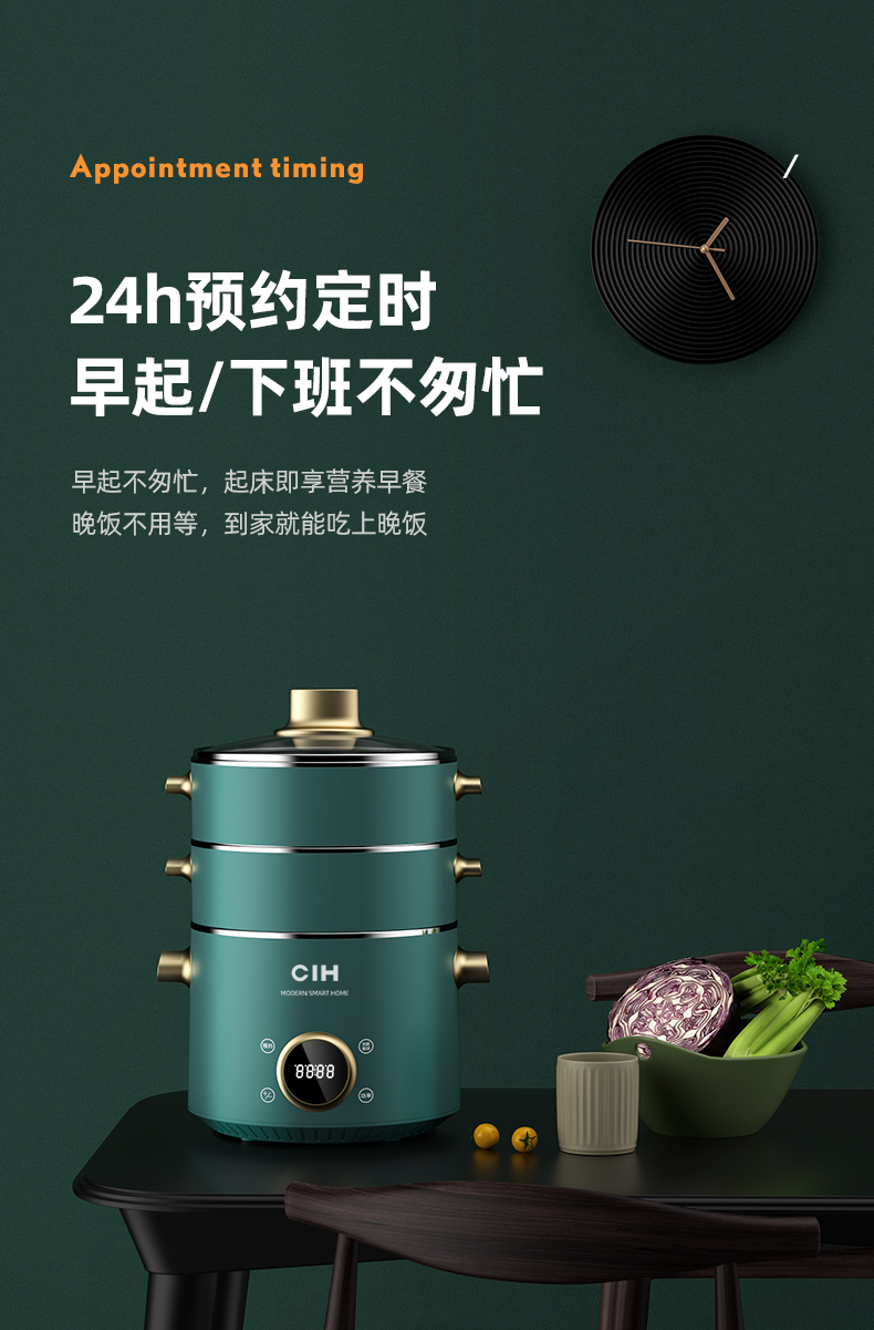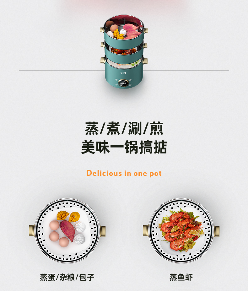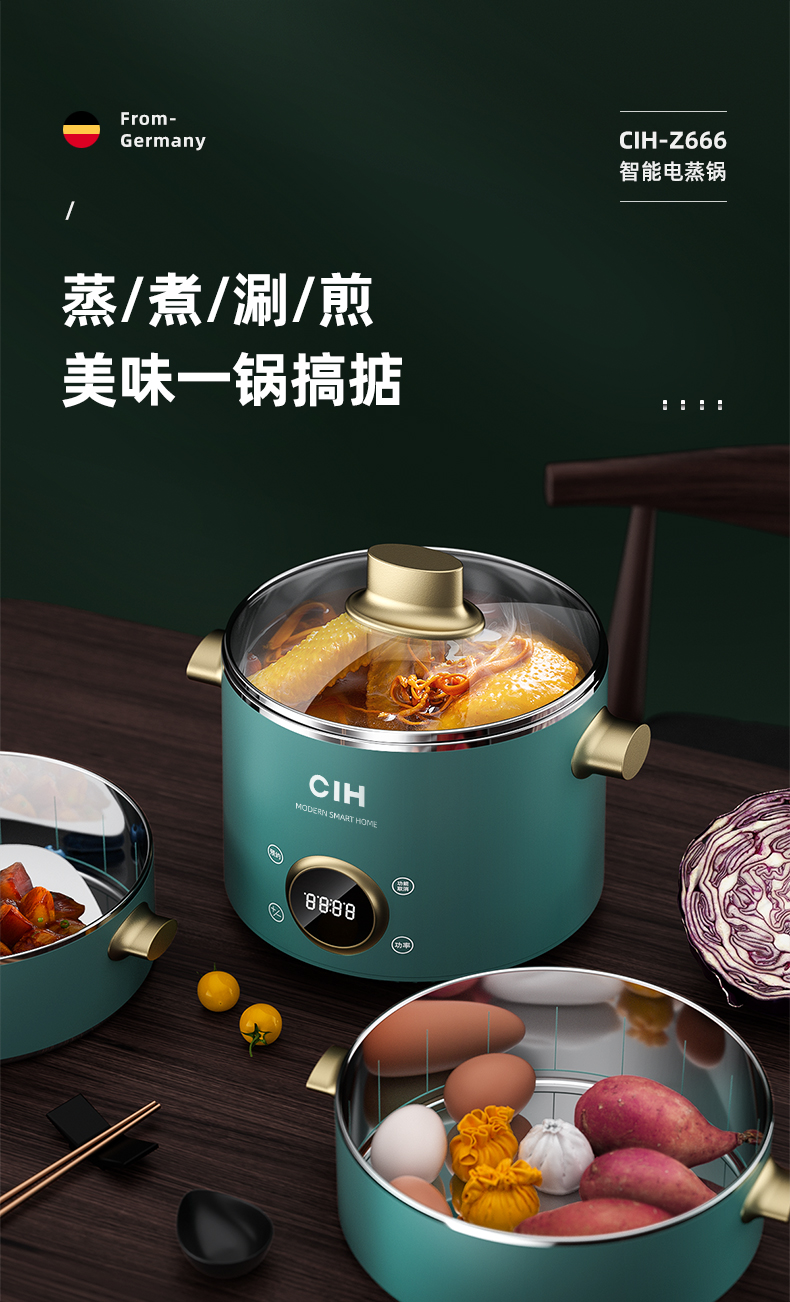 德国CIH 复古多功能电蒸锅神器家用三层小型蒸菜馒头包子蒸笼电锅
