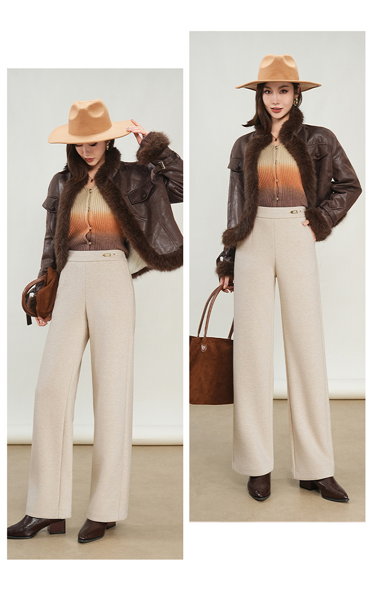 QYM K560-Y毛呢阔腿裤厚款直筒垂感休闲裤 商品图4