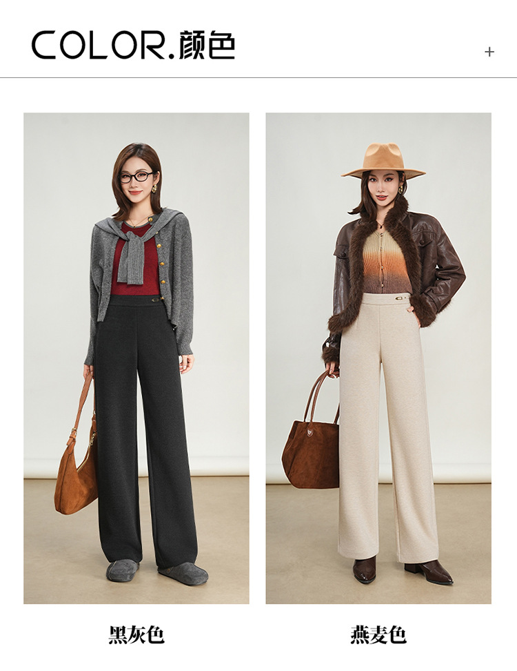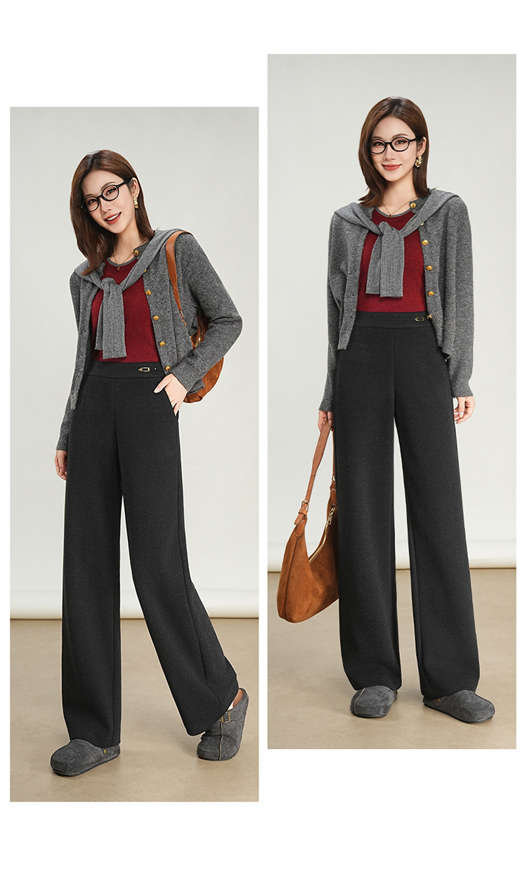 QYM K560-Y毛呢阔腿裤厚款直筒垂感休闲裤 商品图1