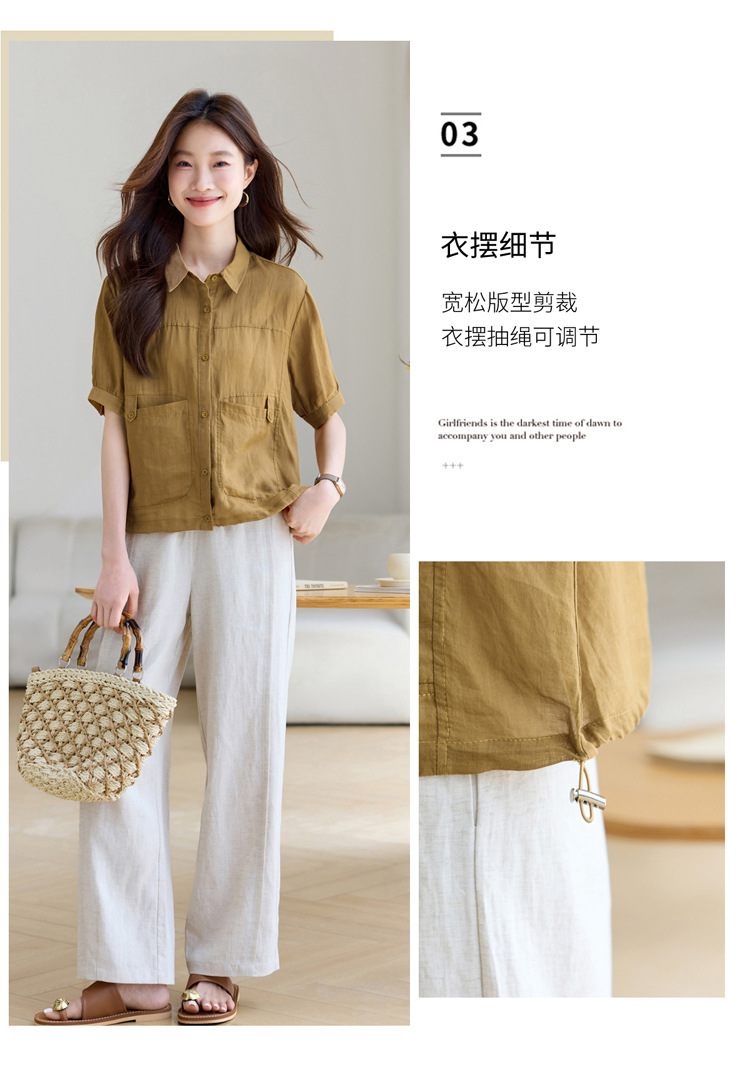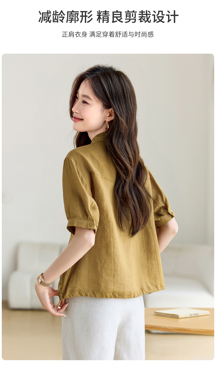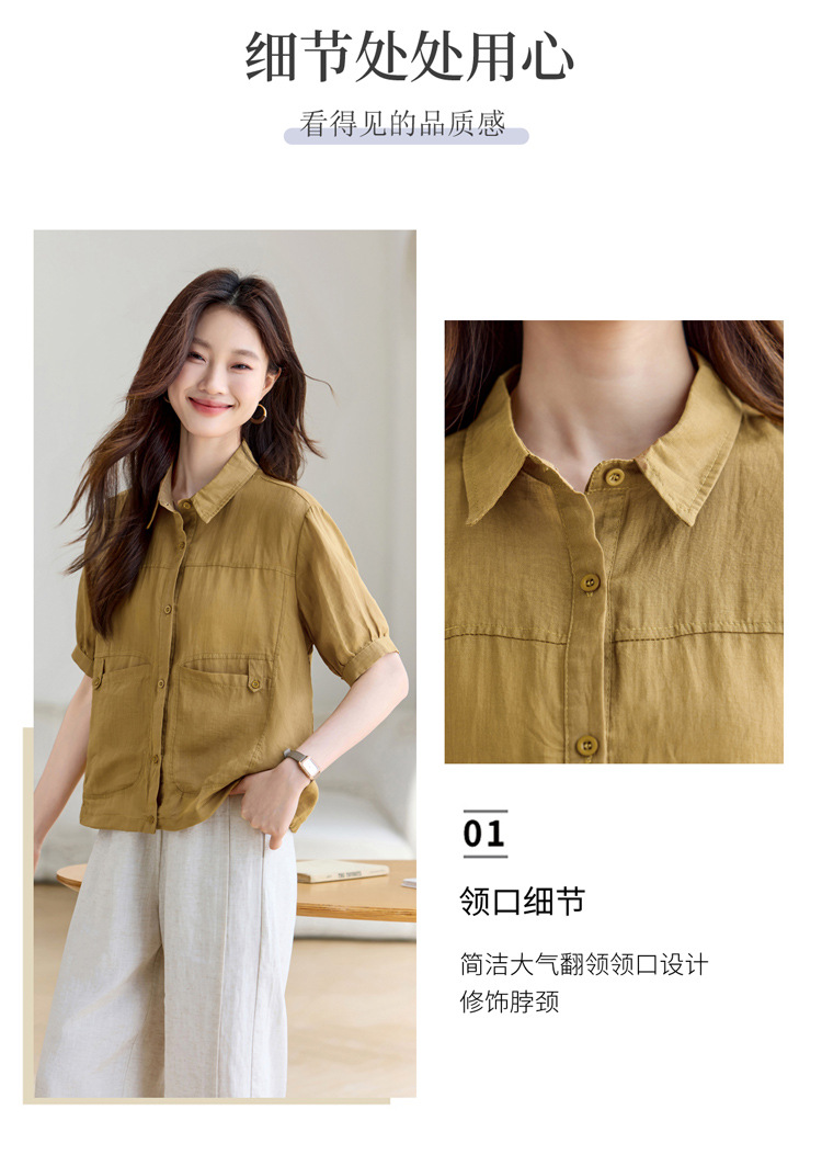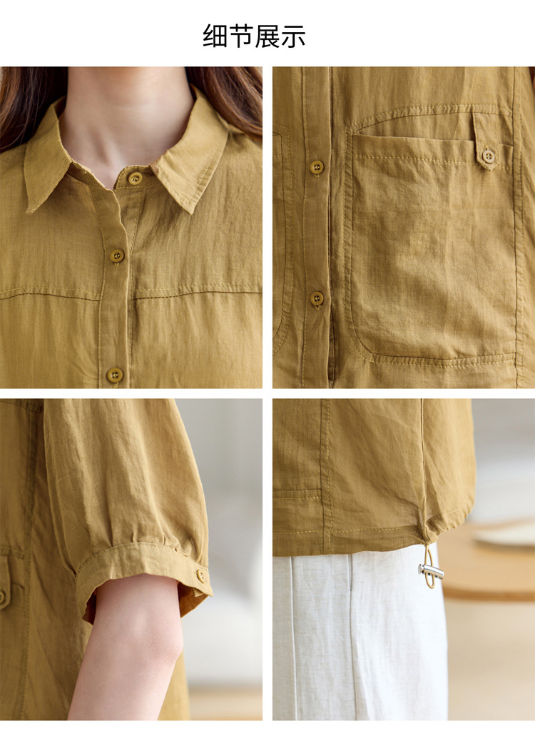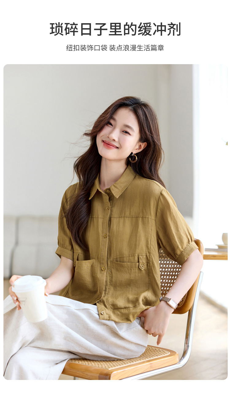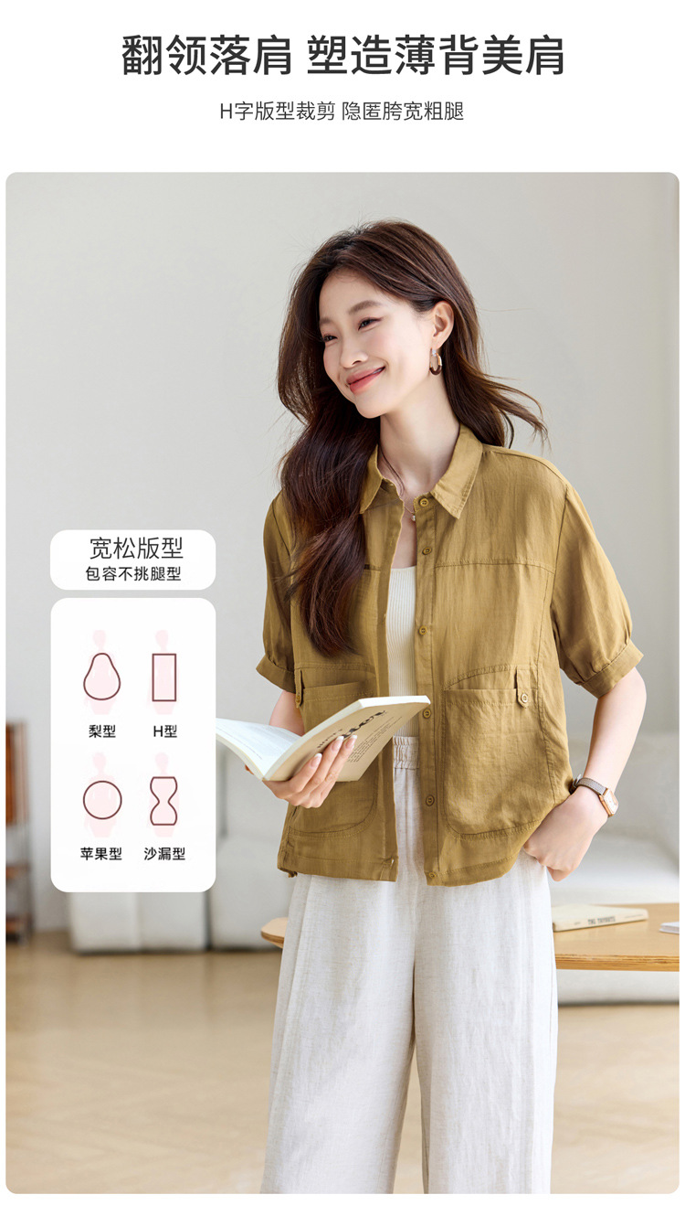 HR MUZL88060宽松麻料翻领衬衣时尚上衣