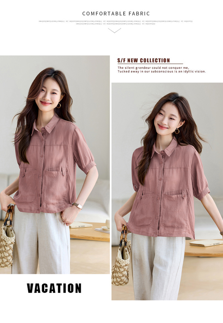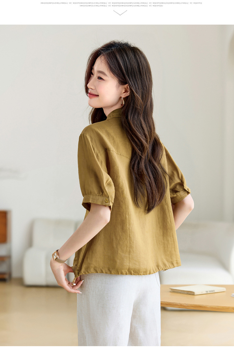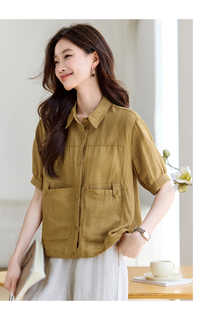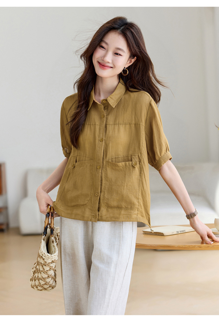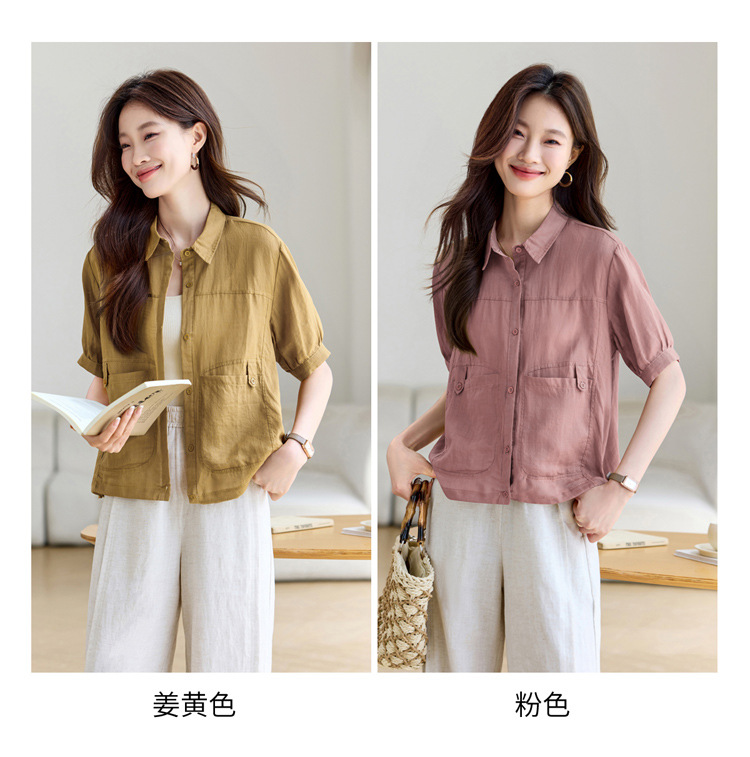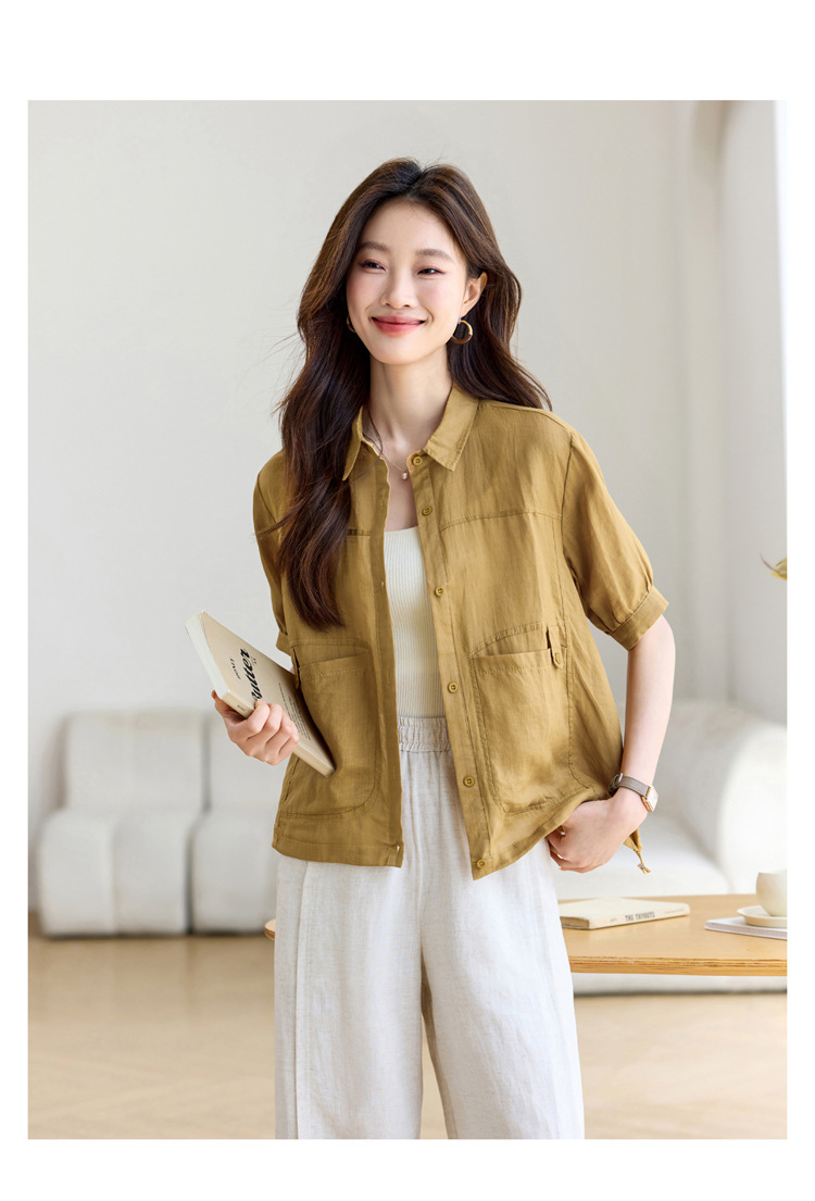 HR MUZL88060宽松麻料翻领衬衣时尚上衣