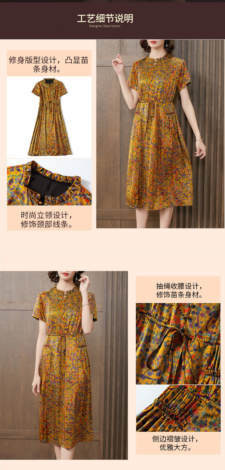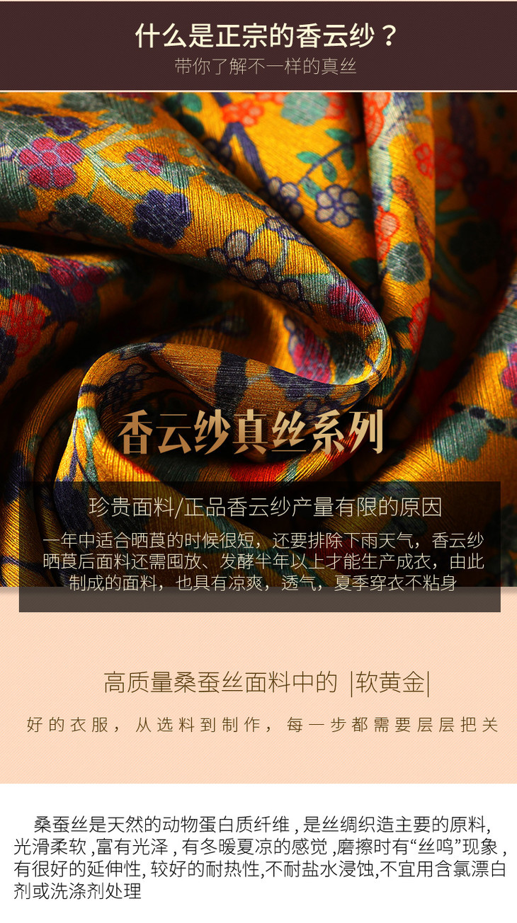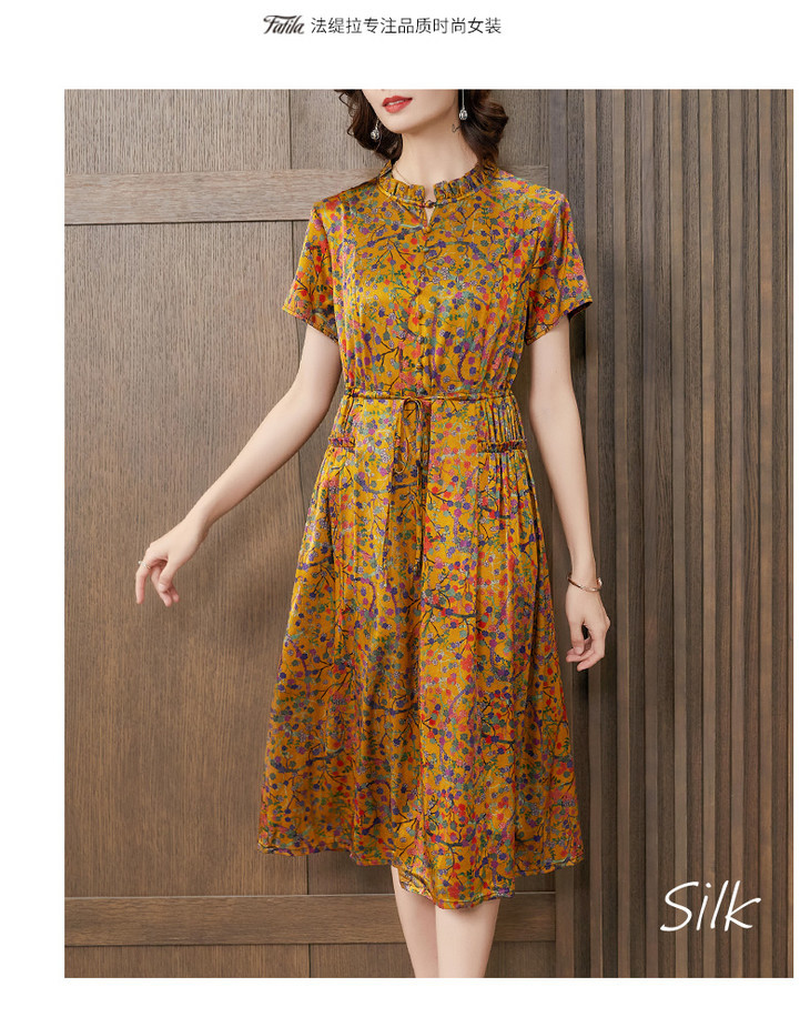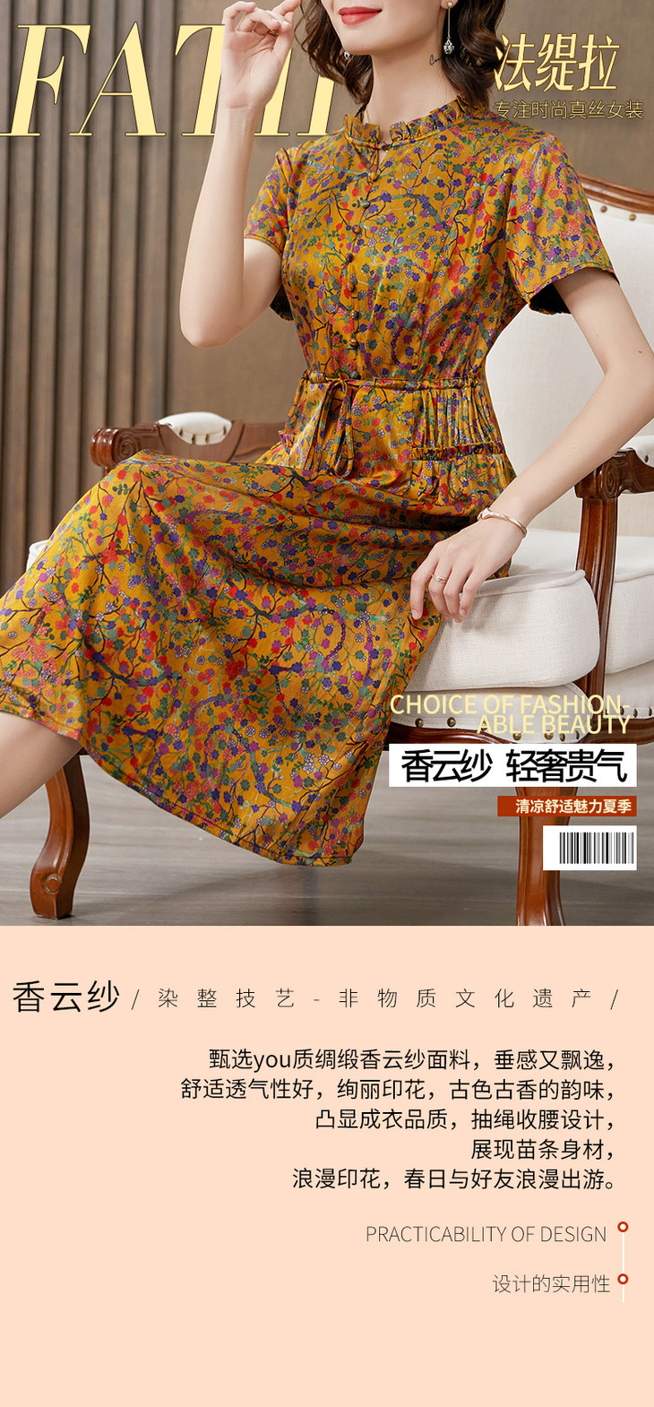 XT 21017-1活力气质宽松腰小碎花香云纱桑蚕丝连衣裙