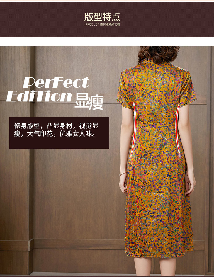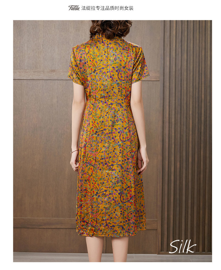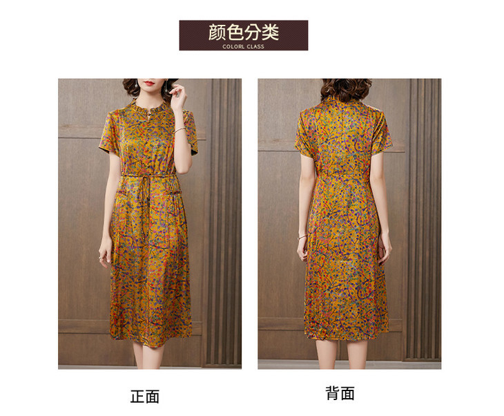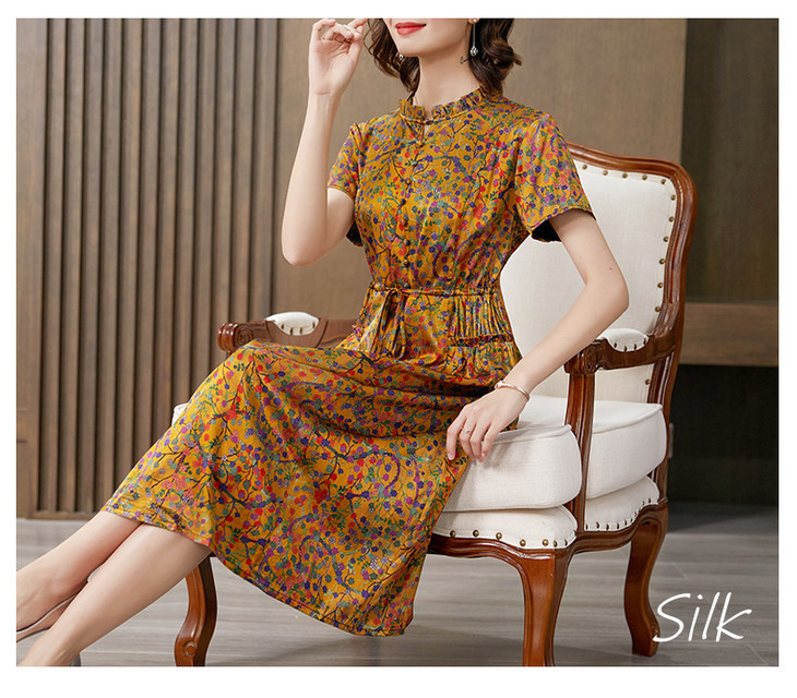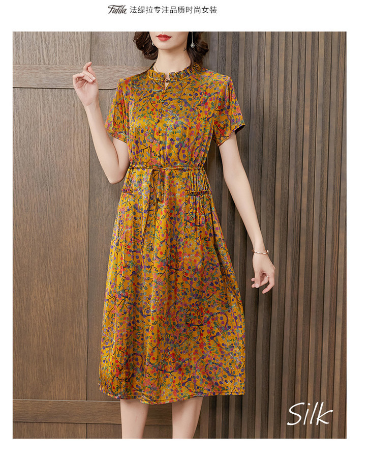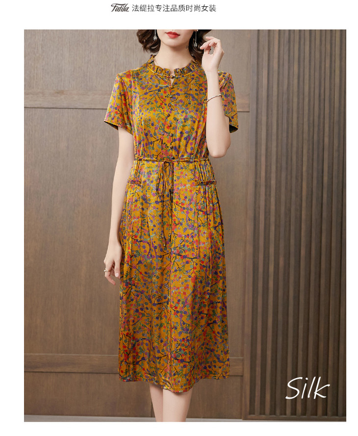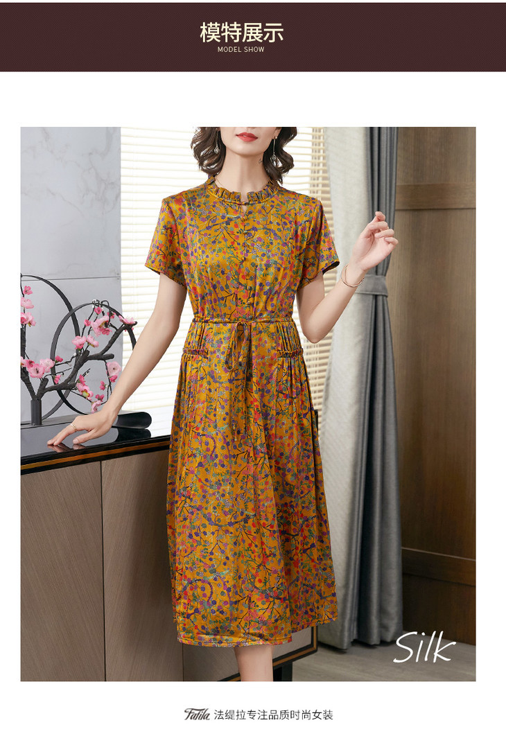 XT 21017-1活力气质宽松腰小碎花香云纱桑蚕丝连衣裙