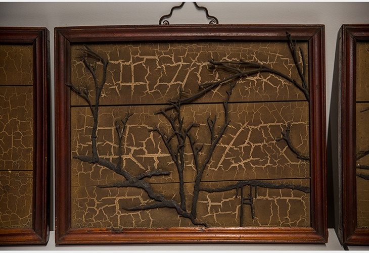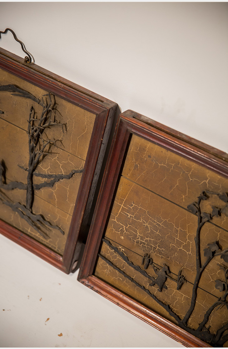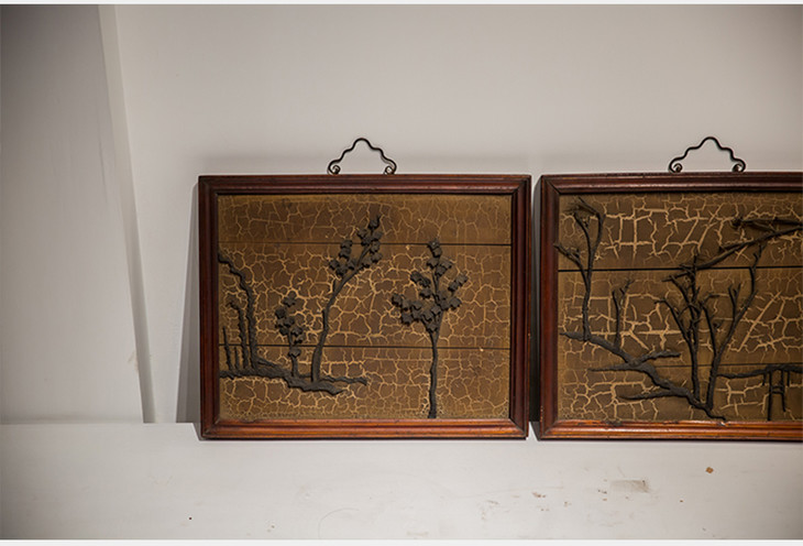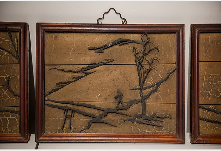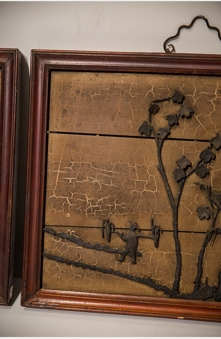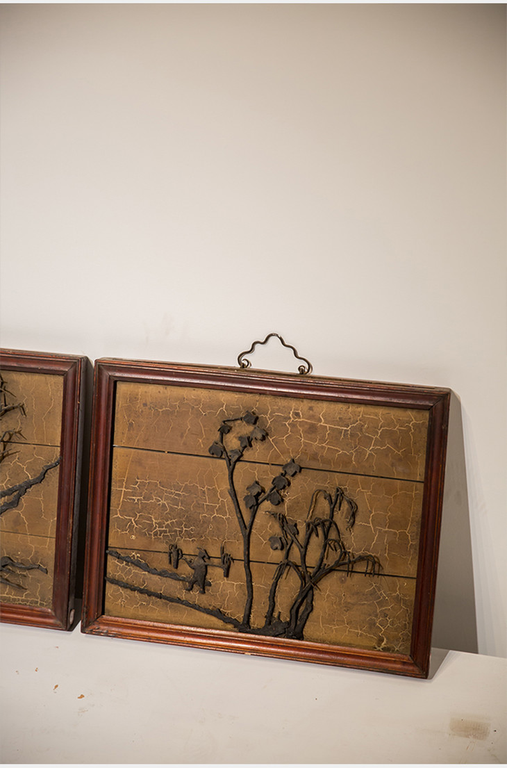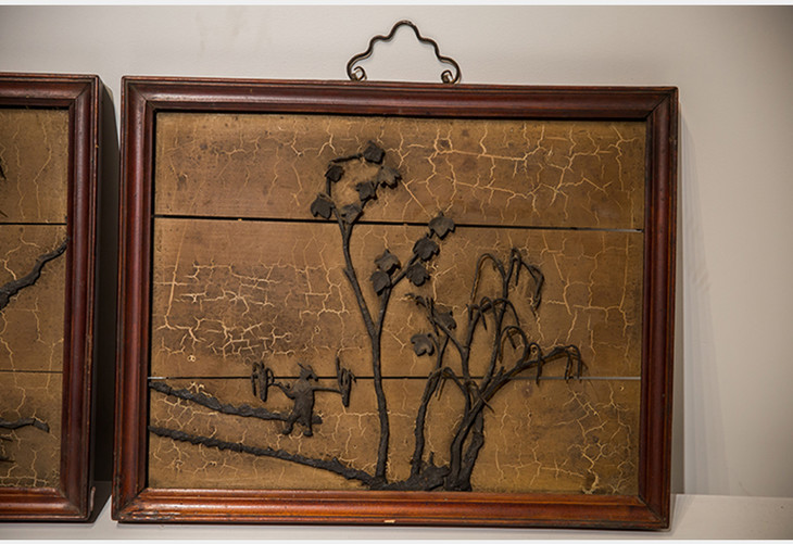 清代 红木镶瘿木嵌寿山石山水人物插屏