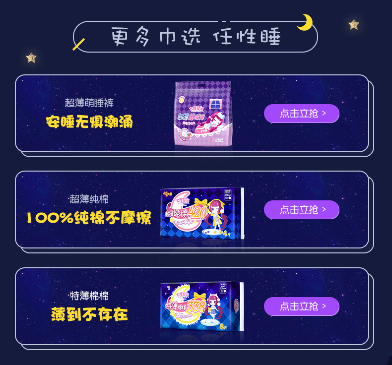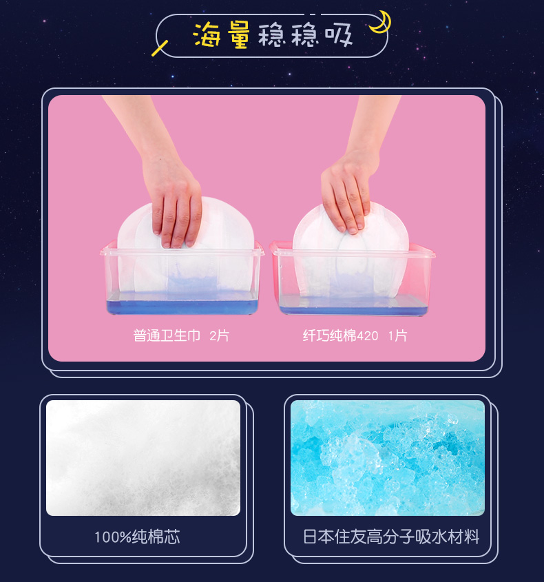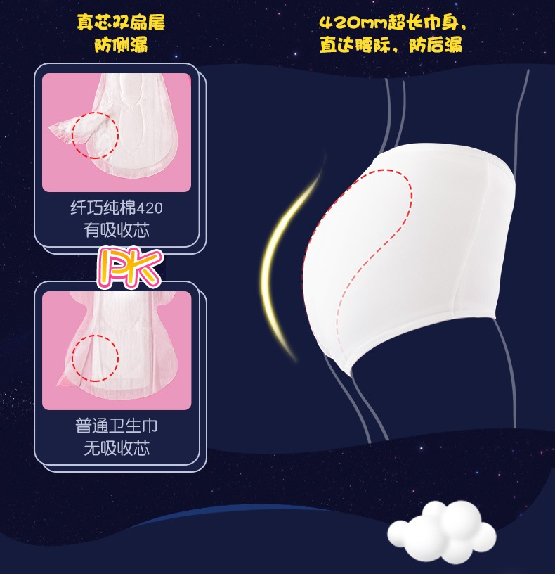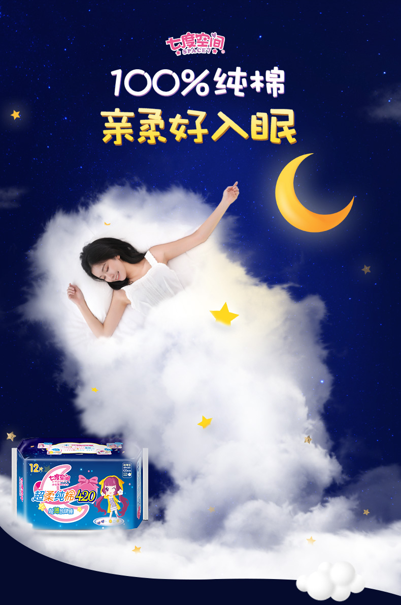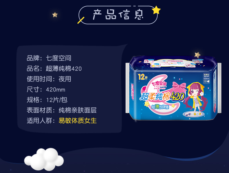 七度空间(SPACE7) 少女超薄纯棉 加量超特长甜睡量多夜用卫生巾420mm*12片