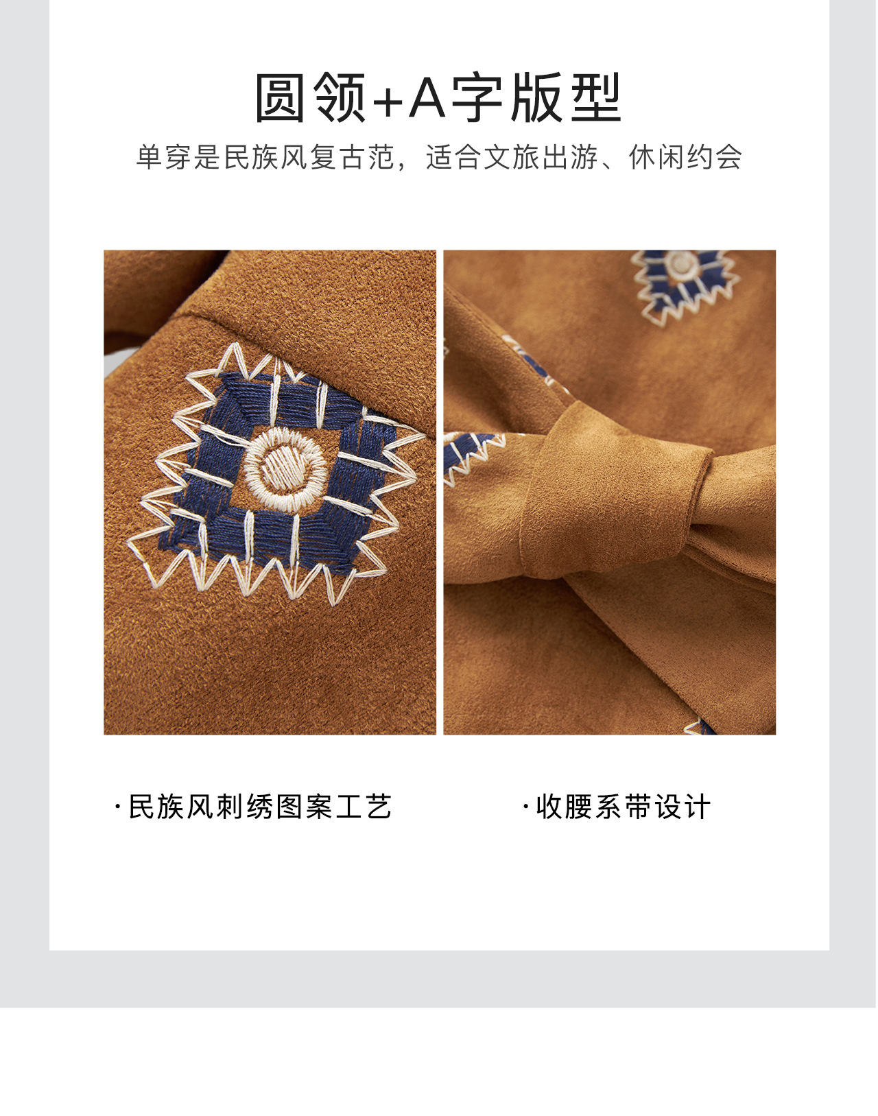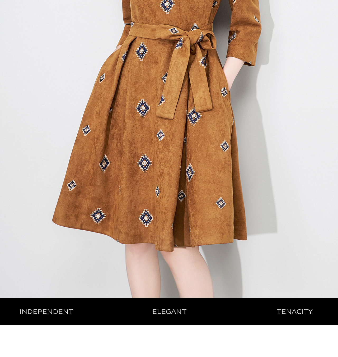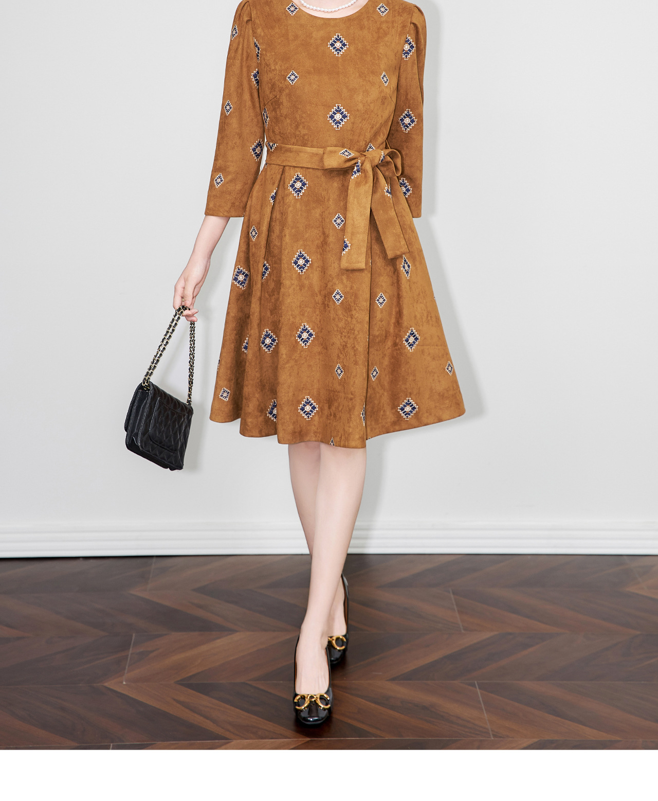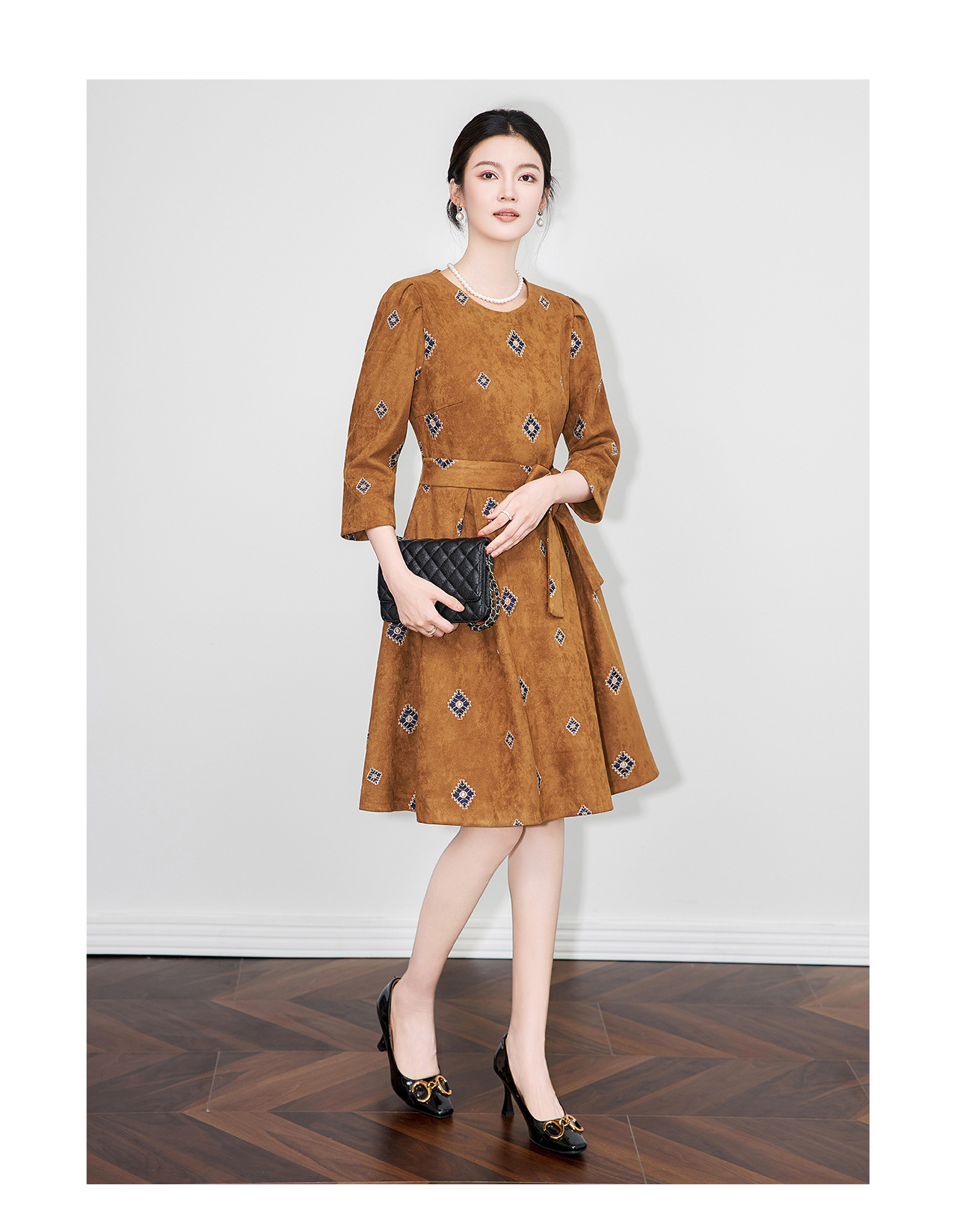 「高货wl」全新升级【铂金会员339/天猫459/差价120】(12828)洛诗琳轻奢重工刺绣连衣裙2025秋冬麂皮绒复古收腰大摆裙