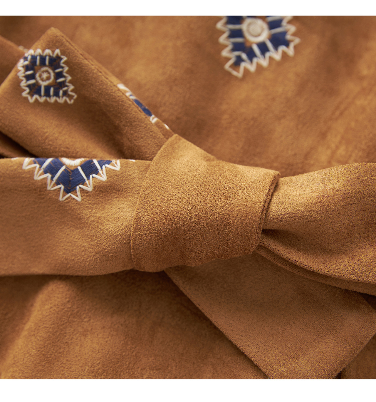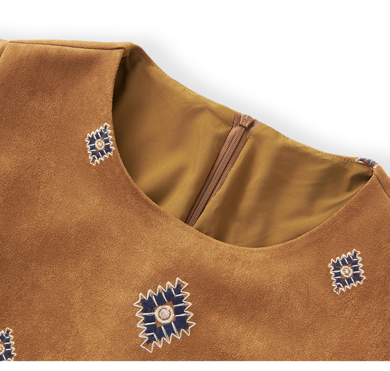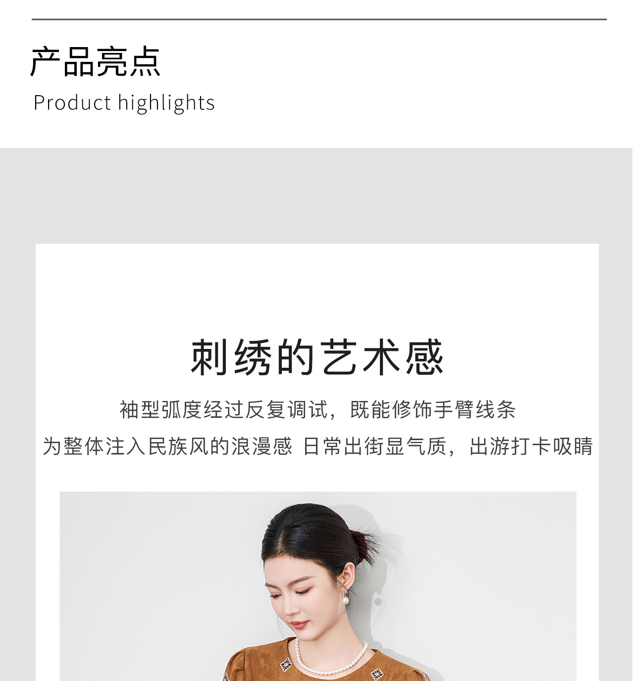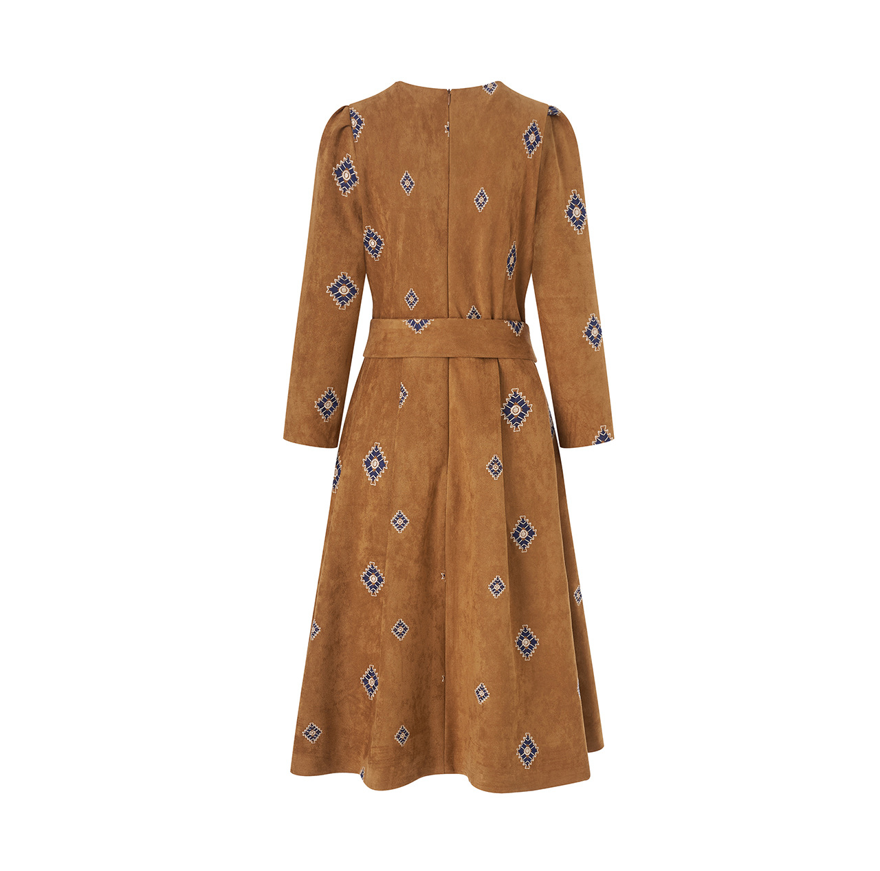 「高货wl」全新升级【铂金会员339/天猫459/差价120】(12828)洛诗琳轻奢重工刺绣连衣裙2025秋冬麂皮绒复古收腰大摆裙