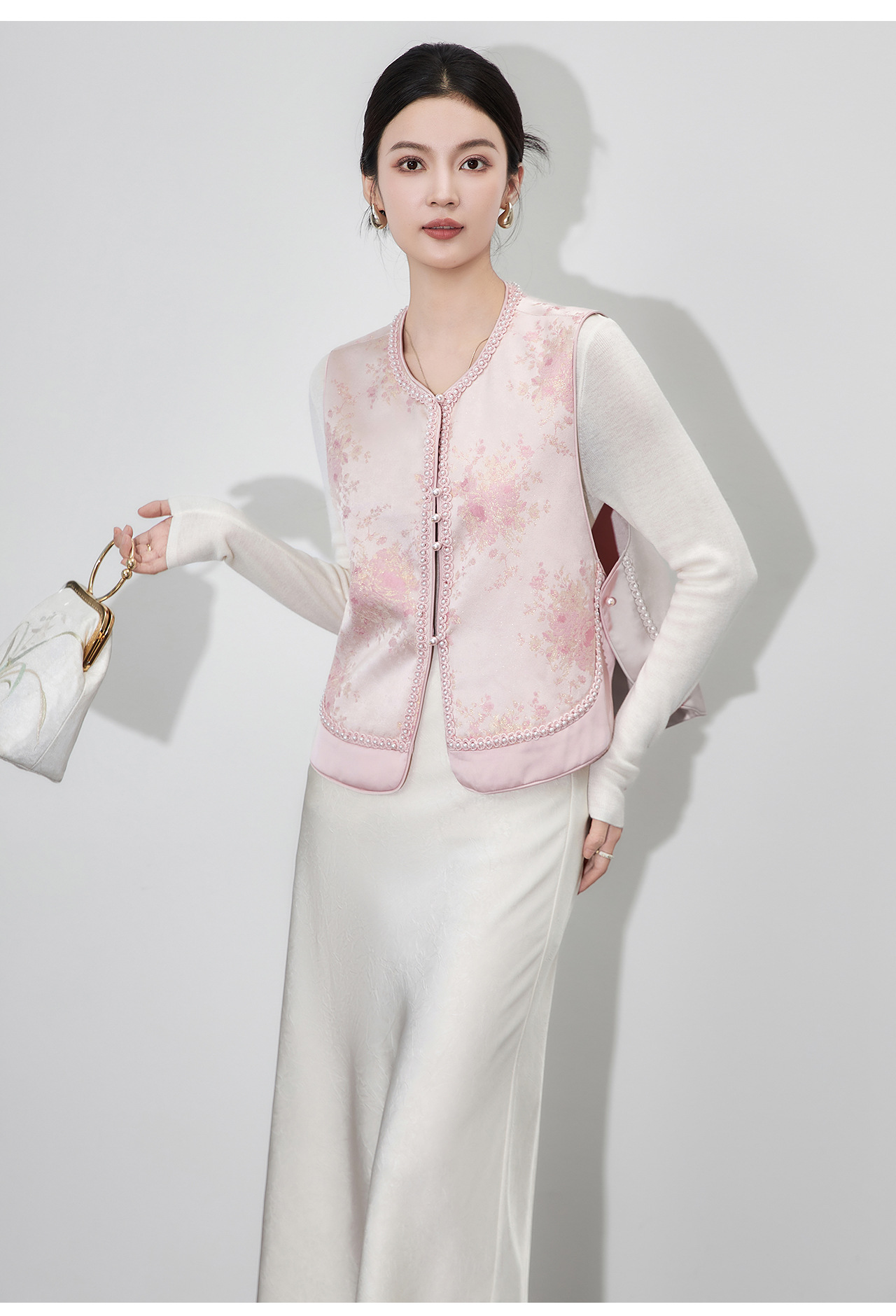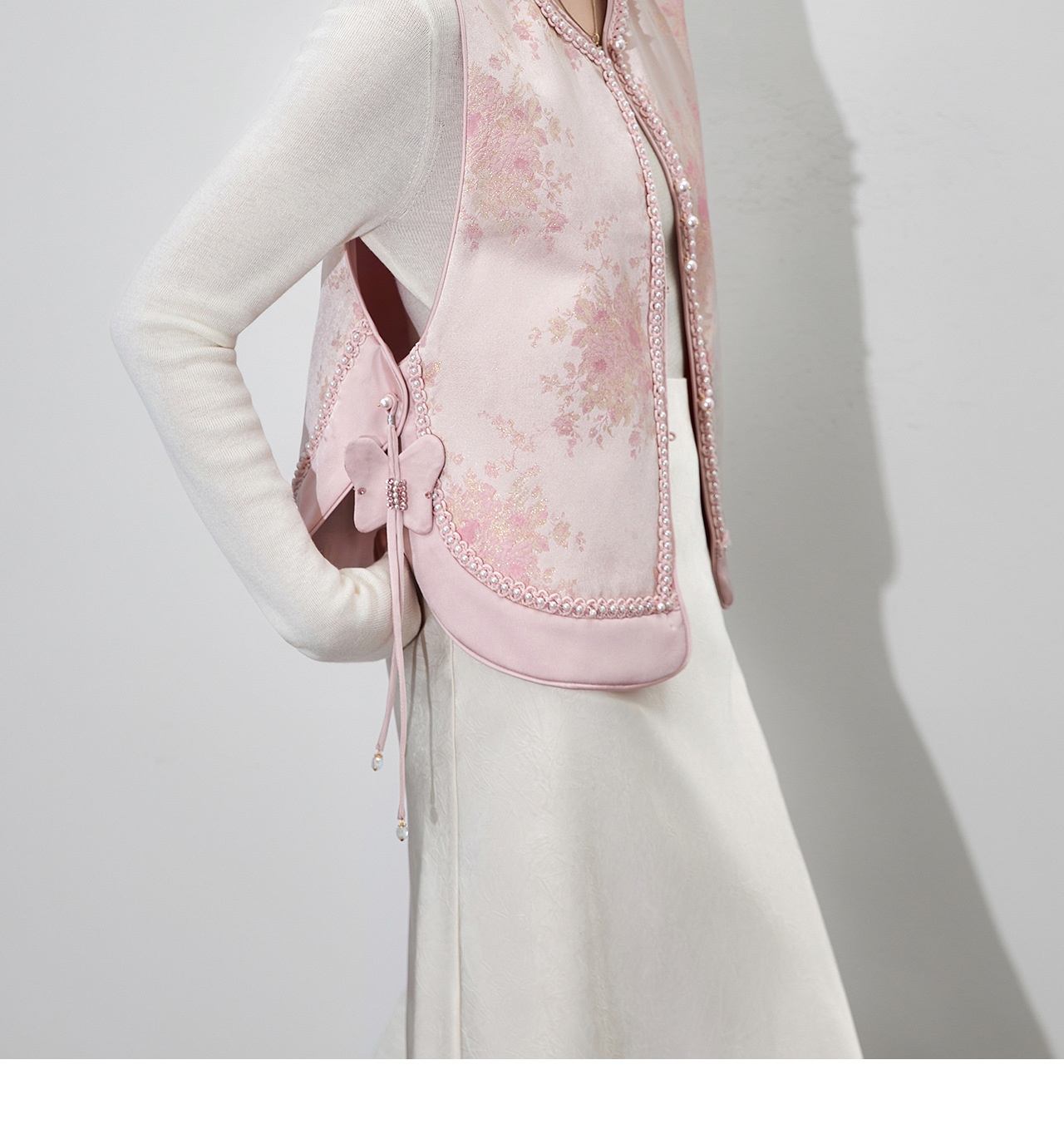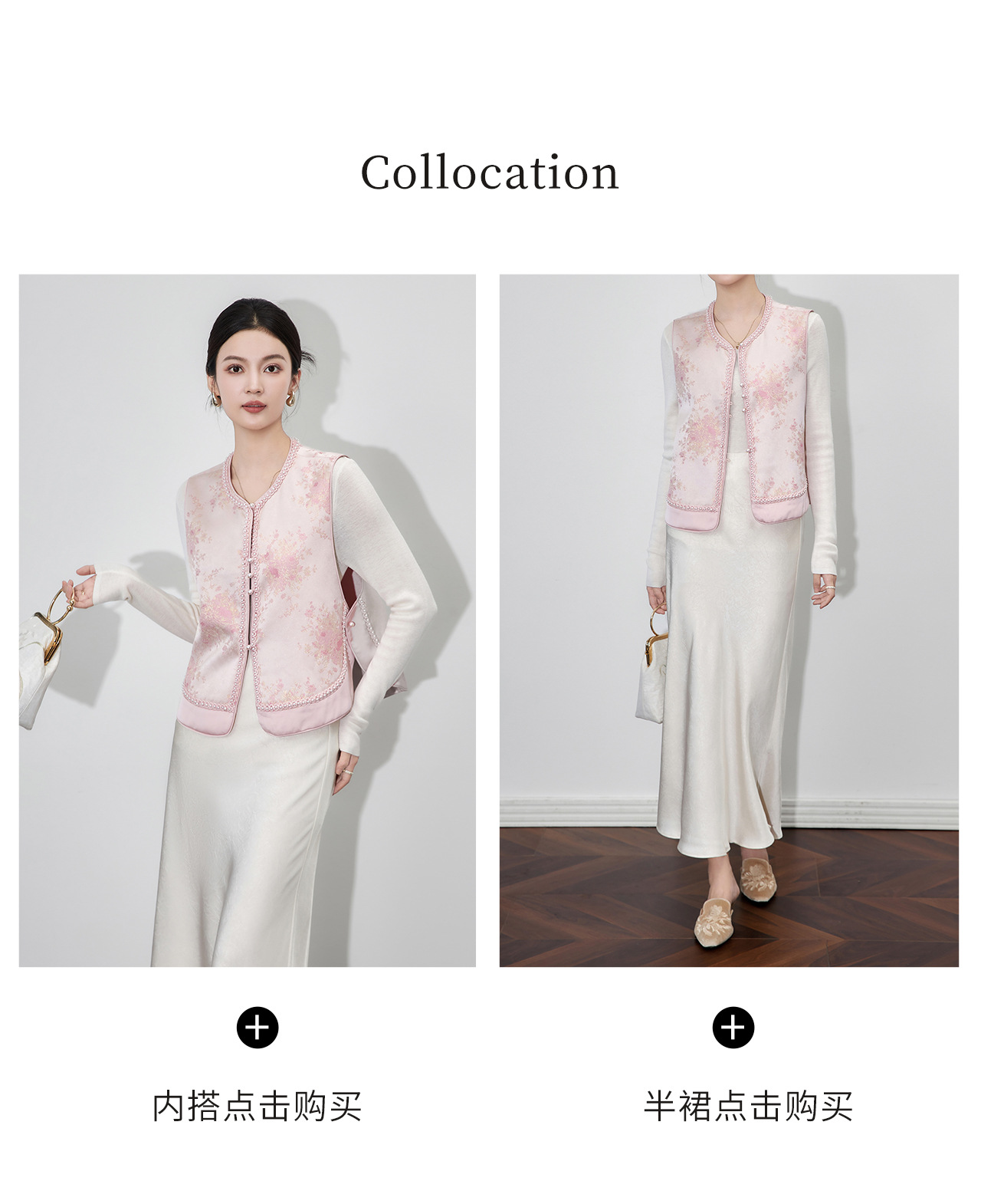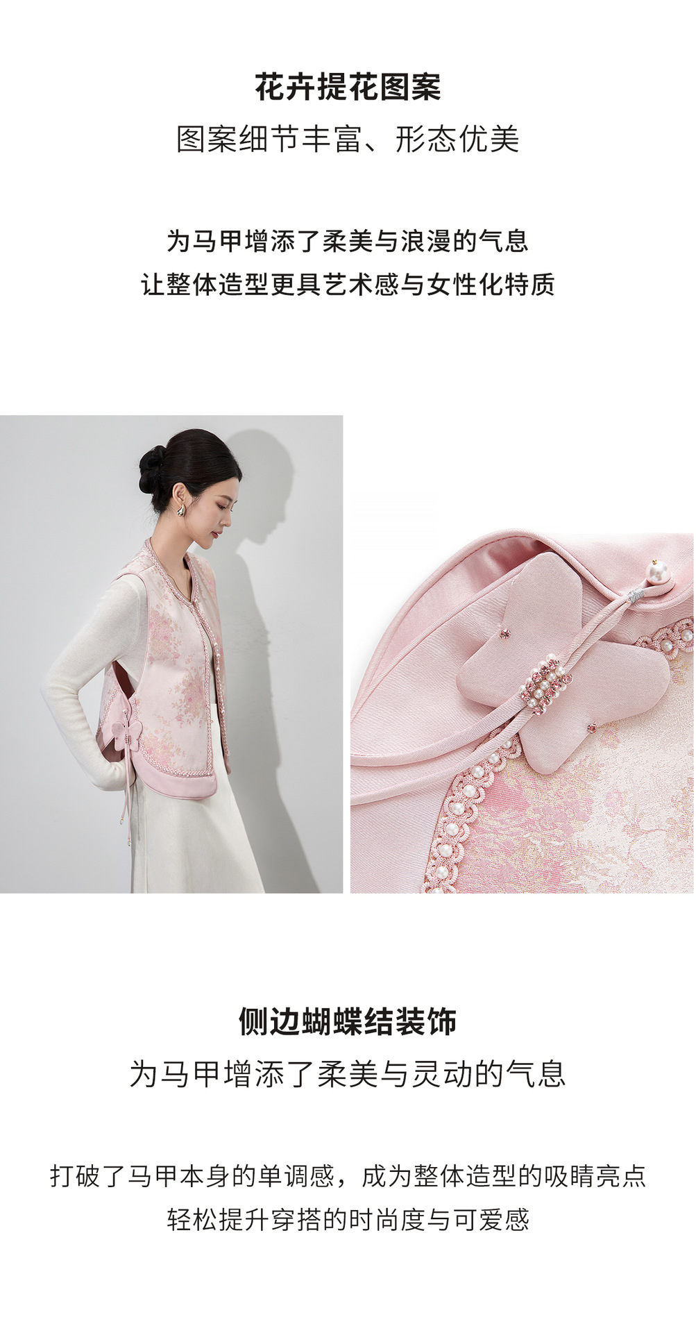 「高货wl」全新升级【铂金会员339/天猫459/差价120】(95736)洛诗琳金线天丝提花上衣2025秋季新中式重工钉珠马甲外套