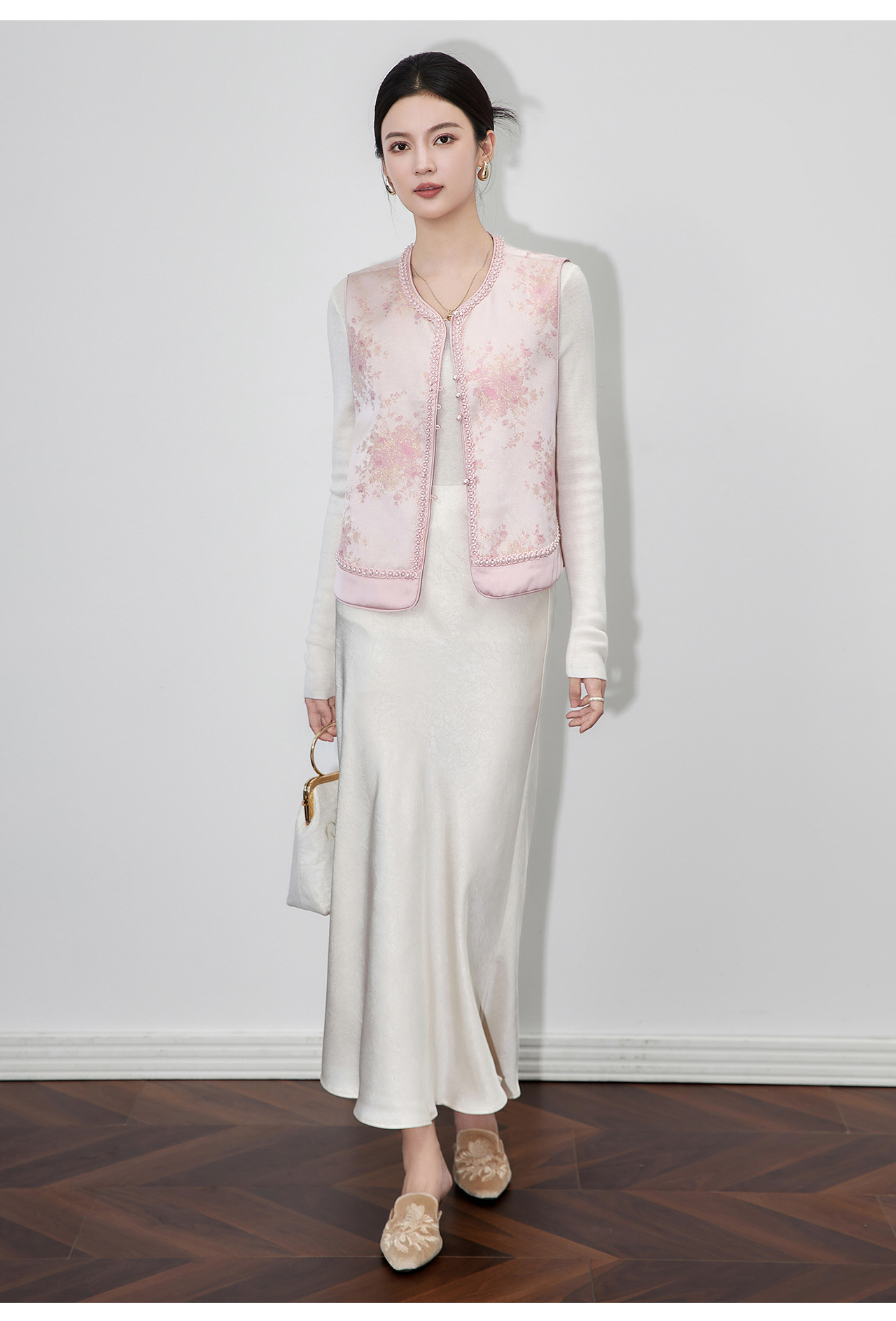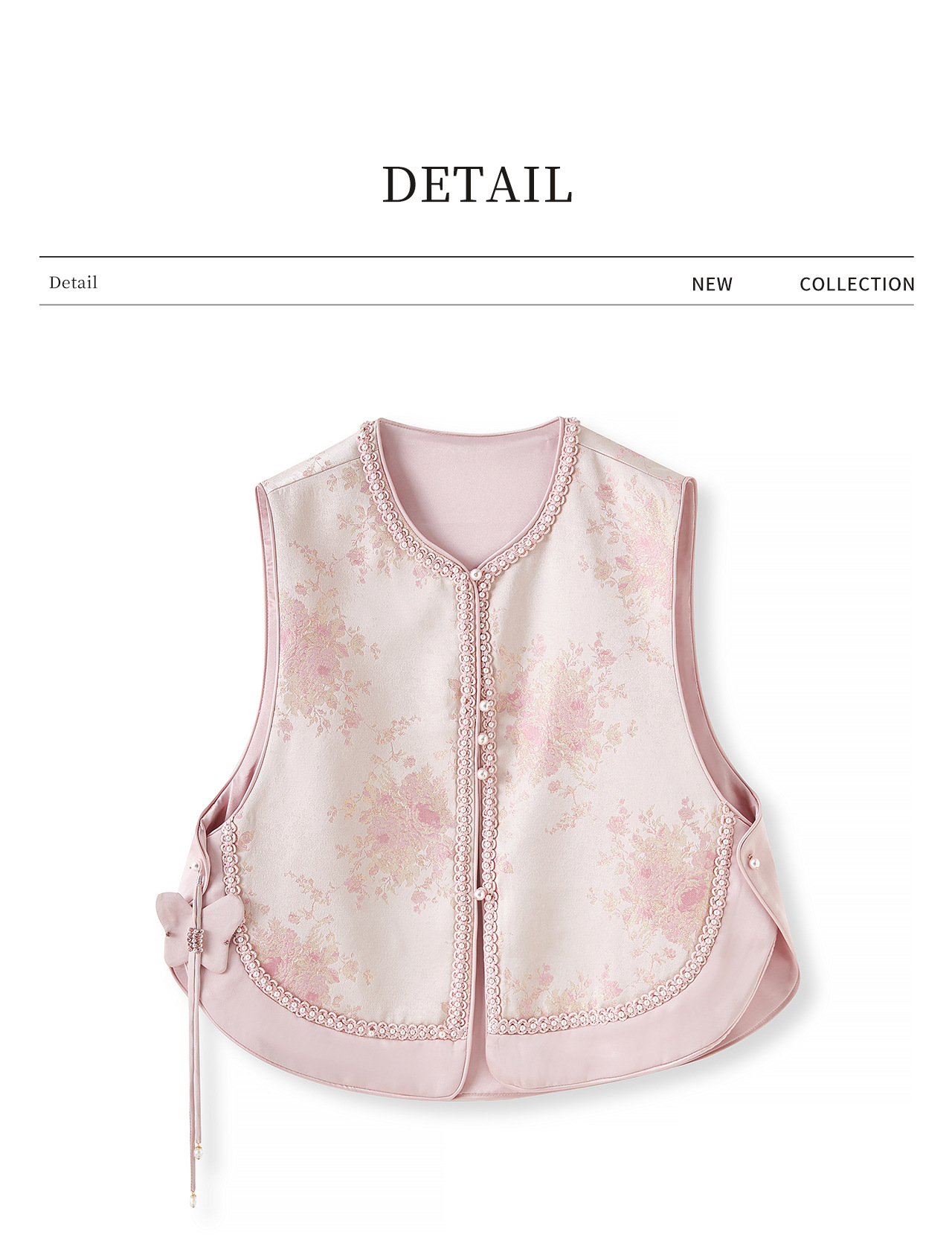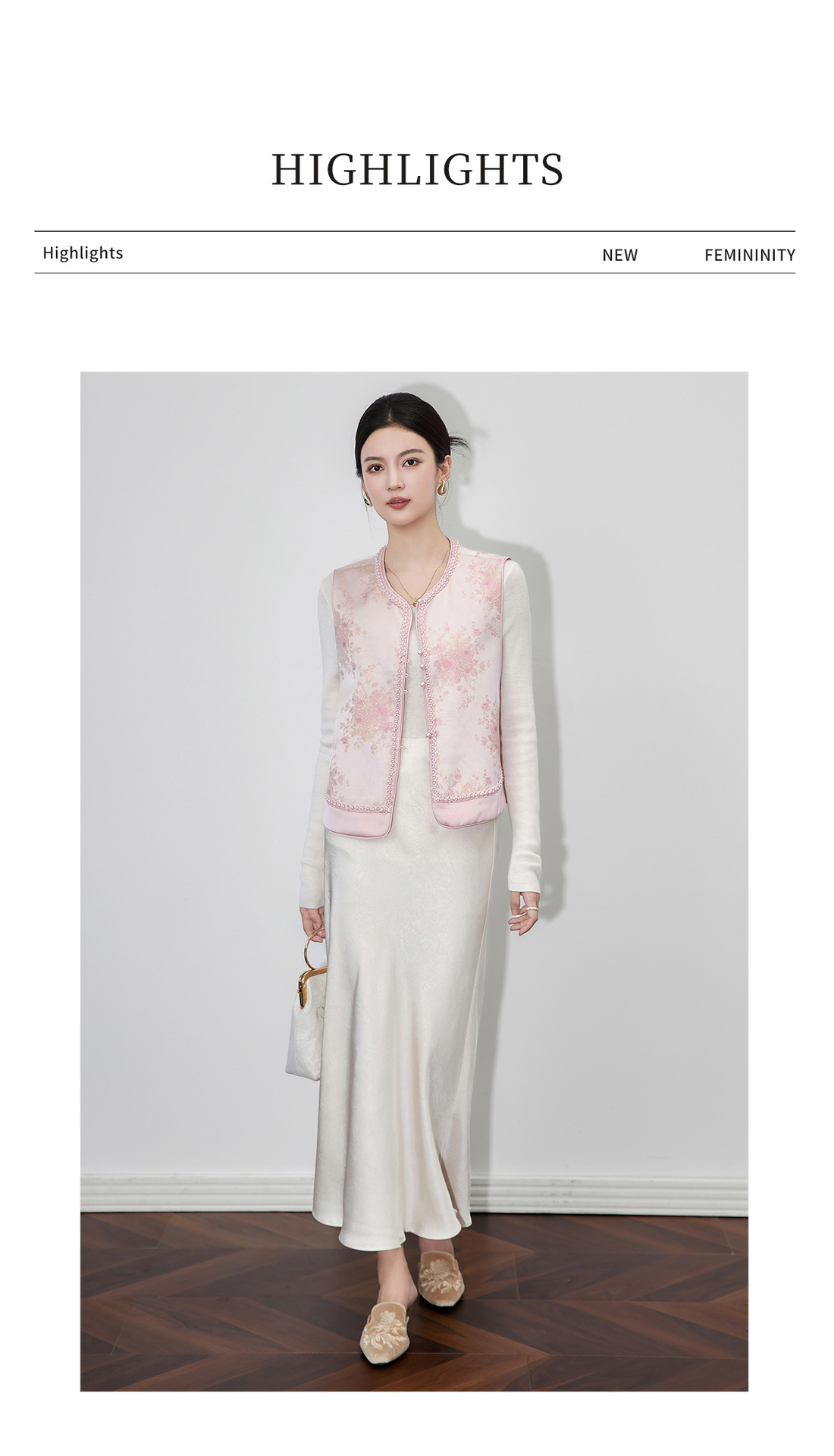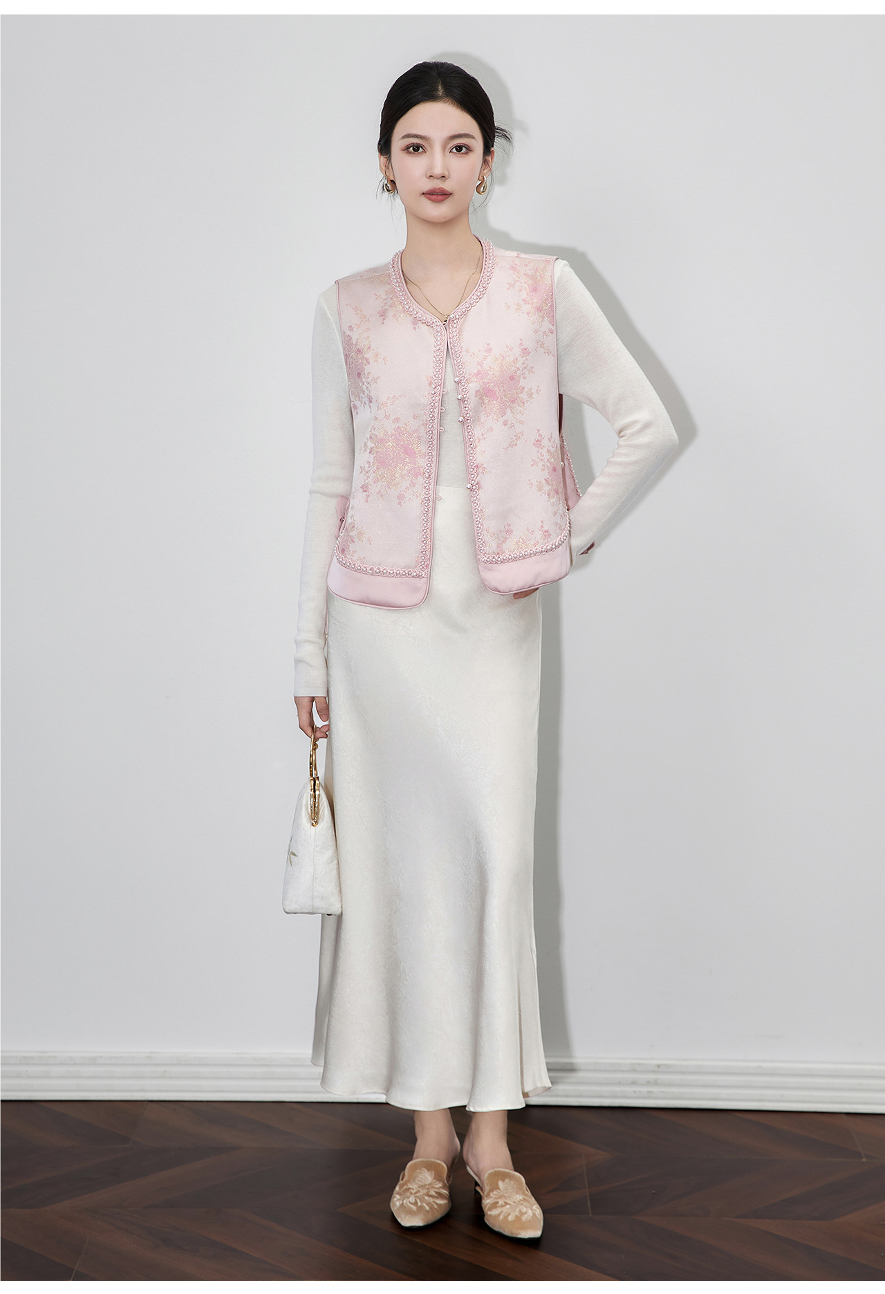「高货wl」全新升级【铂金会员339/天猫459/差价120】(95736)洛诗琳金线天丝提花上衣2025秋季新中式重工钉珠马甲外套