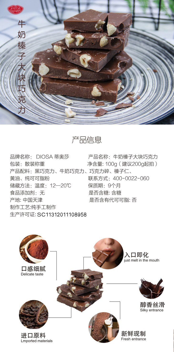 DIOSA 【促销款】_ 牛奶榛子大板36 %牛奶巧克力 榛子仁