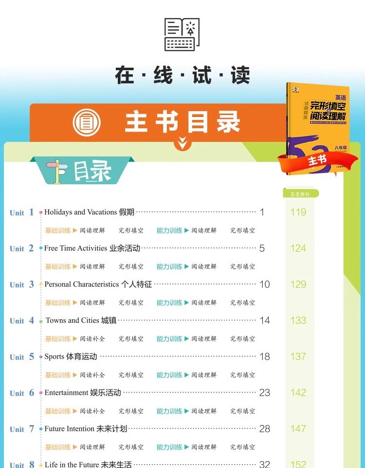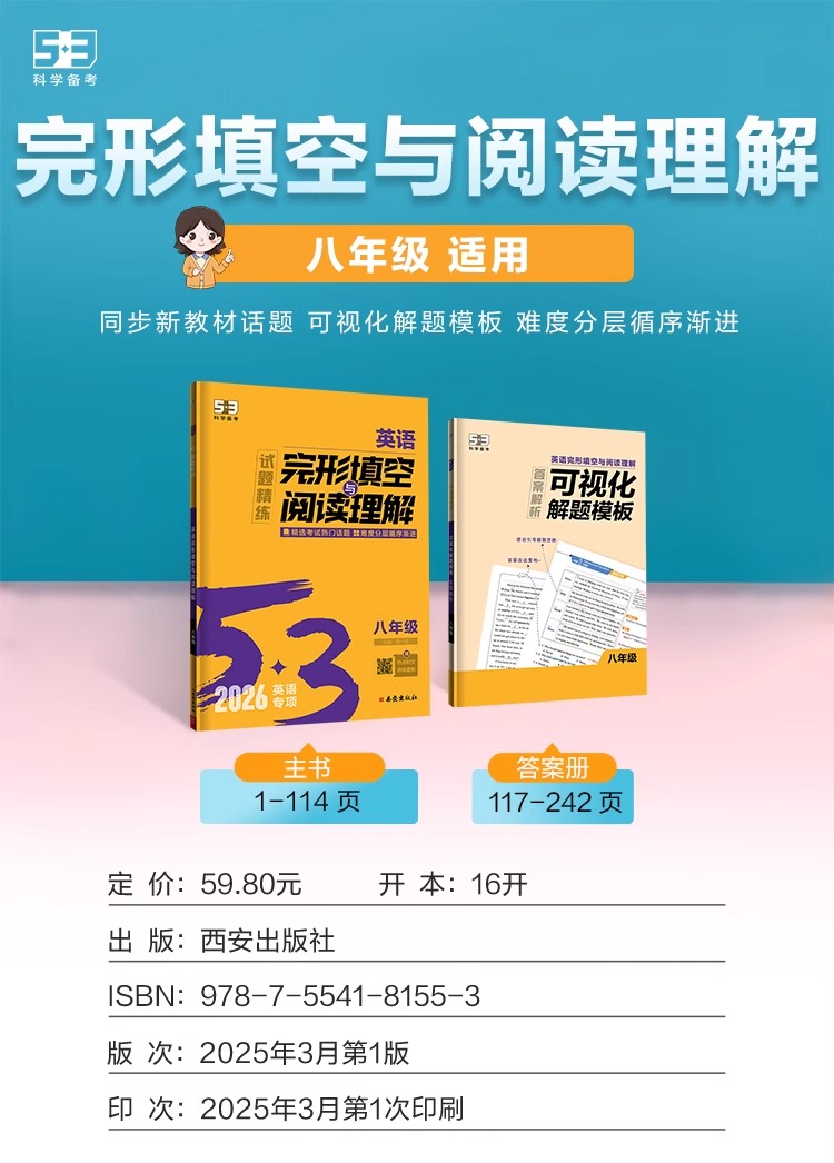 2026 53英语完形填空与阅读理解专项训练七八九年级听力突破语法全解中考英语必备词汇