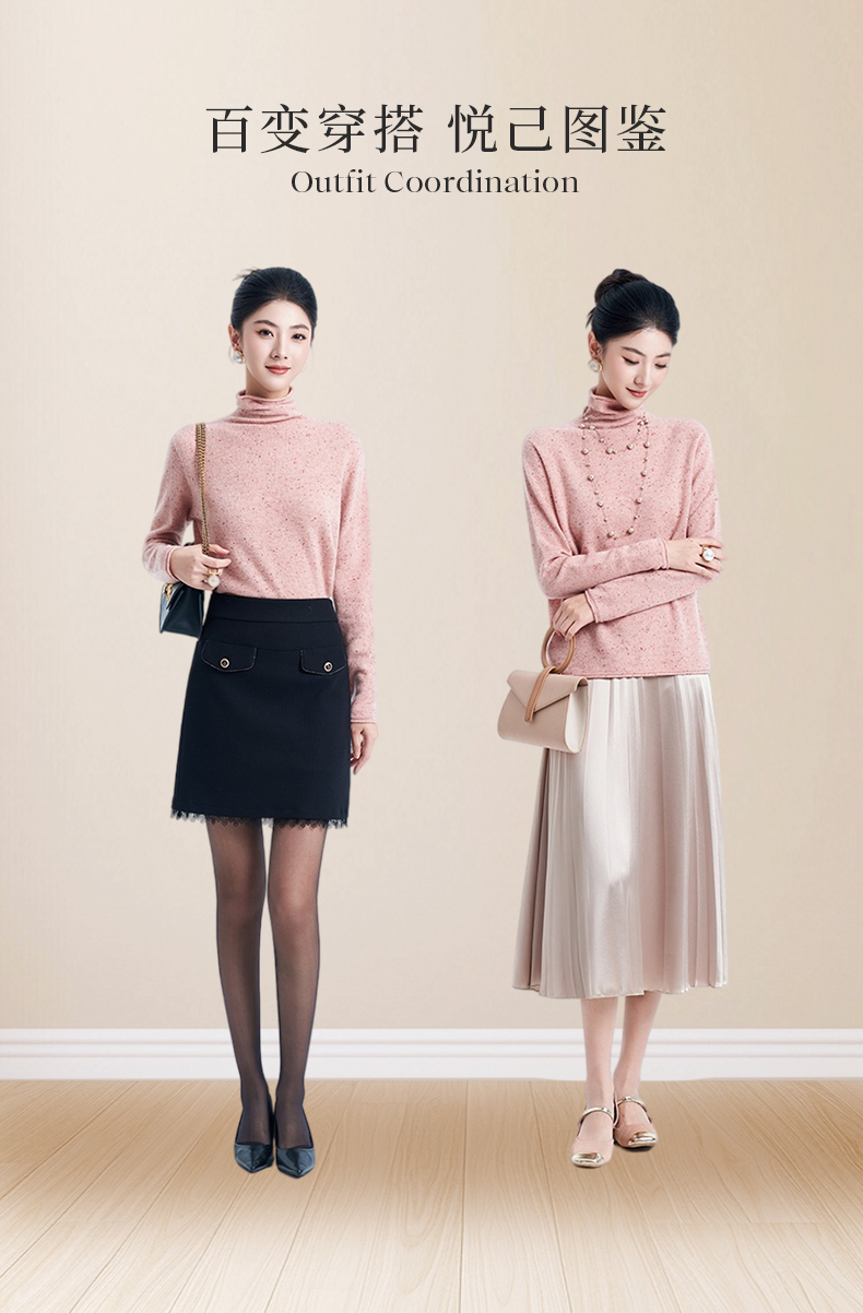 【100%山羊绒】乔万尼2025冬新品慵懒风点点小高领保暖羊绒衫ED4M823
