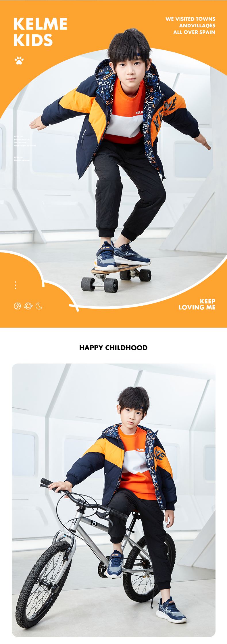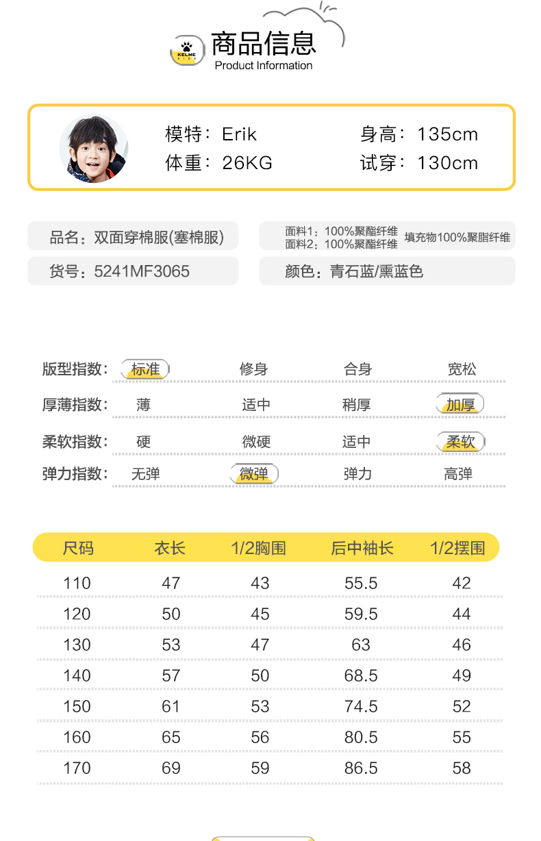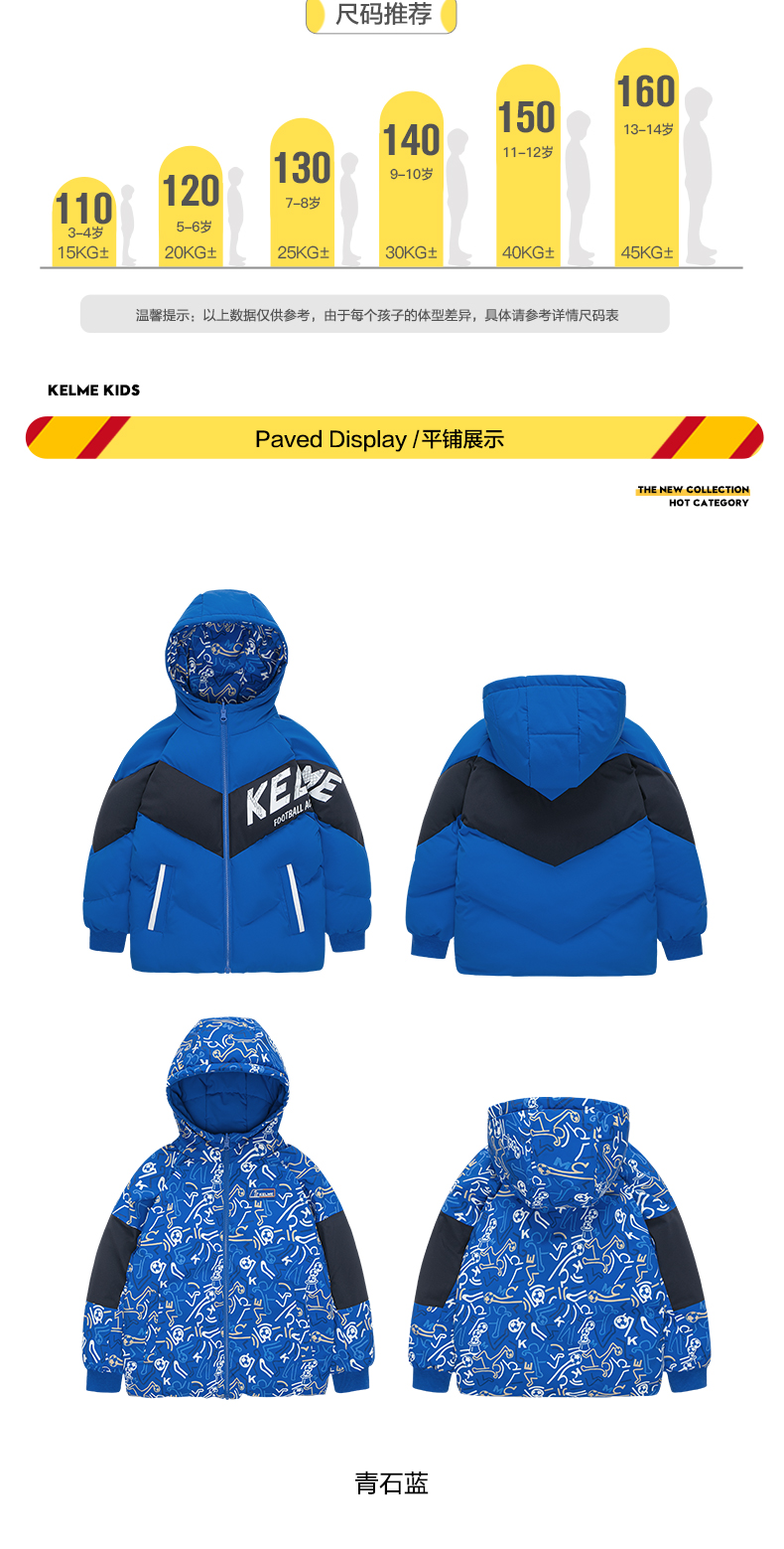 kelme kids卡尔美童装儿童棉衣棉服双面穿大童男女童加厚保暖外套