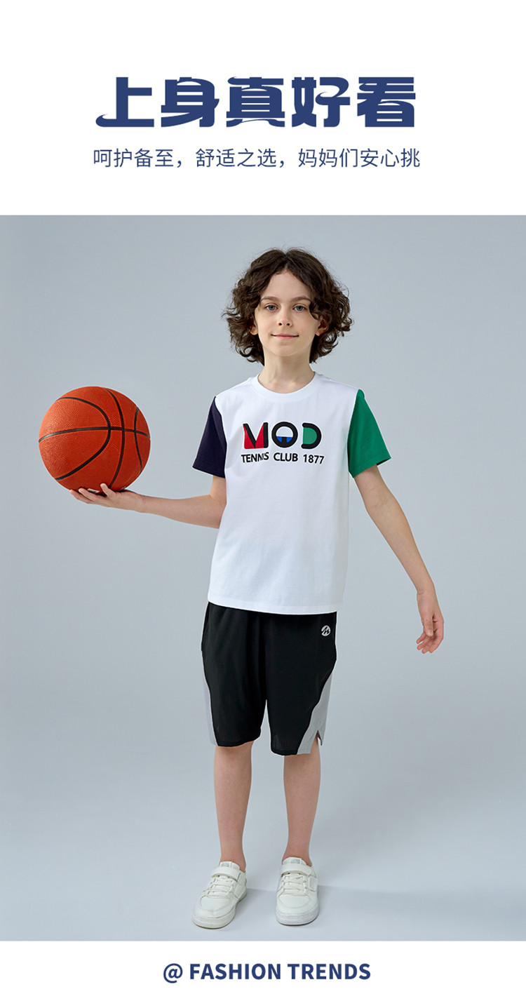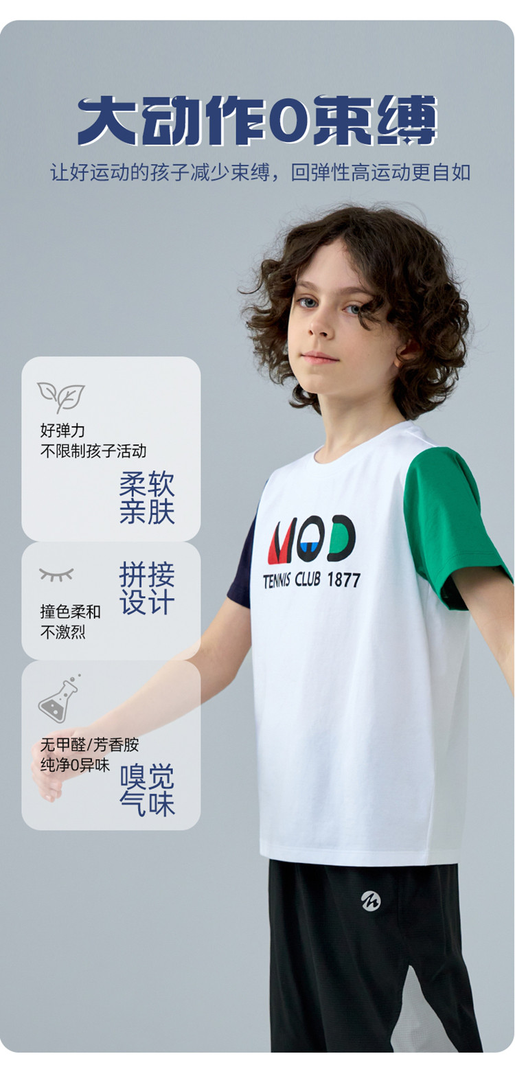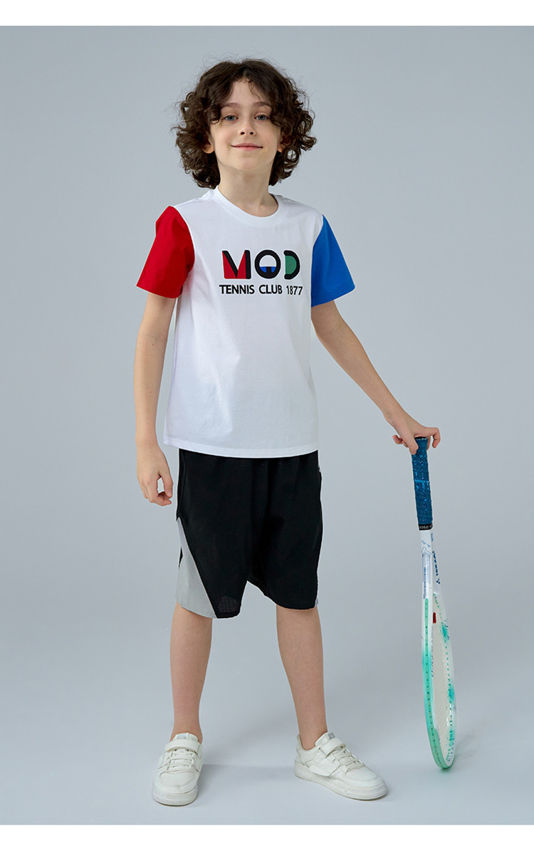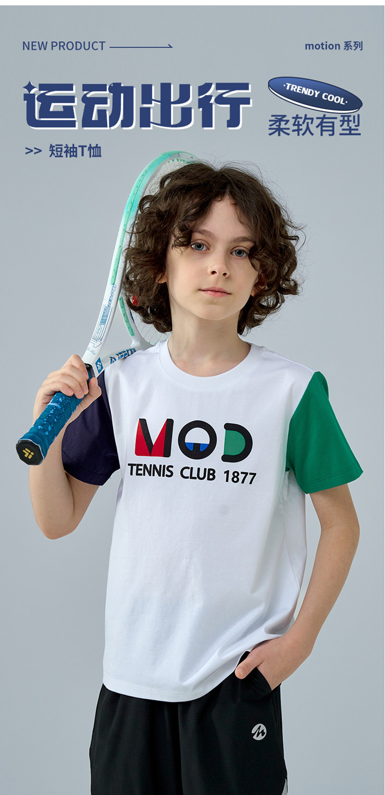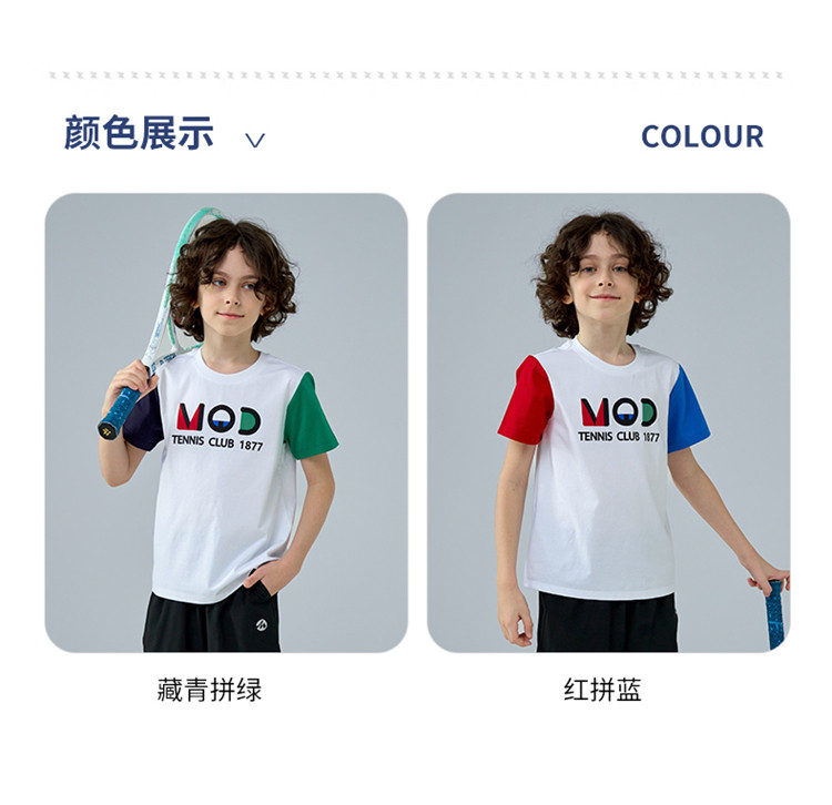 【MQD】童装男大童运动T恤夏季新款儿童柔软亲肤透气拼色网球短袖