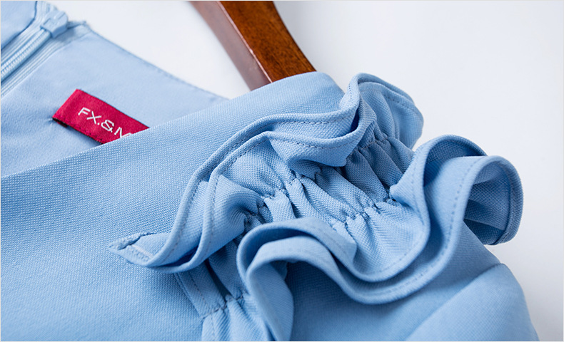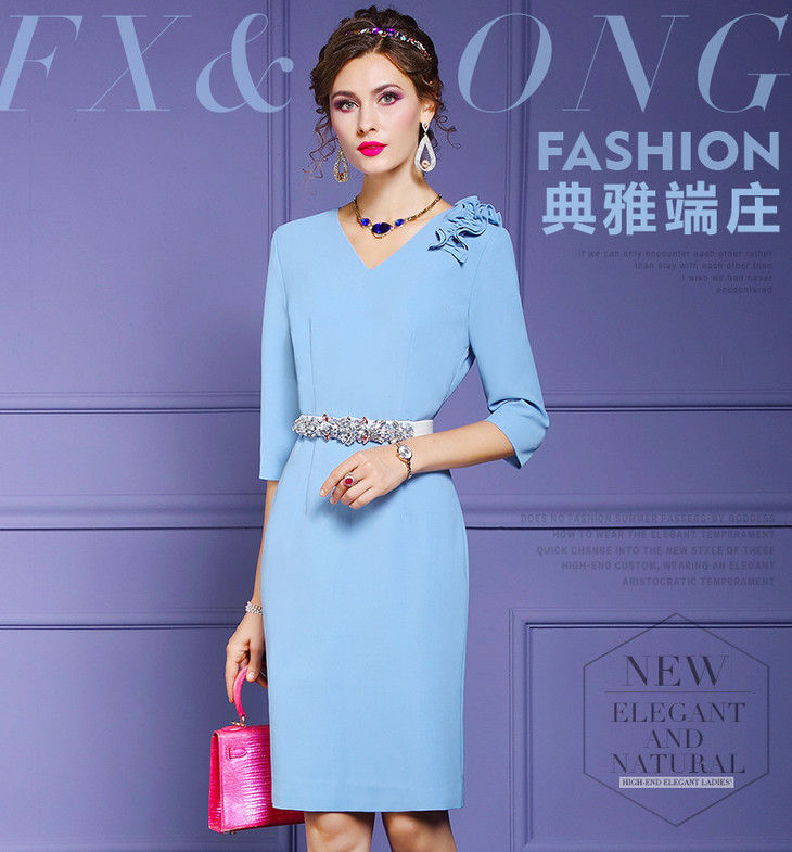FMY-F20QL33184纯色连衣裙女七分袖V领气质优雅端庄修身职业裙