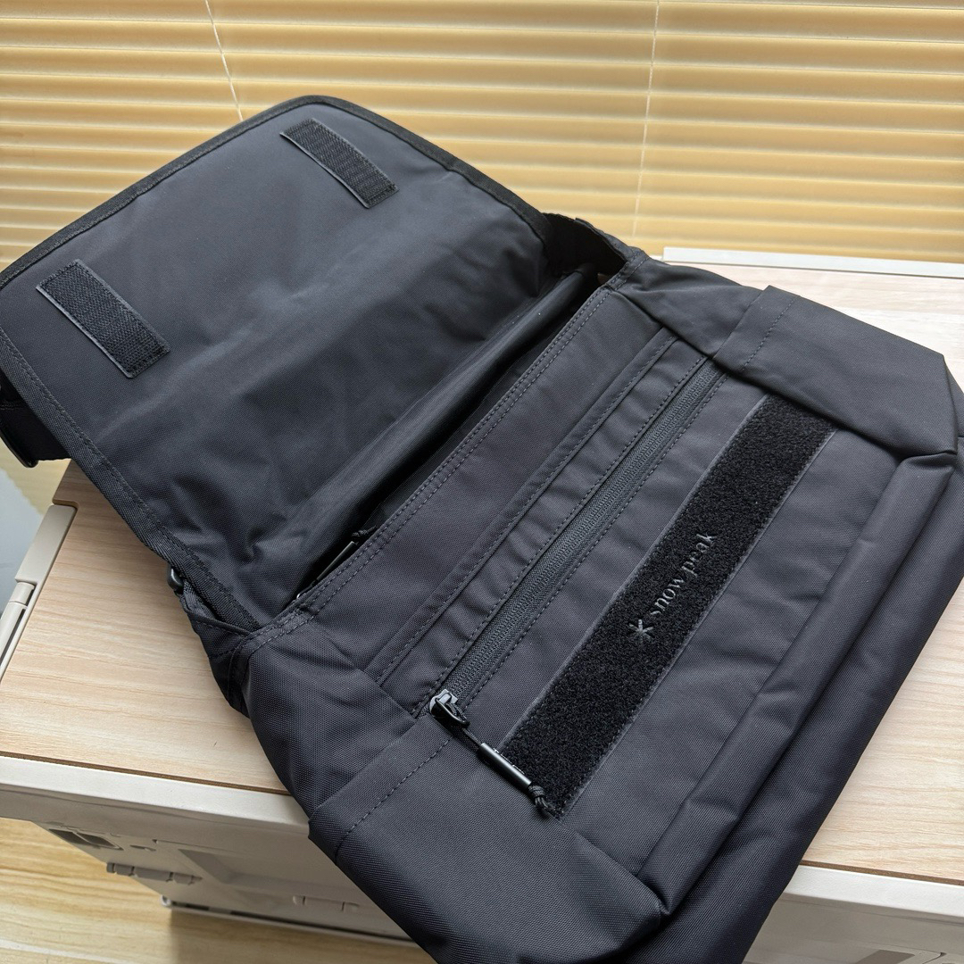 2025年新品韩国原单snowpeak雪峰单肩斜挎邮差包 大小正合适的一款 春秋出游必备单品 采用优质再生尼龙防水材质 重量轻便 可放的下日常生活用品 正面带有品牌标识 翻盖一整条魔术贴质量上乘 起到了防护作用 内外全部使用YKK5号拉链 带有刻花雪峰铝管拉头 肩带加固透气设计 印有反光loog 内里标牌齐全 带有大布印花的面料 两侧带有放水的侧兜做工精细 很值得入手的一款,两个颜色:黑色,深灰色,尺码:30/12.5/22.5单位cm