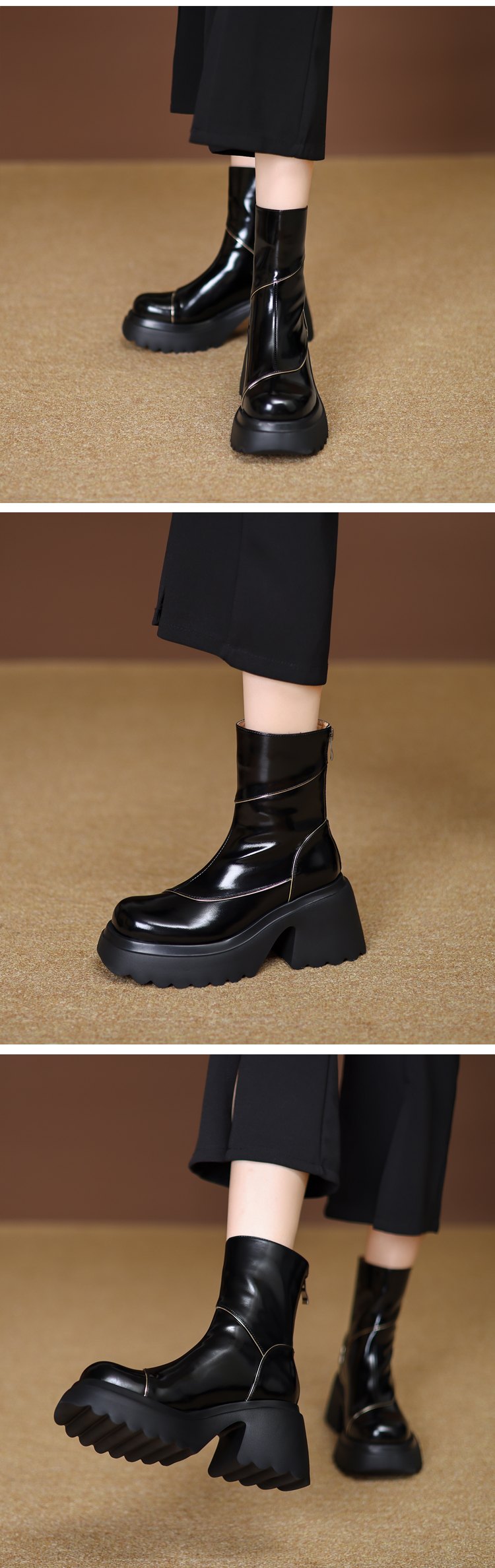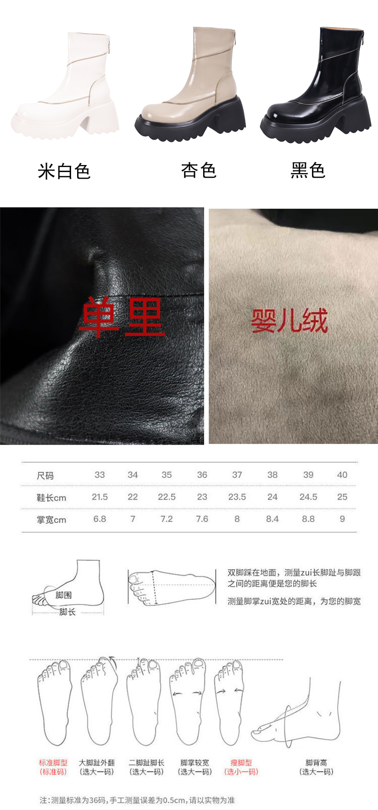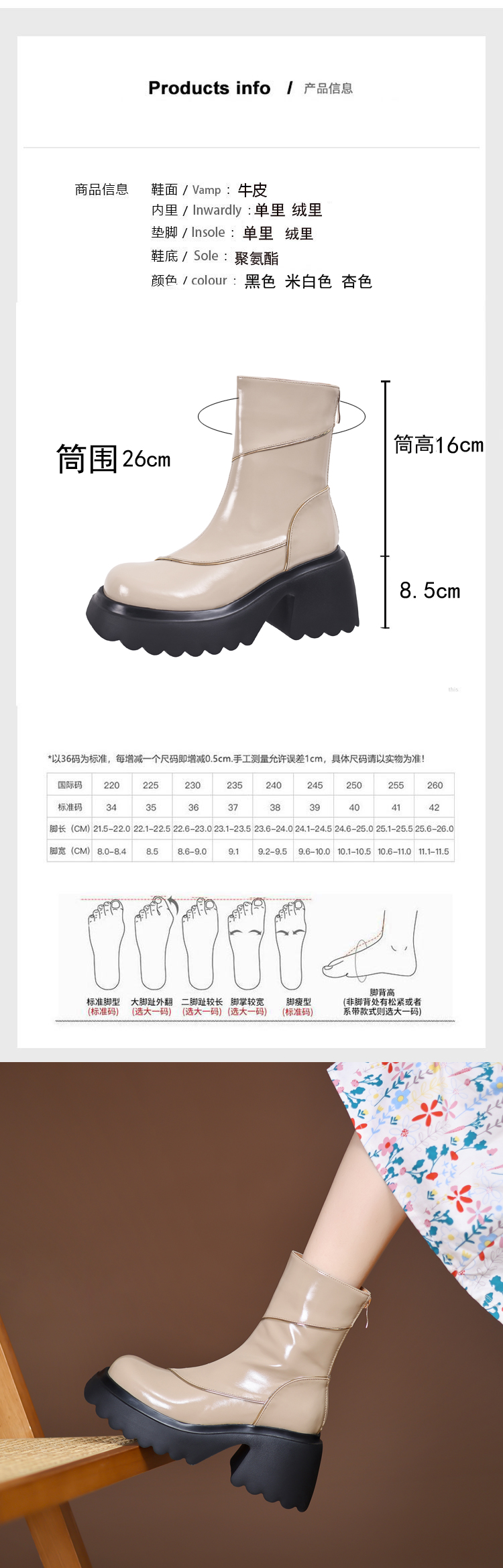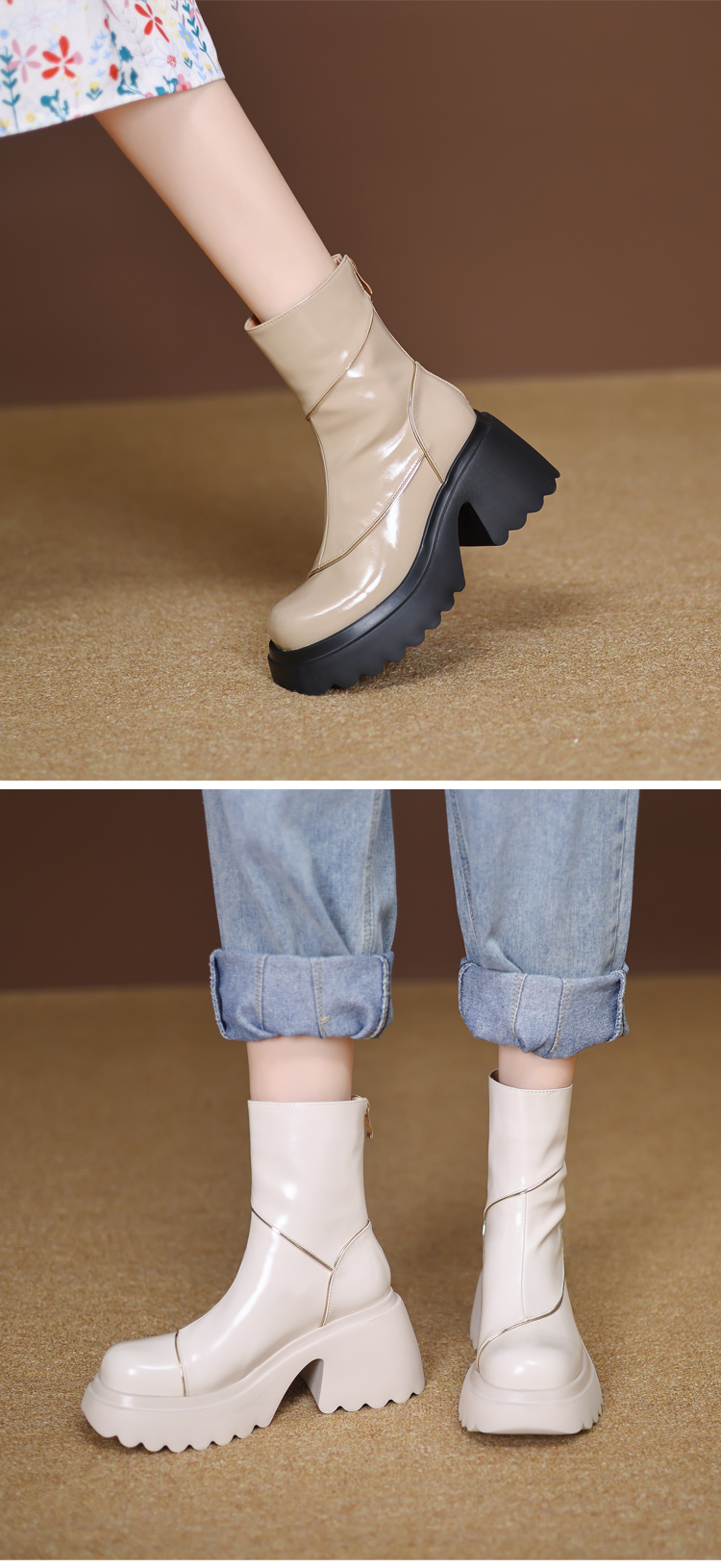 时尚简约,厚底粗跟后拉链短靴YS-ZA2638
