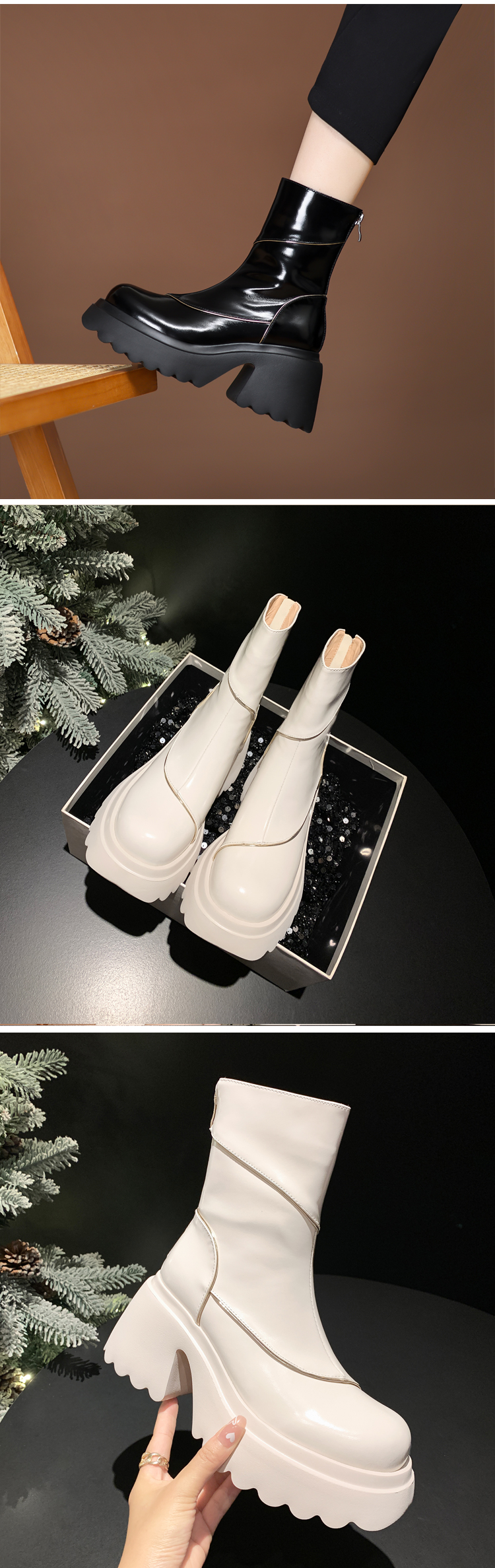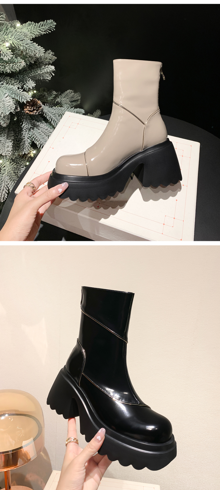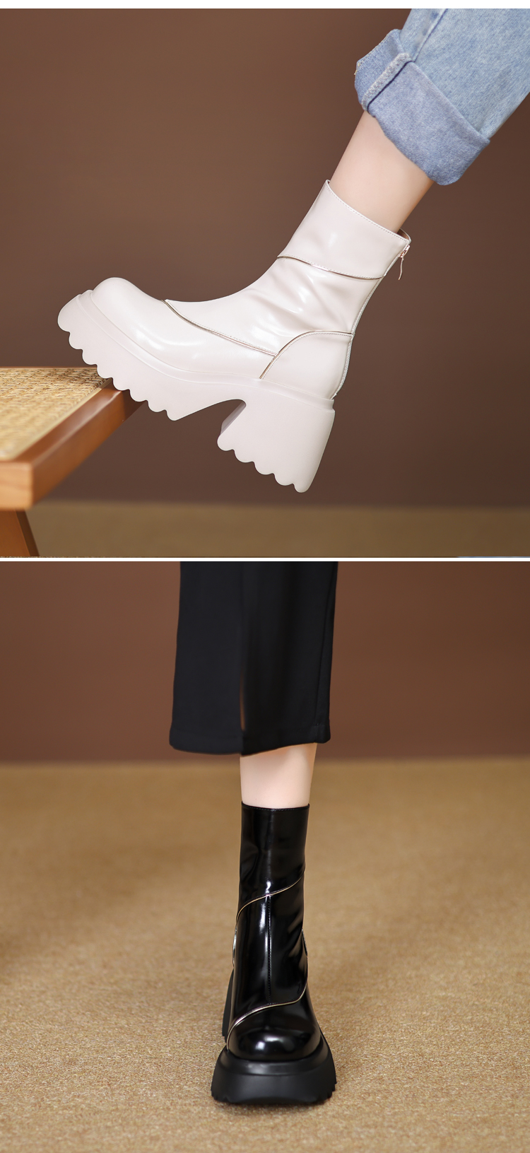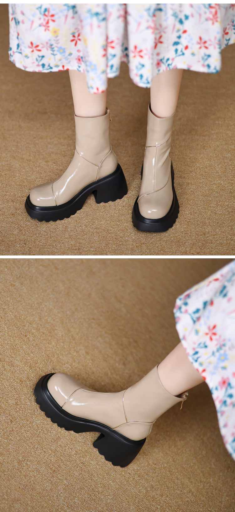 时尚简约,厚底粗跟后拉链短靴YS-ZA2638