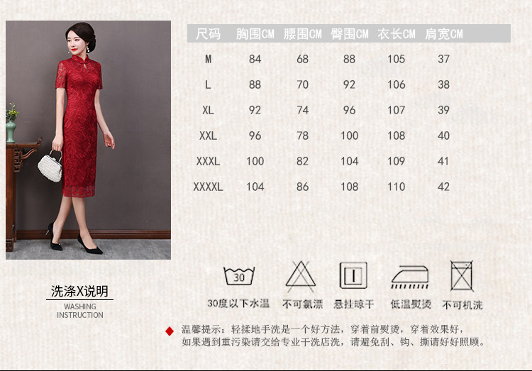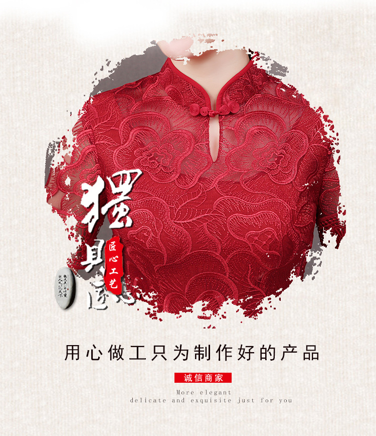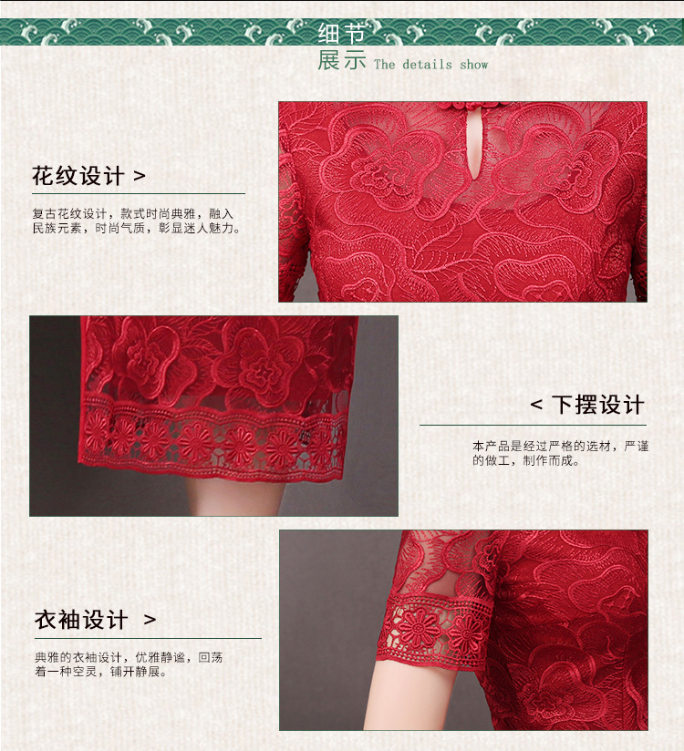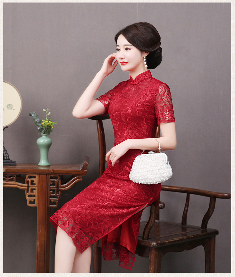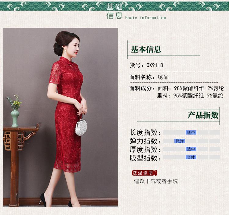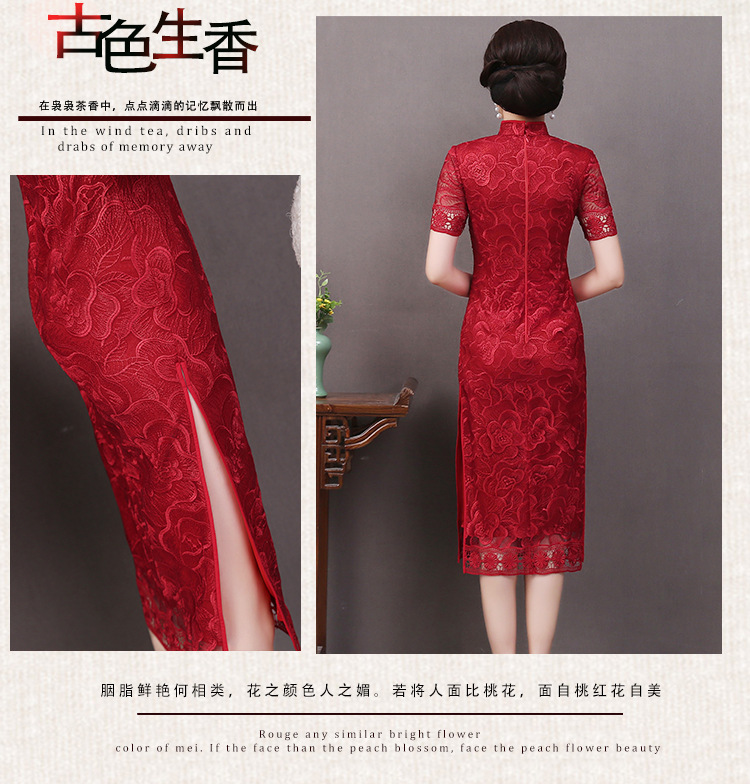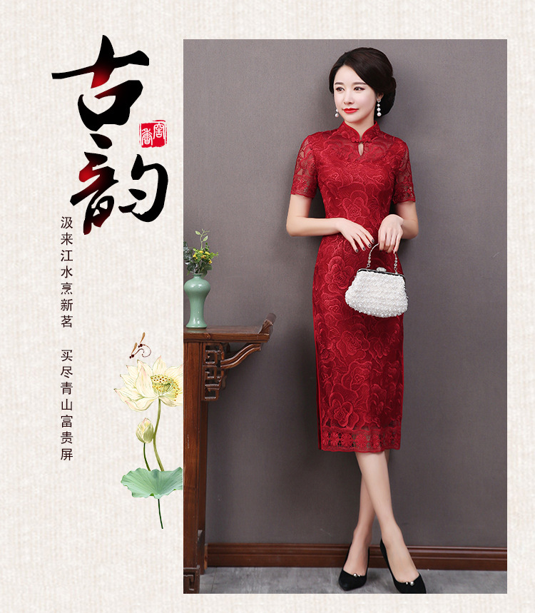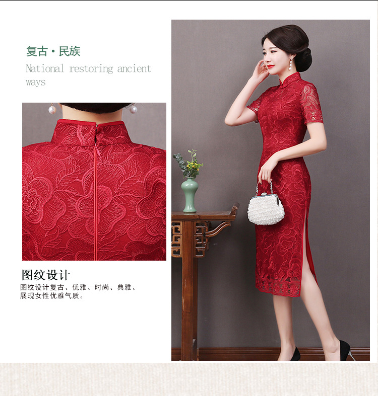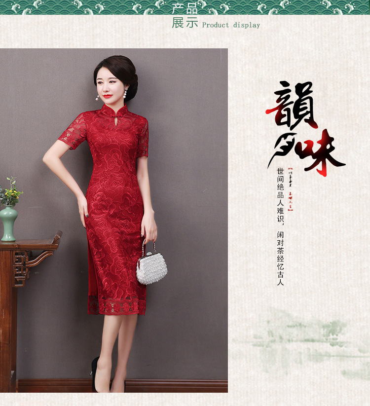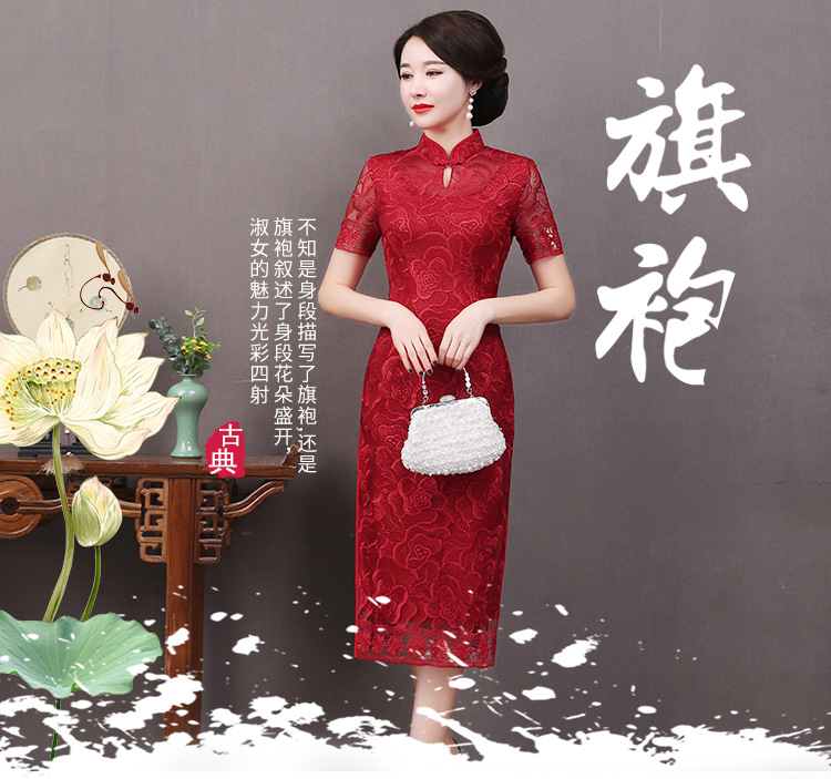 QQX-QX9118蕾丝中长款复古改良短袖旗袍