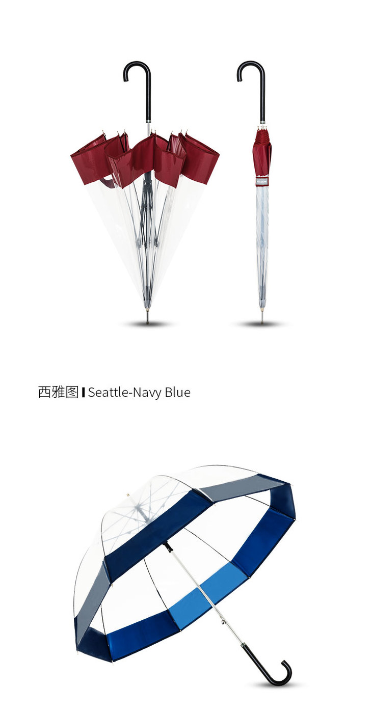 MOLSSI海军蓝直柄鸟笼伞 挂钩方便时尚简约
