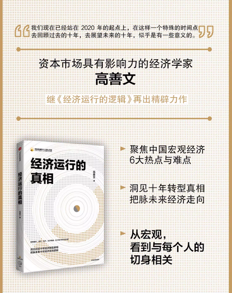 2.继《经济运行的逻辑》再次推出新作,收录2010—2020年对中国经济结构转型的深度观察,预测2020—2030年未来经济走向,涉及投资者和研究人群广泛关注的6大经济热点。