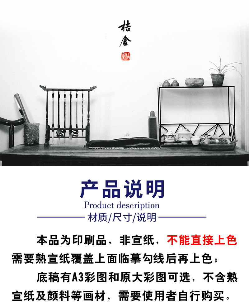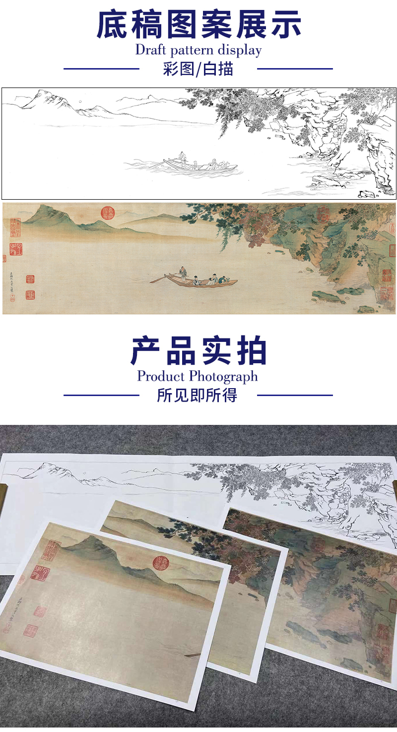 【长卷】工笔山水人物画白描底稿古画长卷仇英《赤壁图》多种白描尺寸可选G023