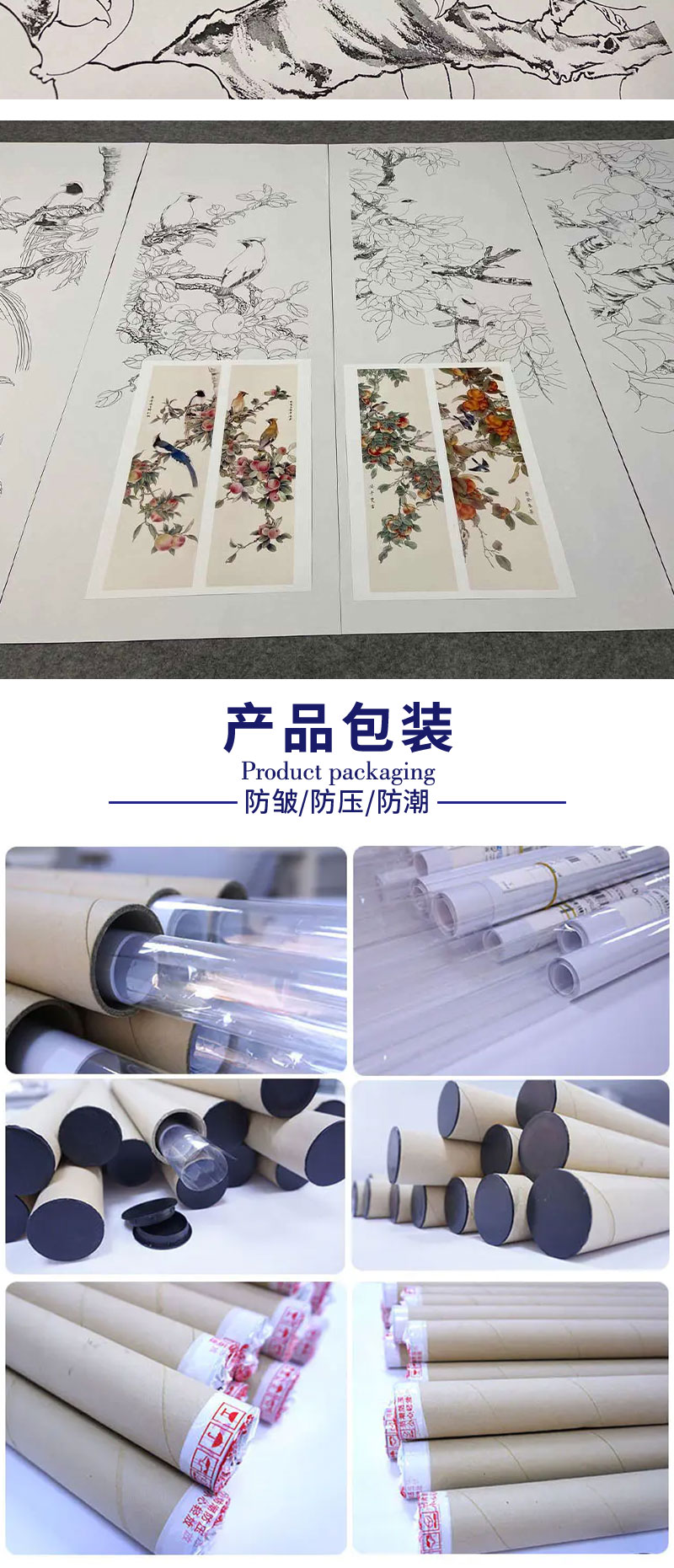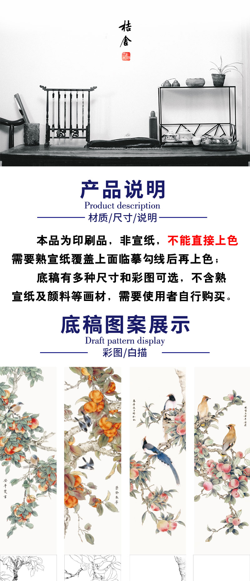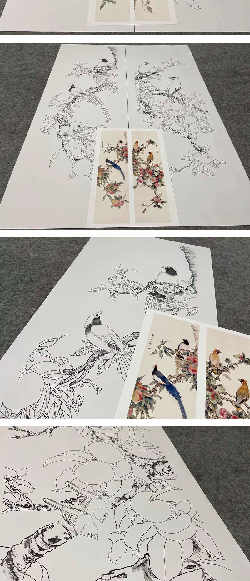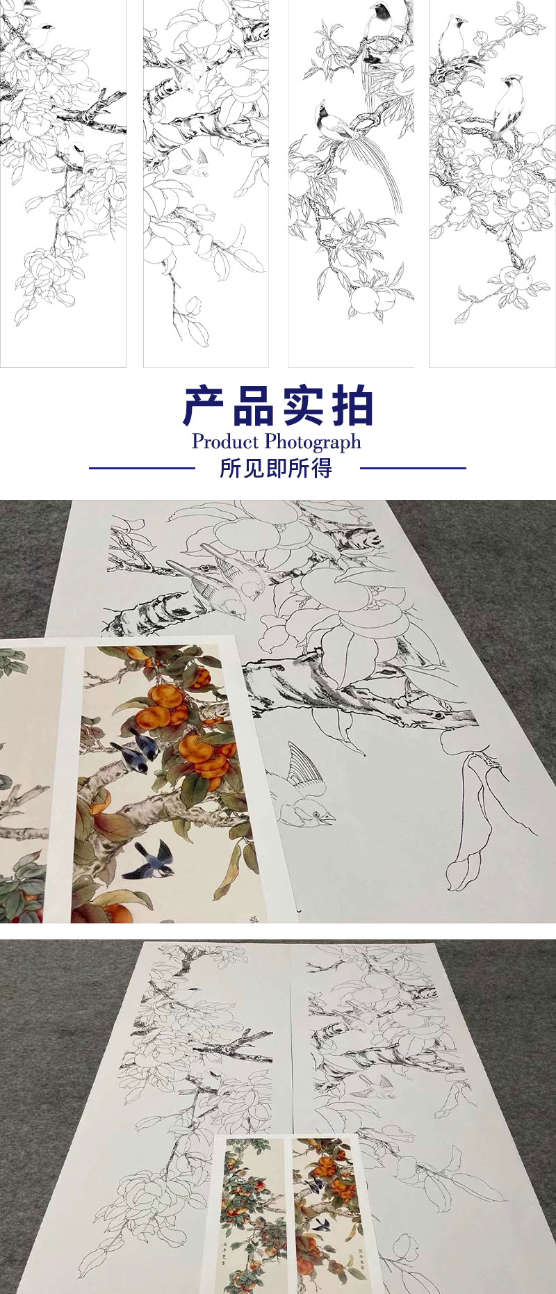 【四条屏】陈军工笔画白描底稿桃花桃枝柿子临摹勾线花鸟线稿CJ66