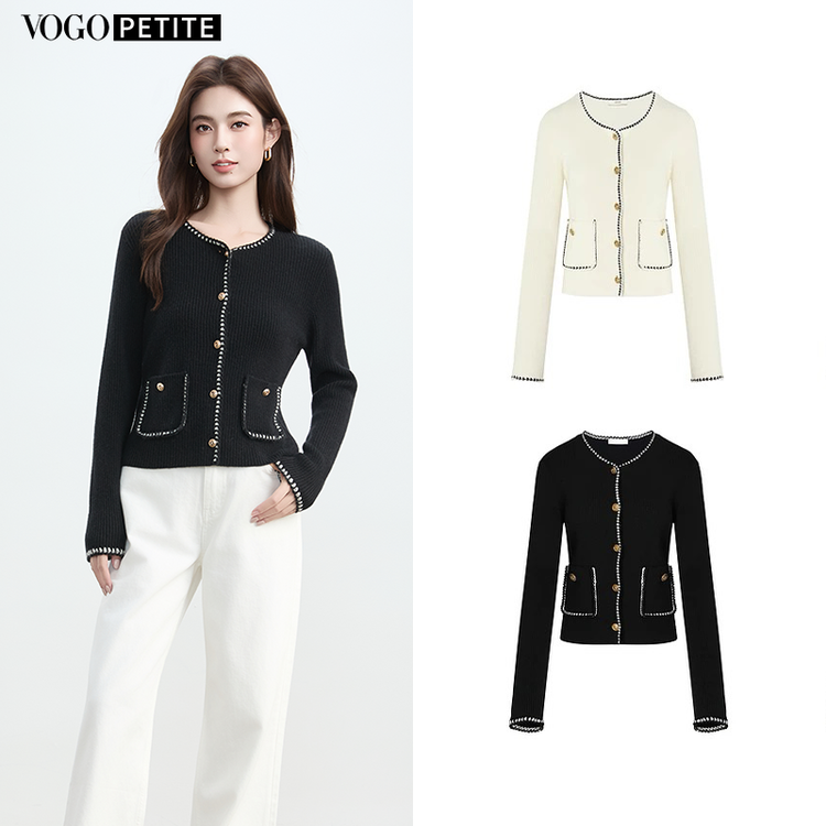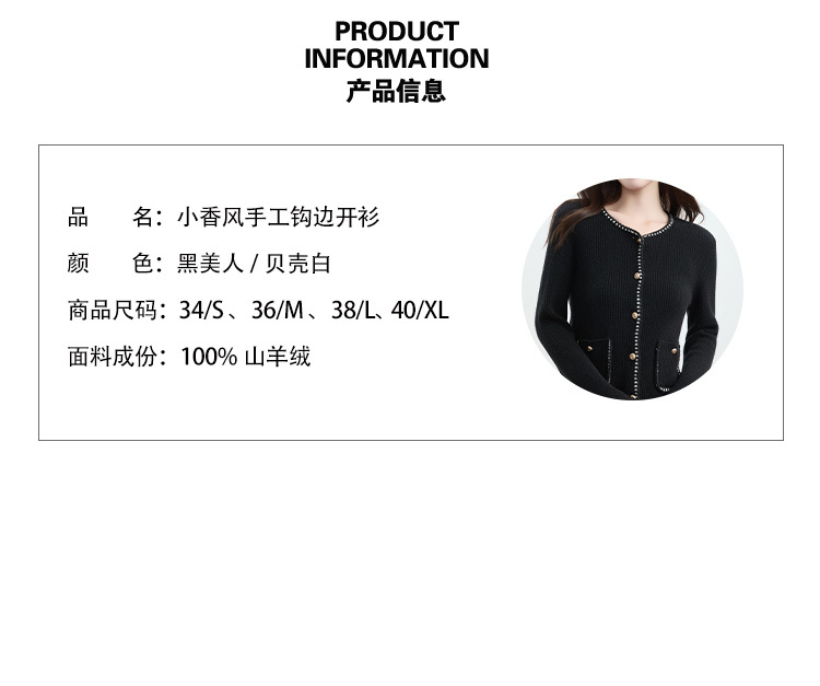 VogoPetite 小香风手工钩边开衫100%山羊绒 BP133F1509