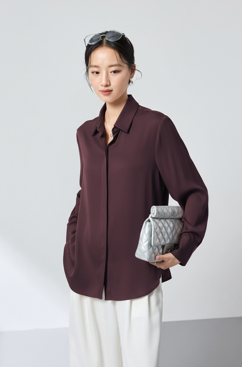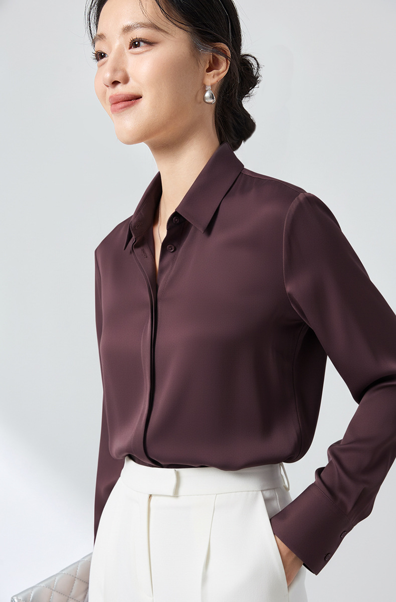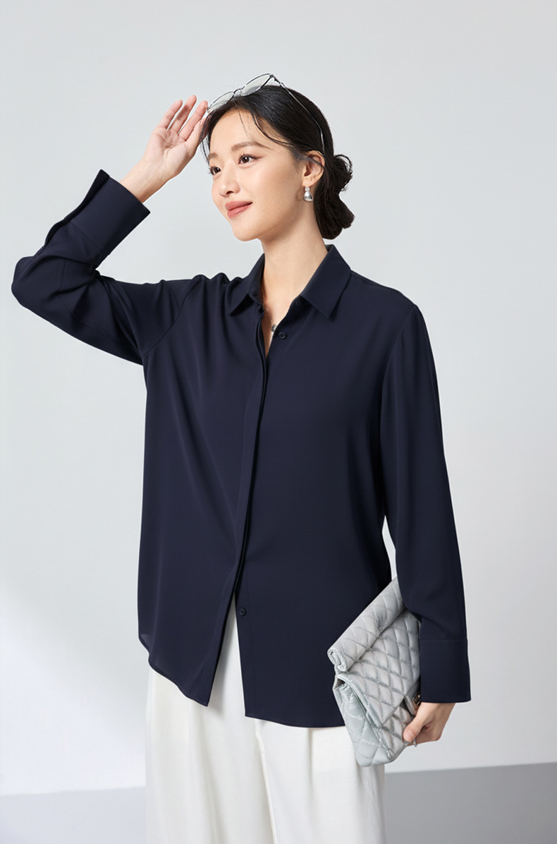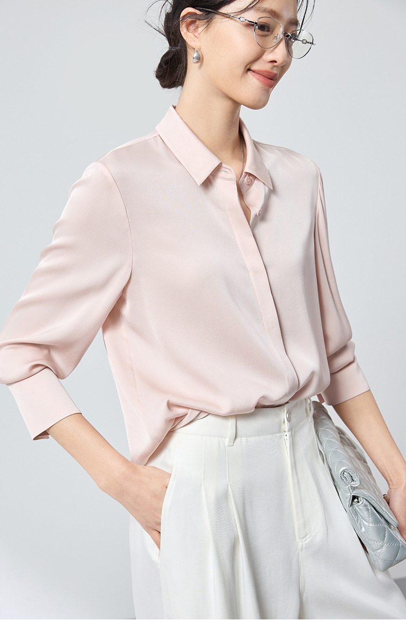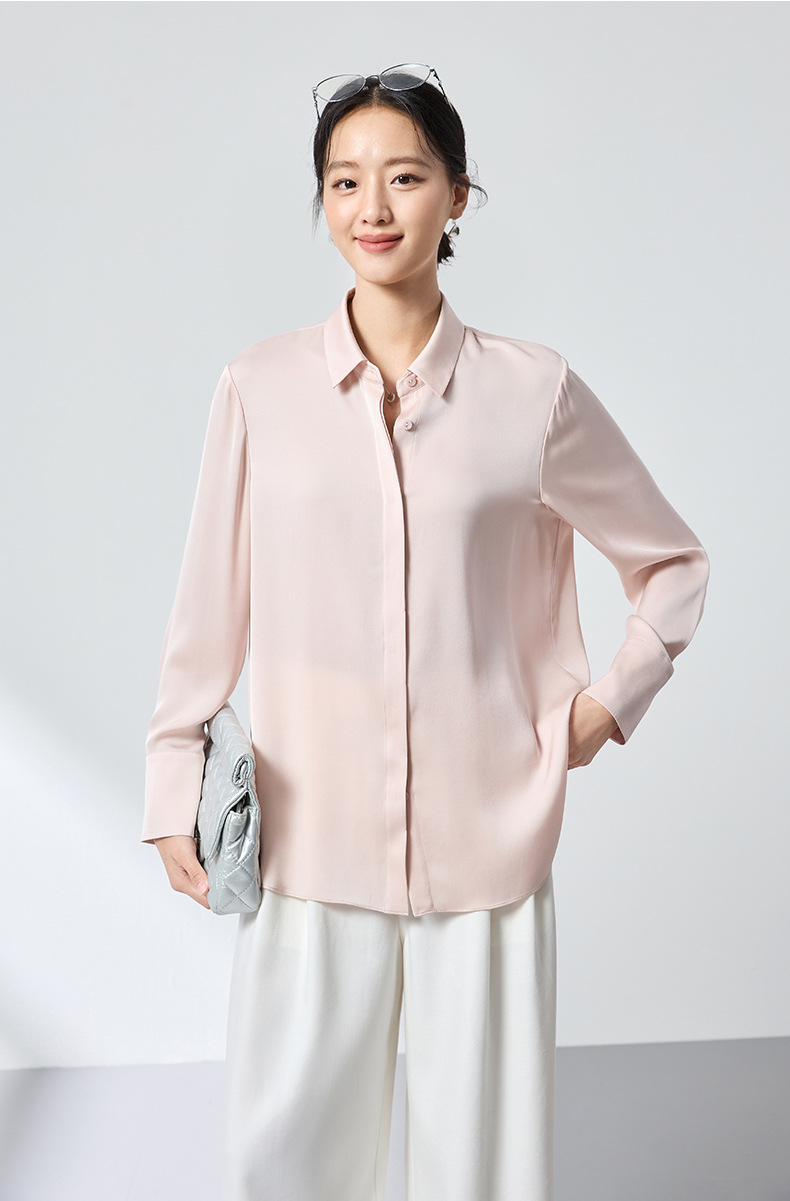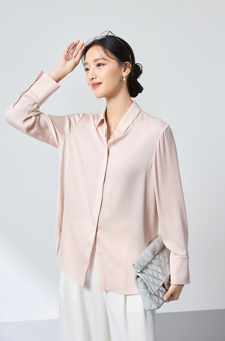 QS高档桑蚕丝衬衫26春弹力双乔通勤百搭衬衣垂坠上衣舒适2783