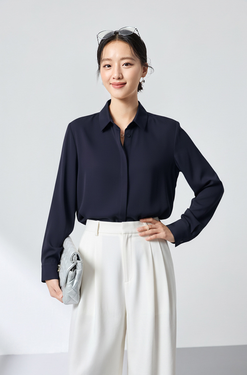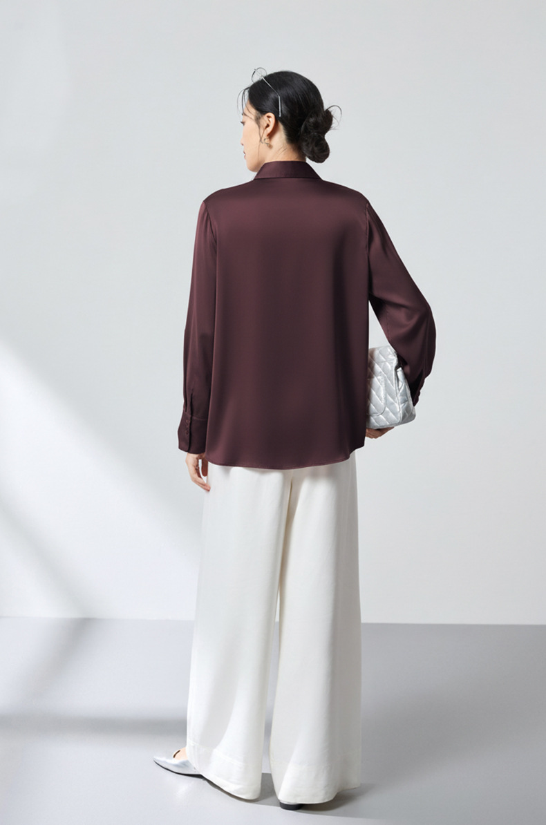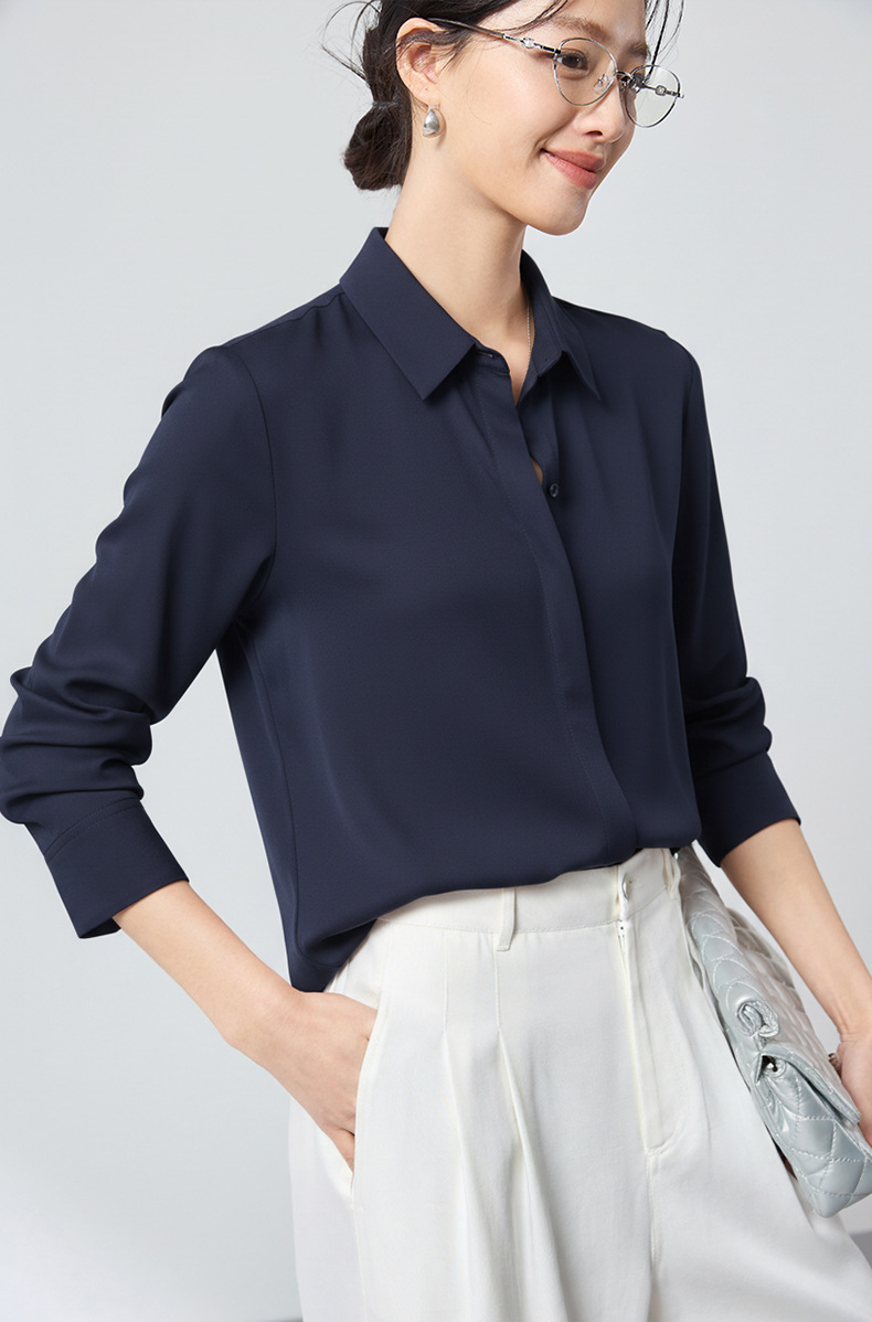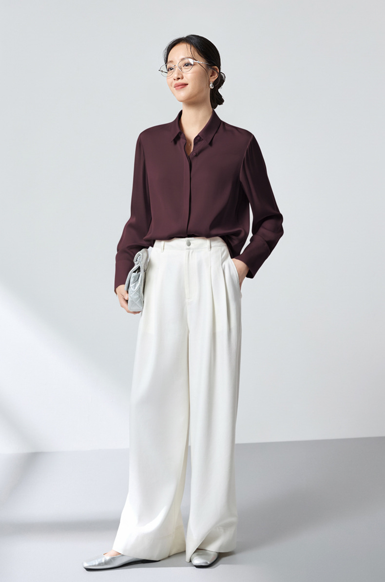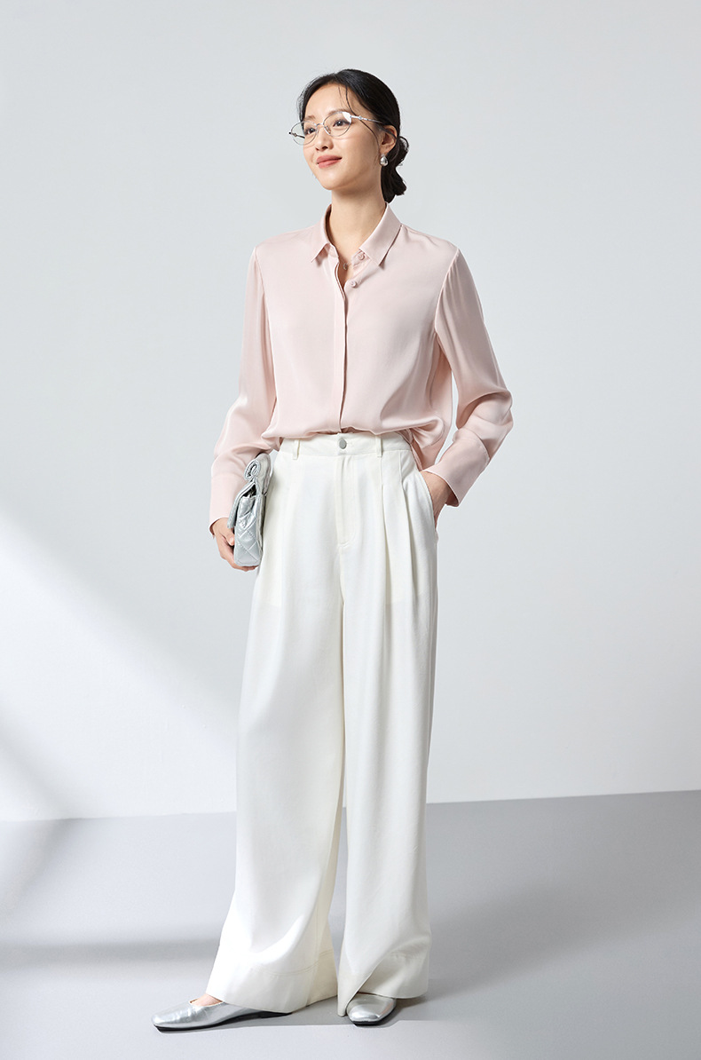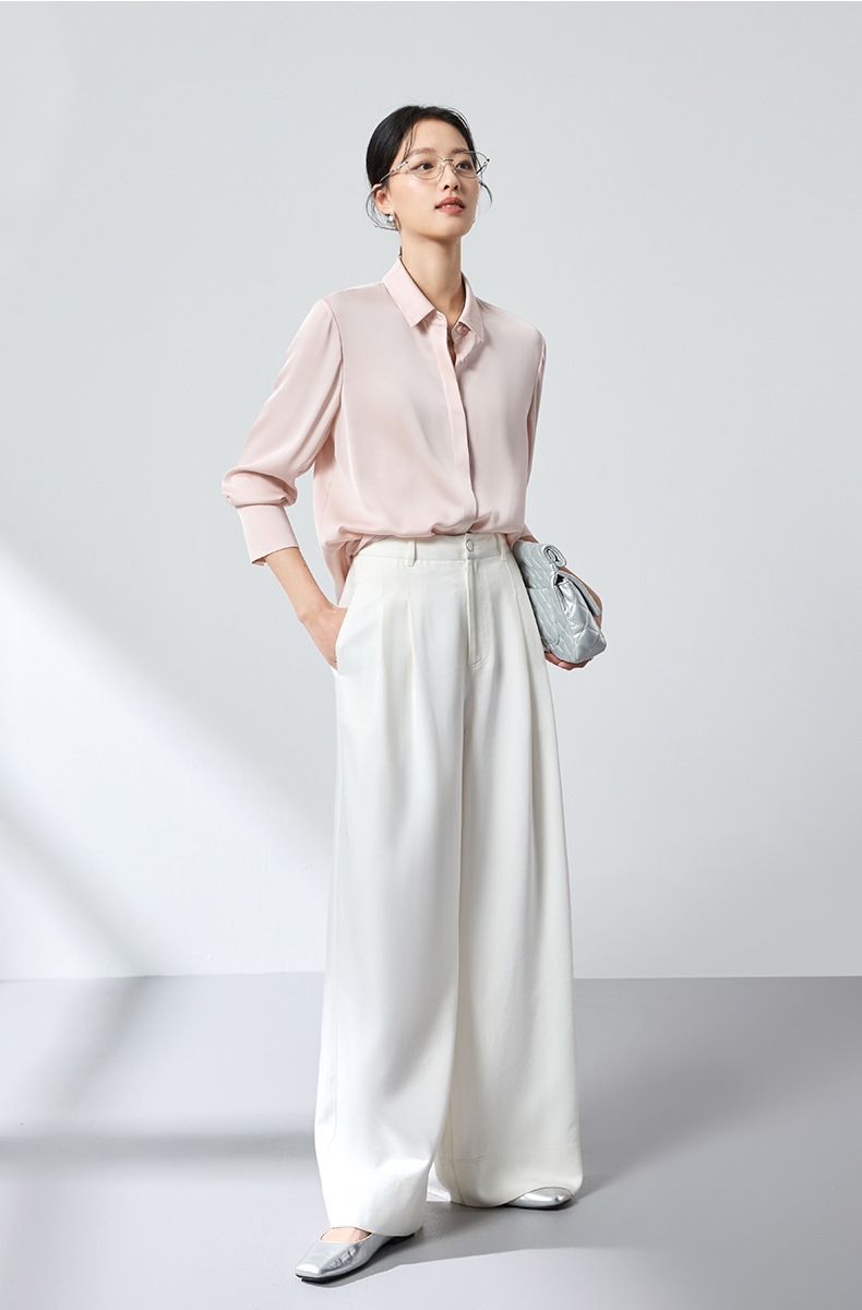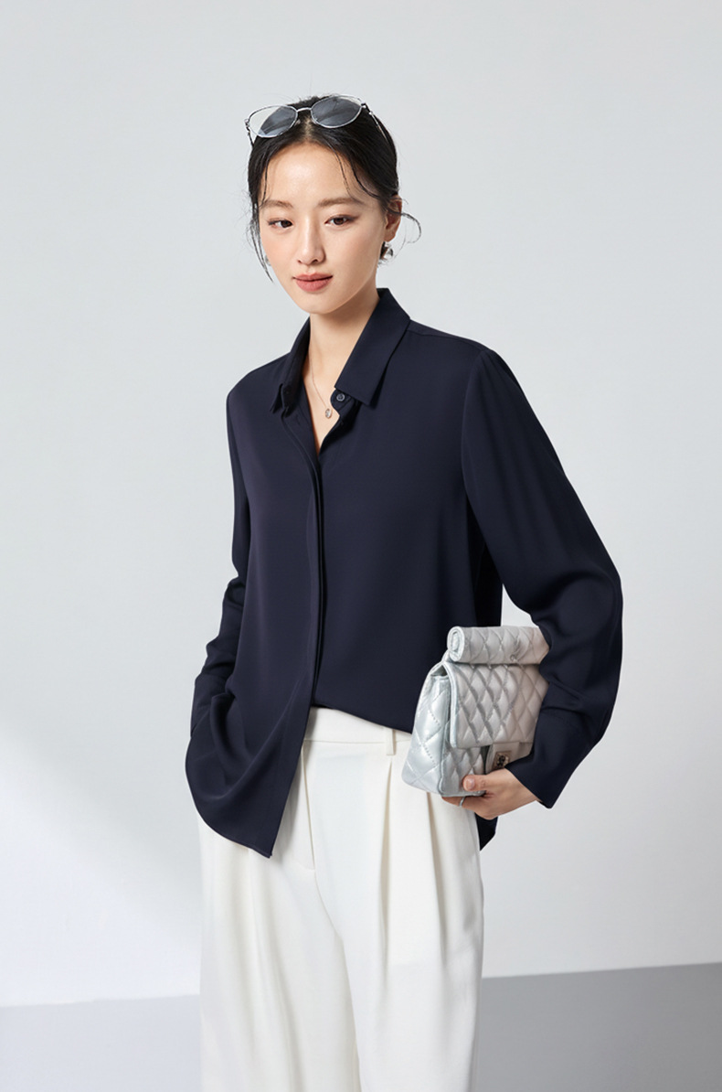 QS高档桑蚕丝衬衫26春弹力双乔通勤百搭衬衣垂坠上衣舒适2783
