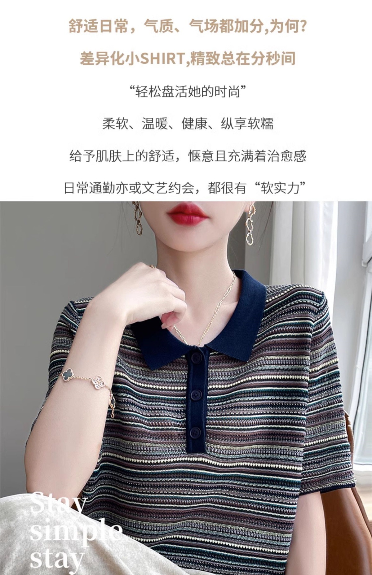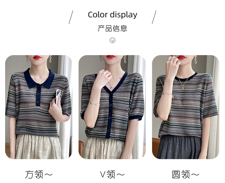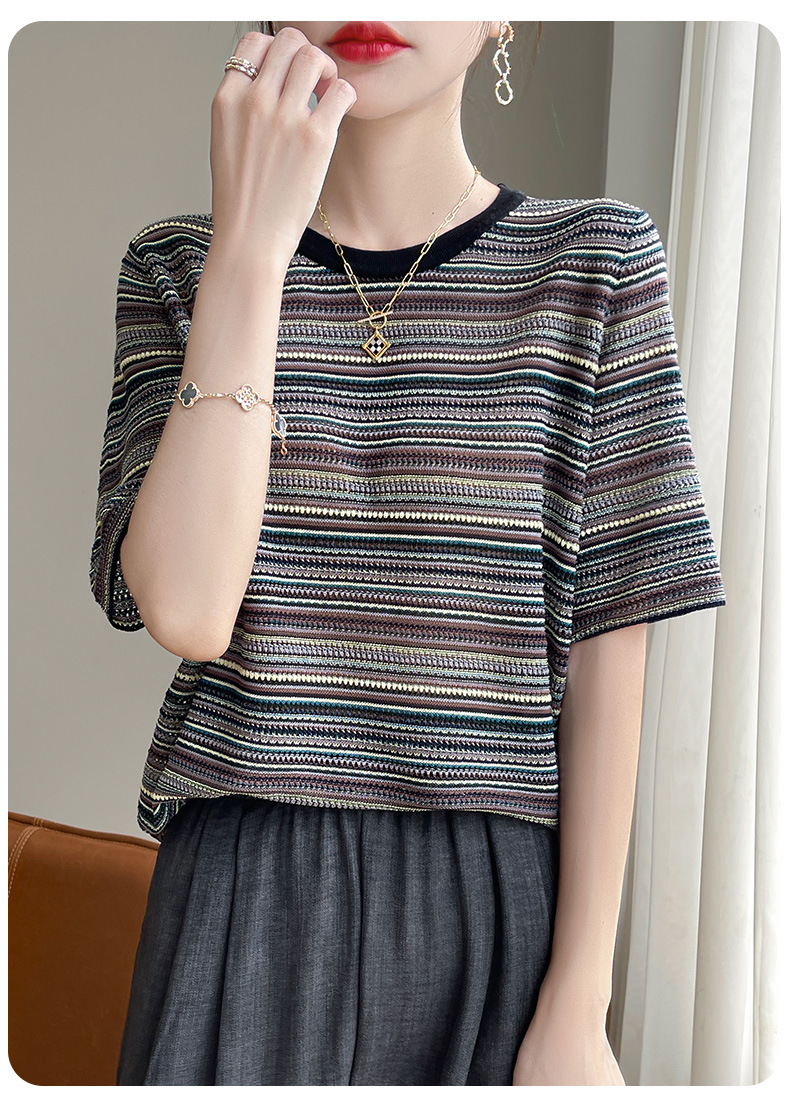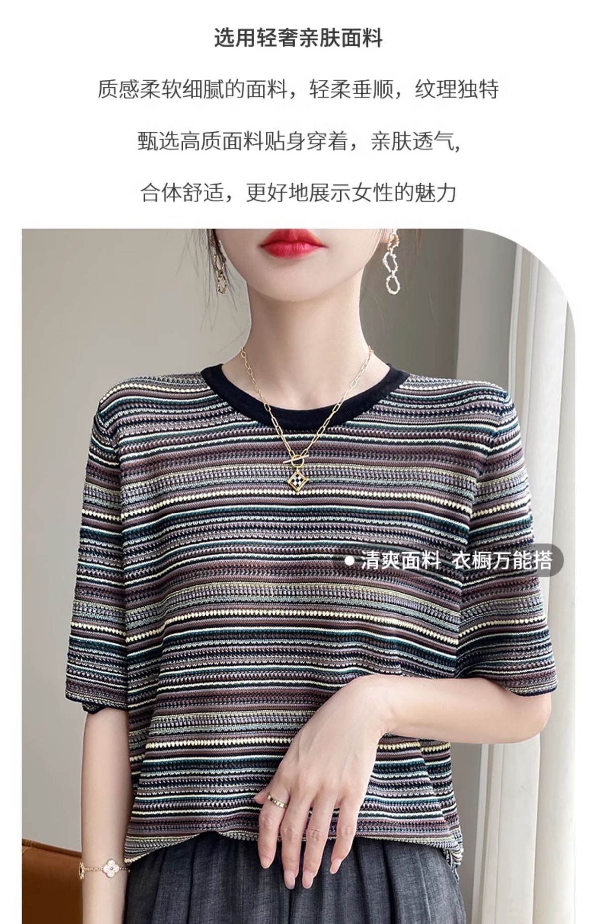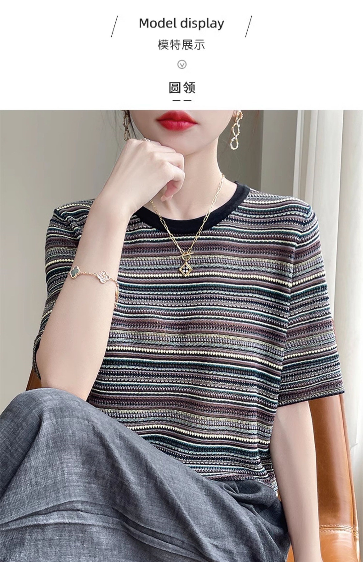 CC-XIX-179新款时尚洋气彩条短款女装夏季上衣冰丝针织短袖t恤女