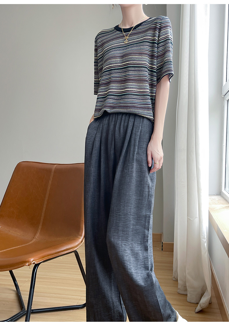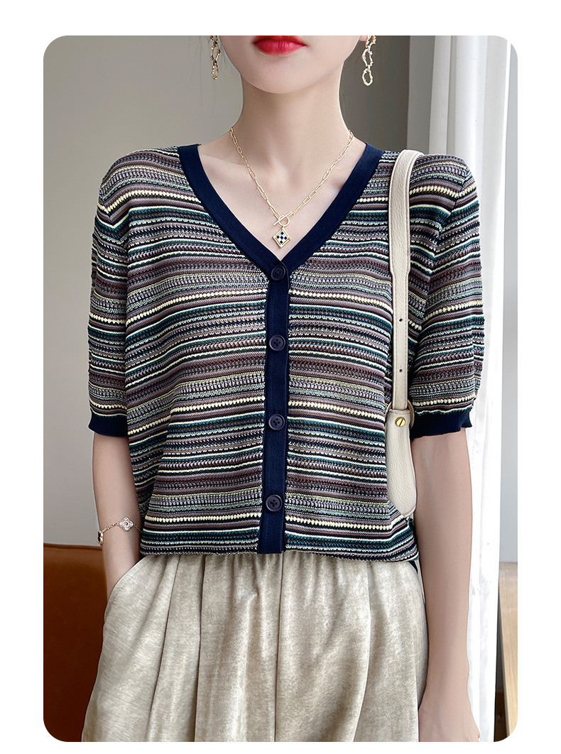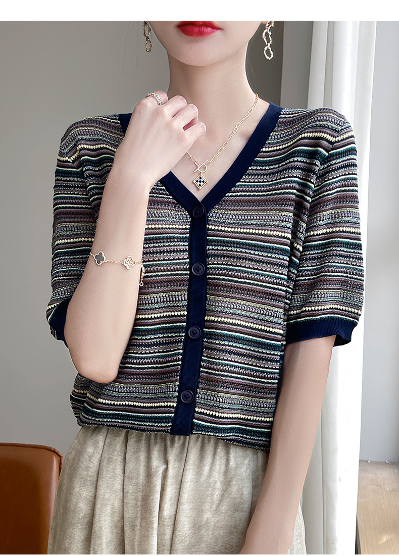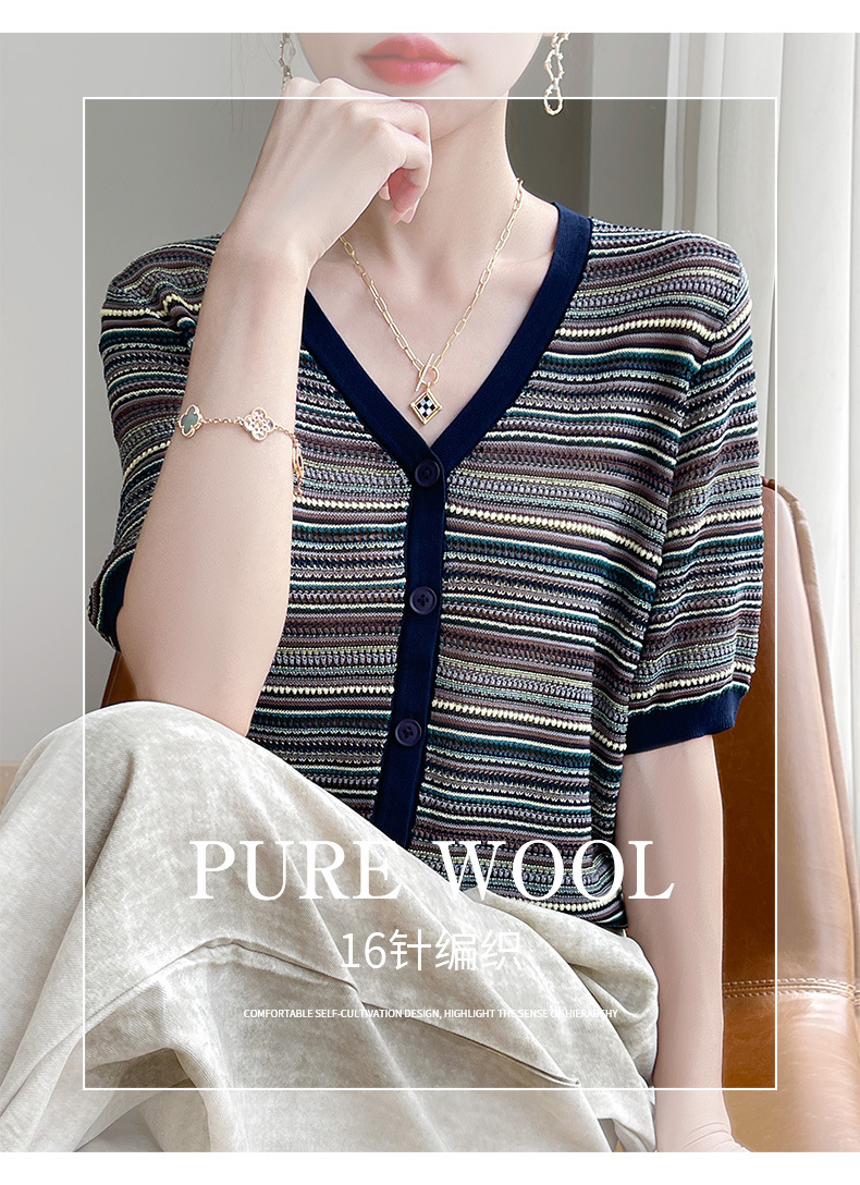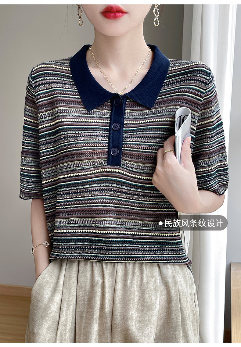 CC-XIX-179新款时尚洋气彩条短款女装夏季上衣冰丝针织短袖t恤女