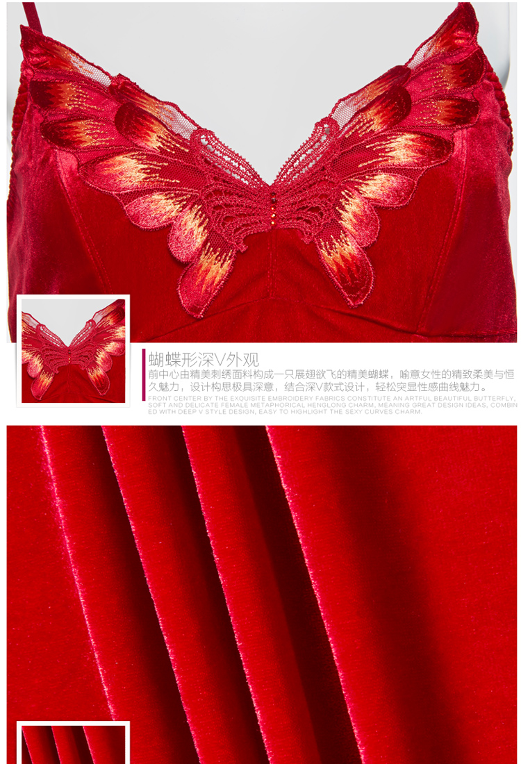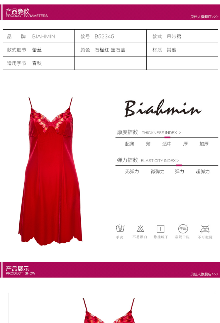 贝佳人正品无袖吊带睡裙石榴红连衣裙家居服蝴蝶性感睡衣