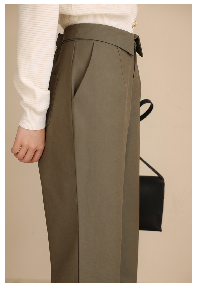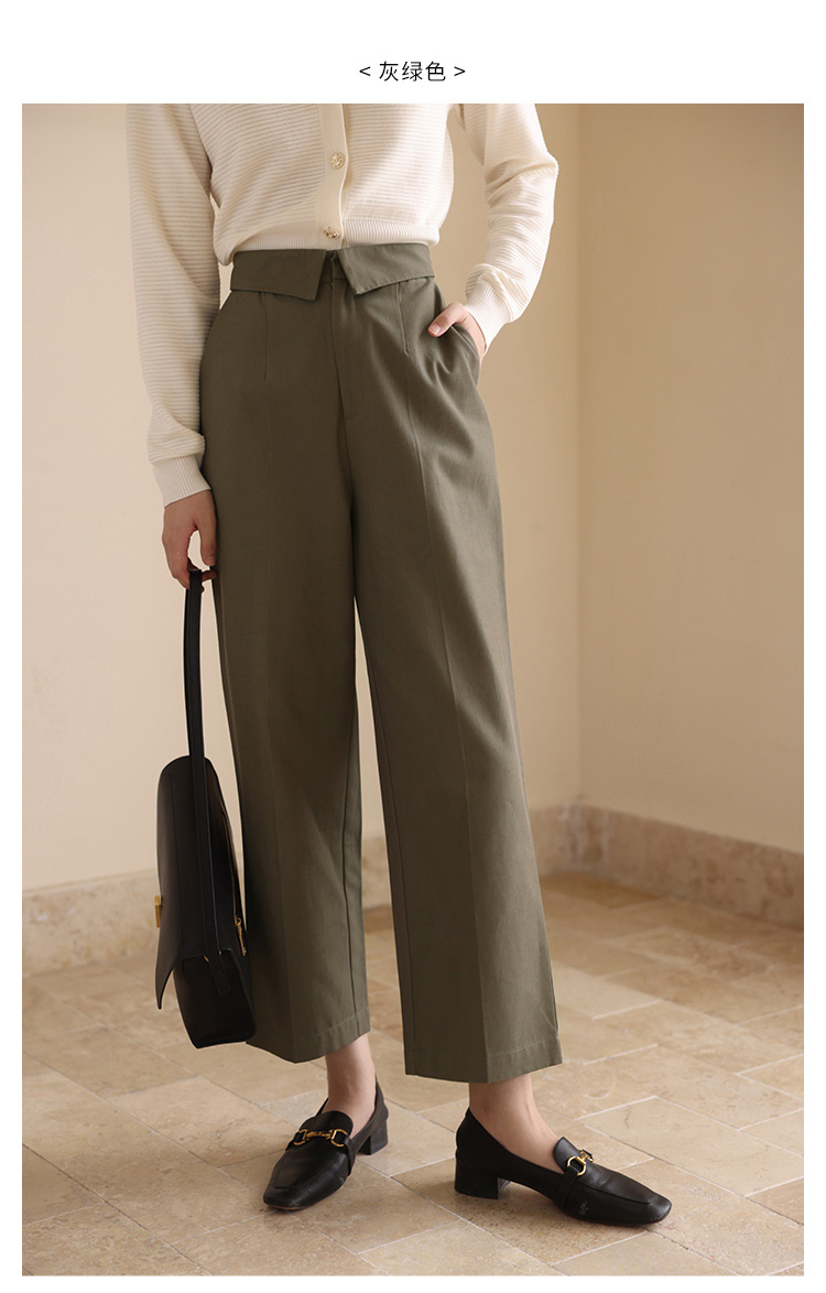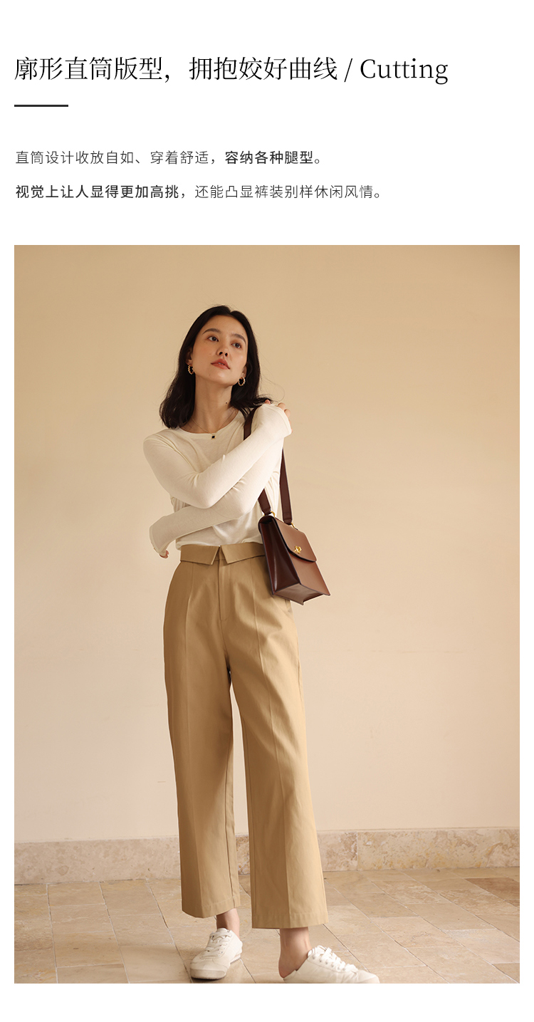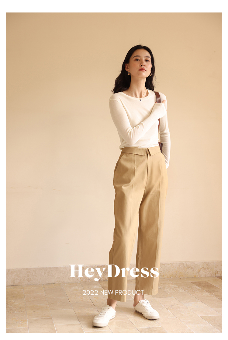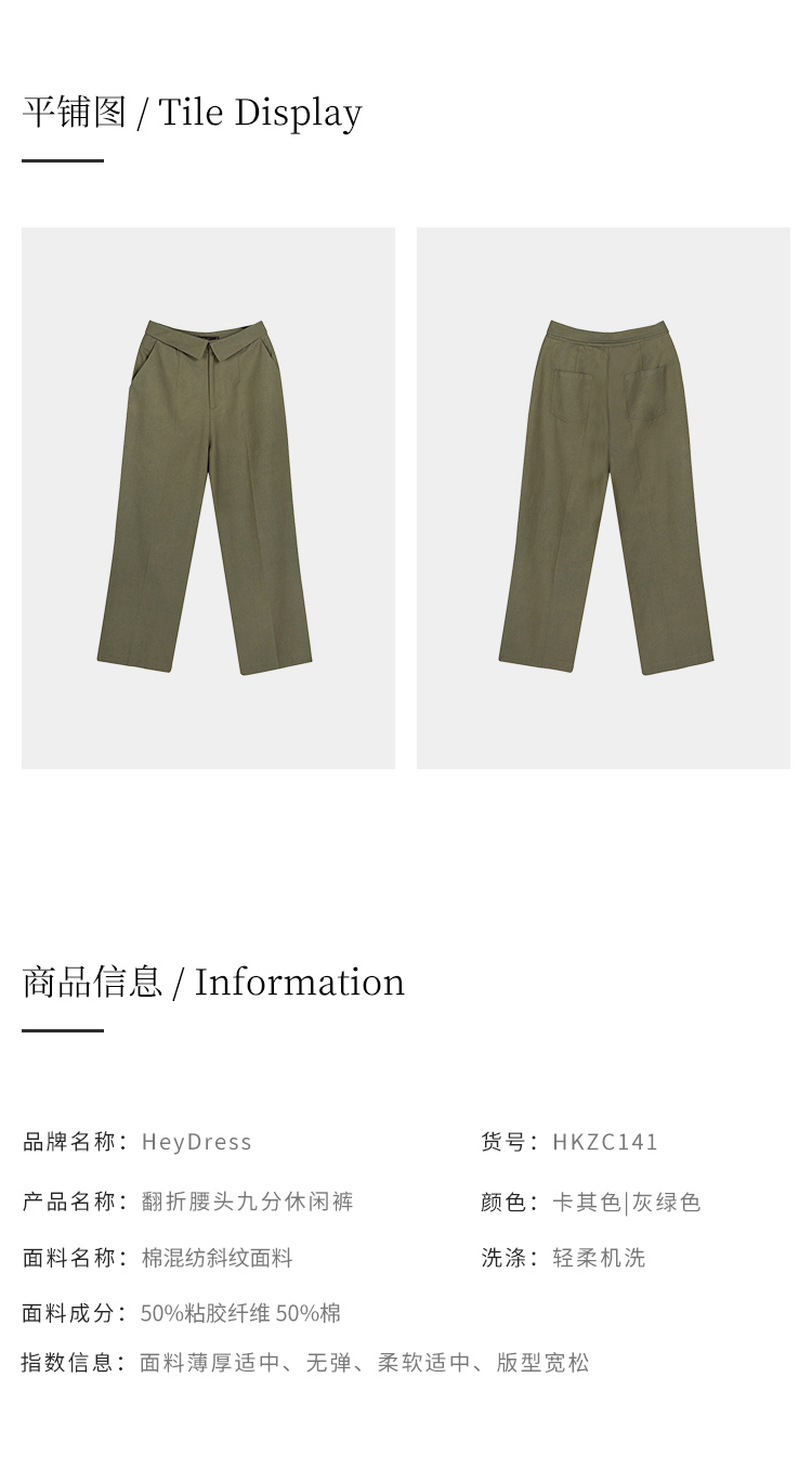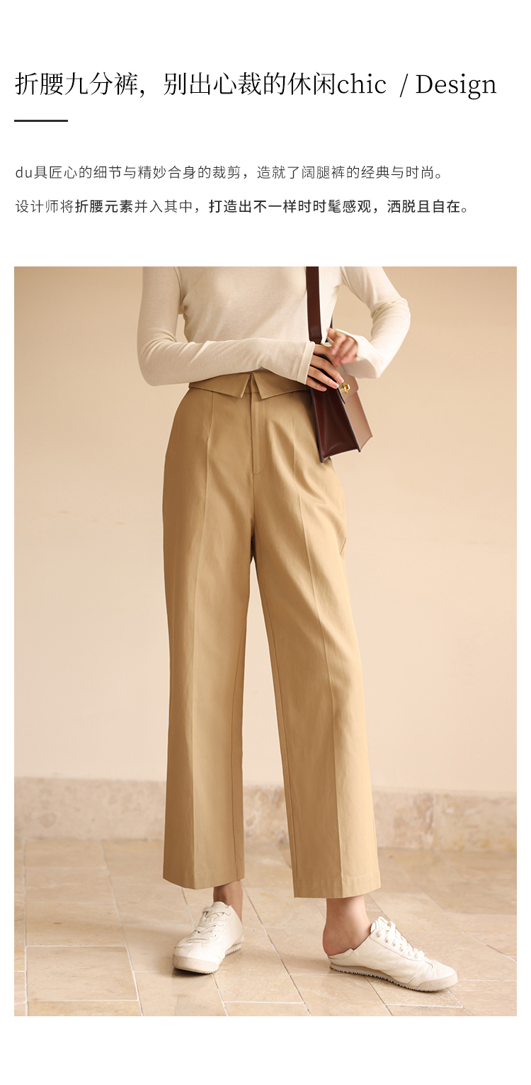 HeyDress休闲裤女秋季翻边高腰设计感九分裤宽松直筒显瘦阔腿裤子