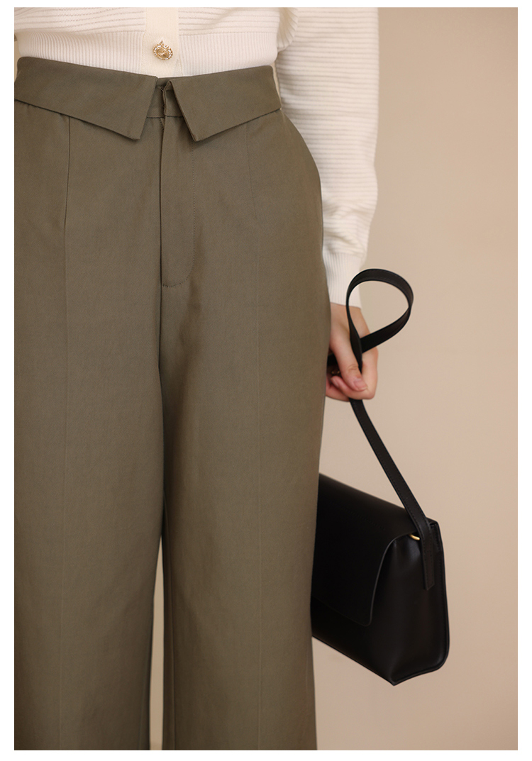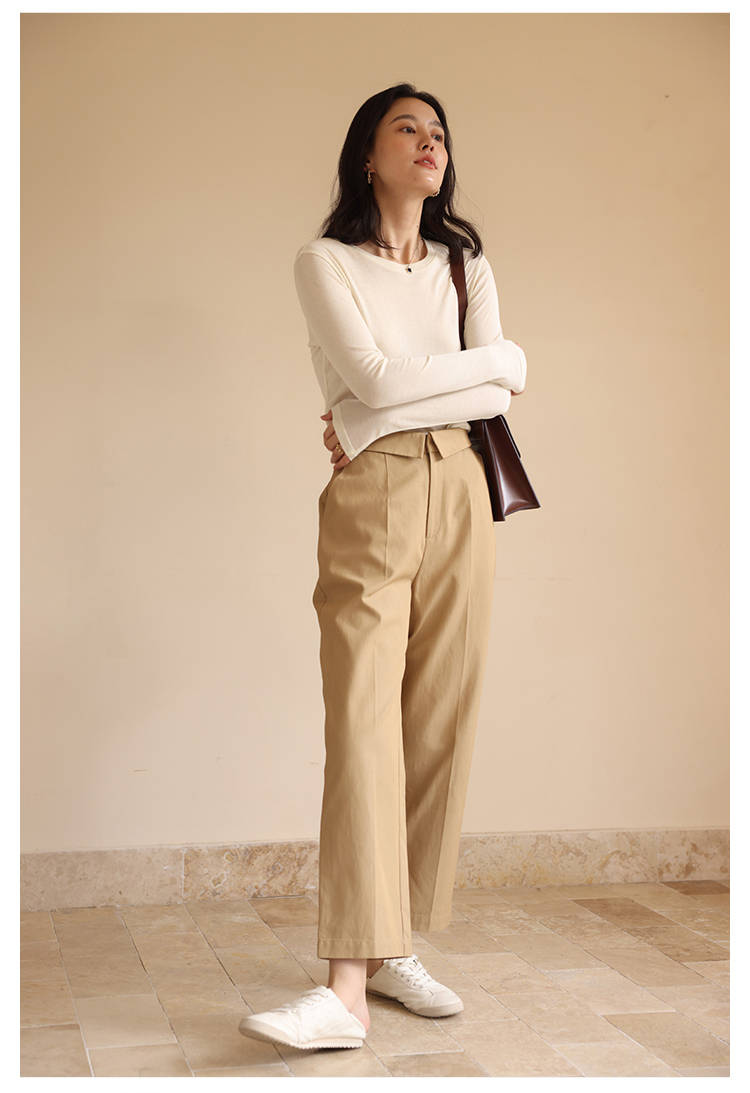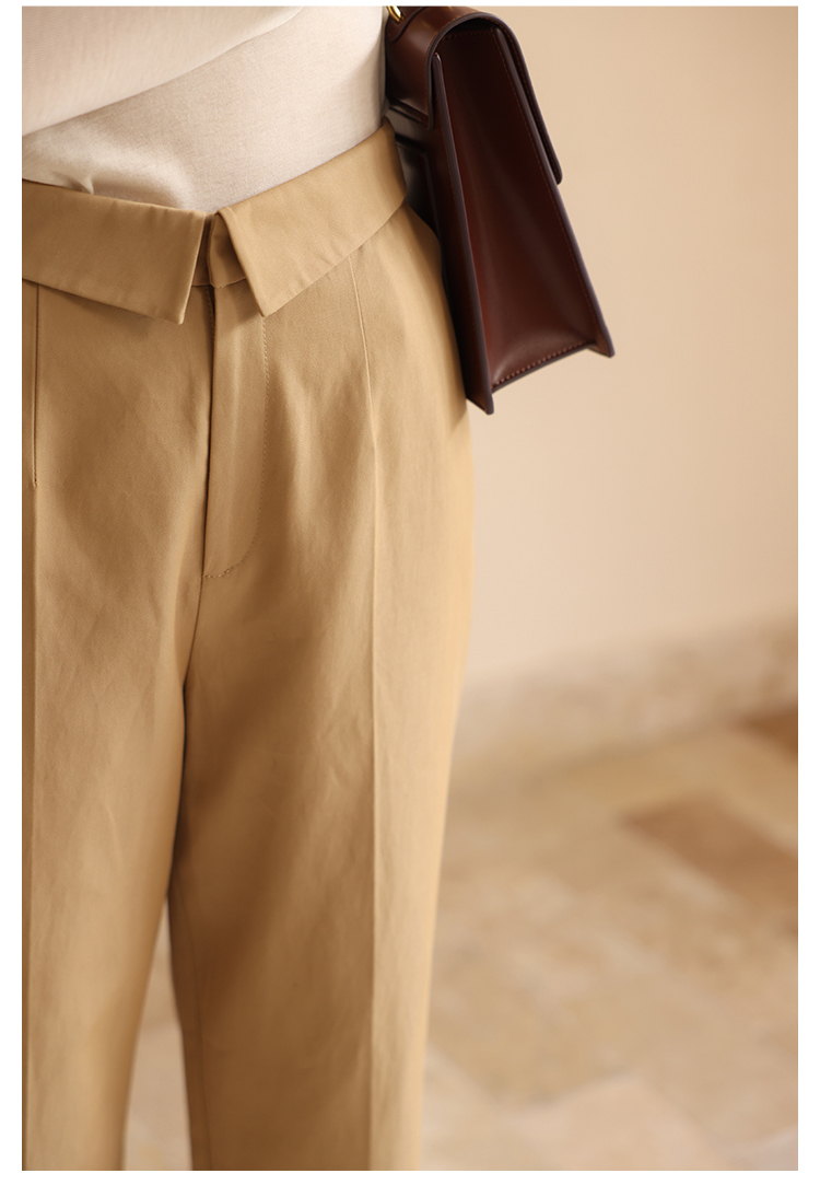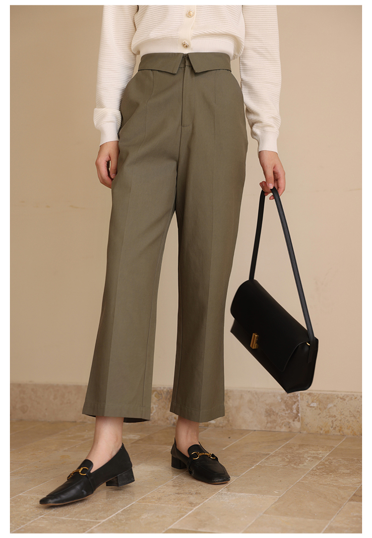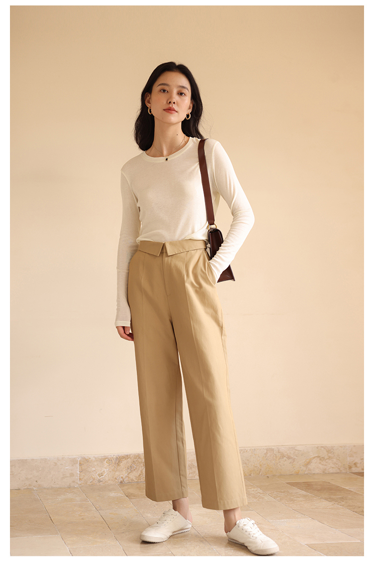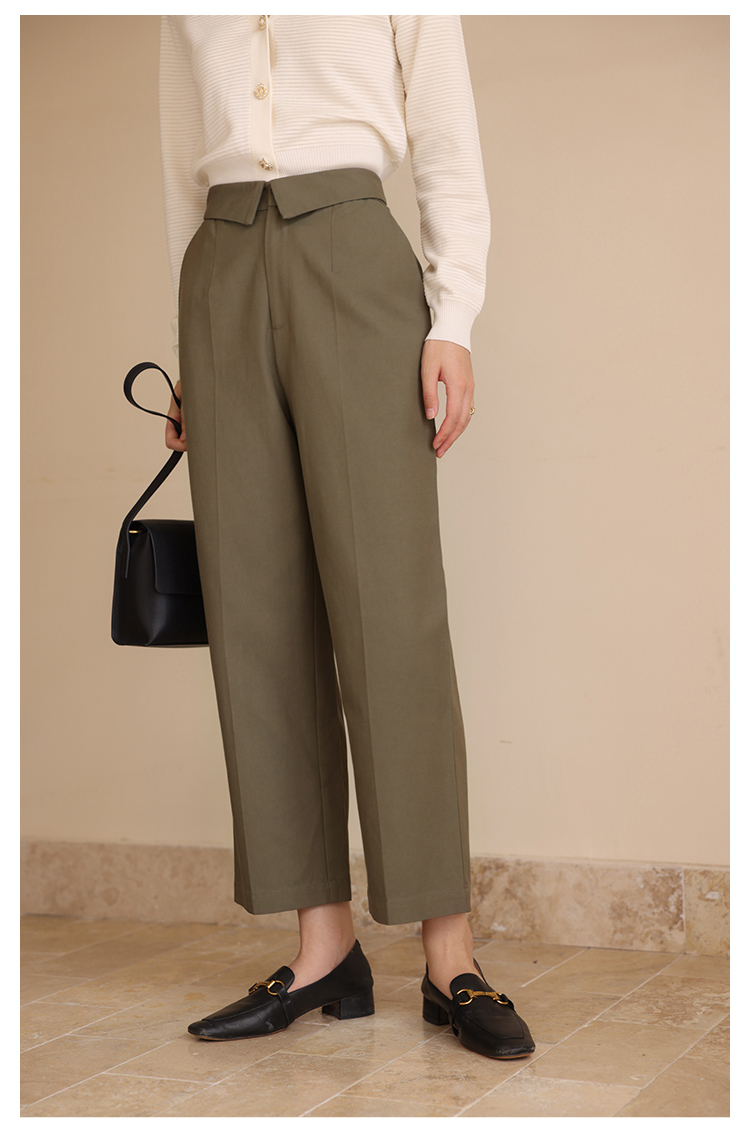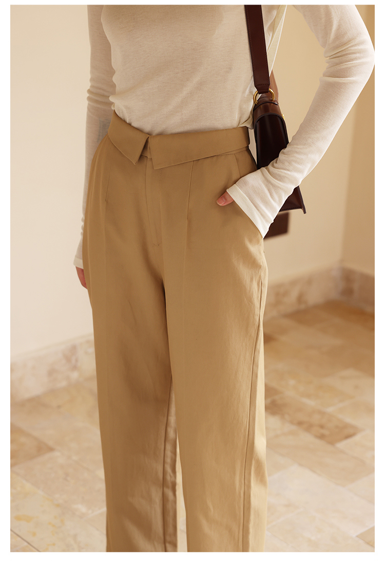 HeyDress休闲裤女秋季翻边高腰设计感九分裤宽松直筒显瘦阔腿裤子