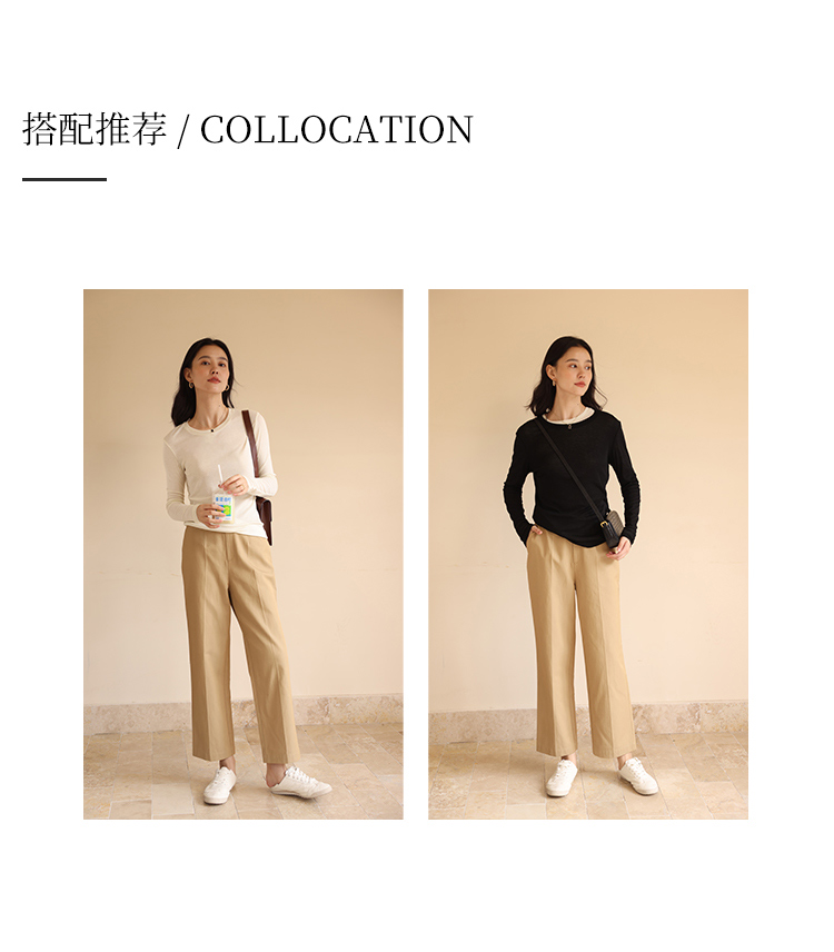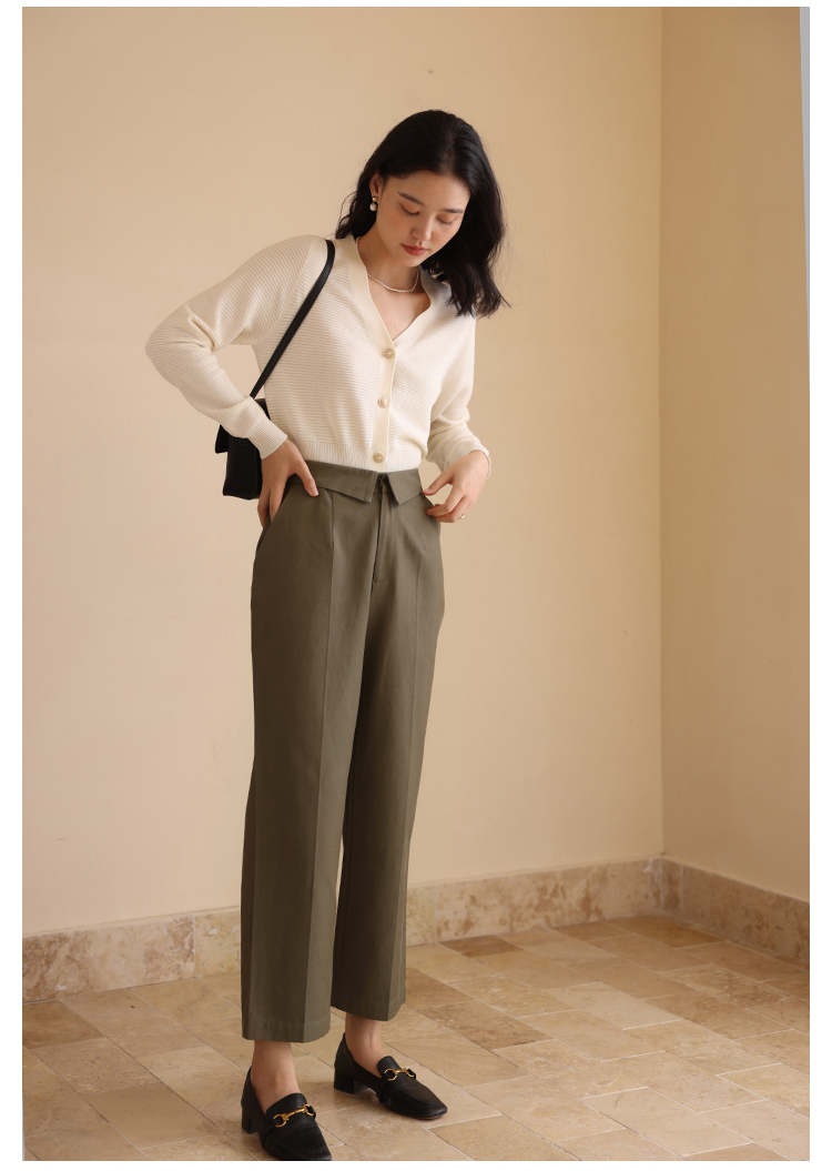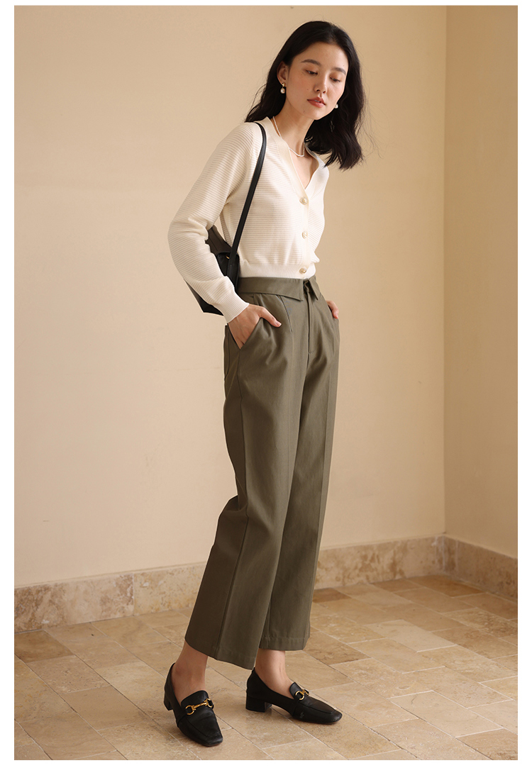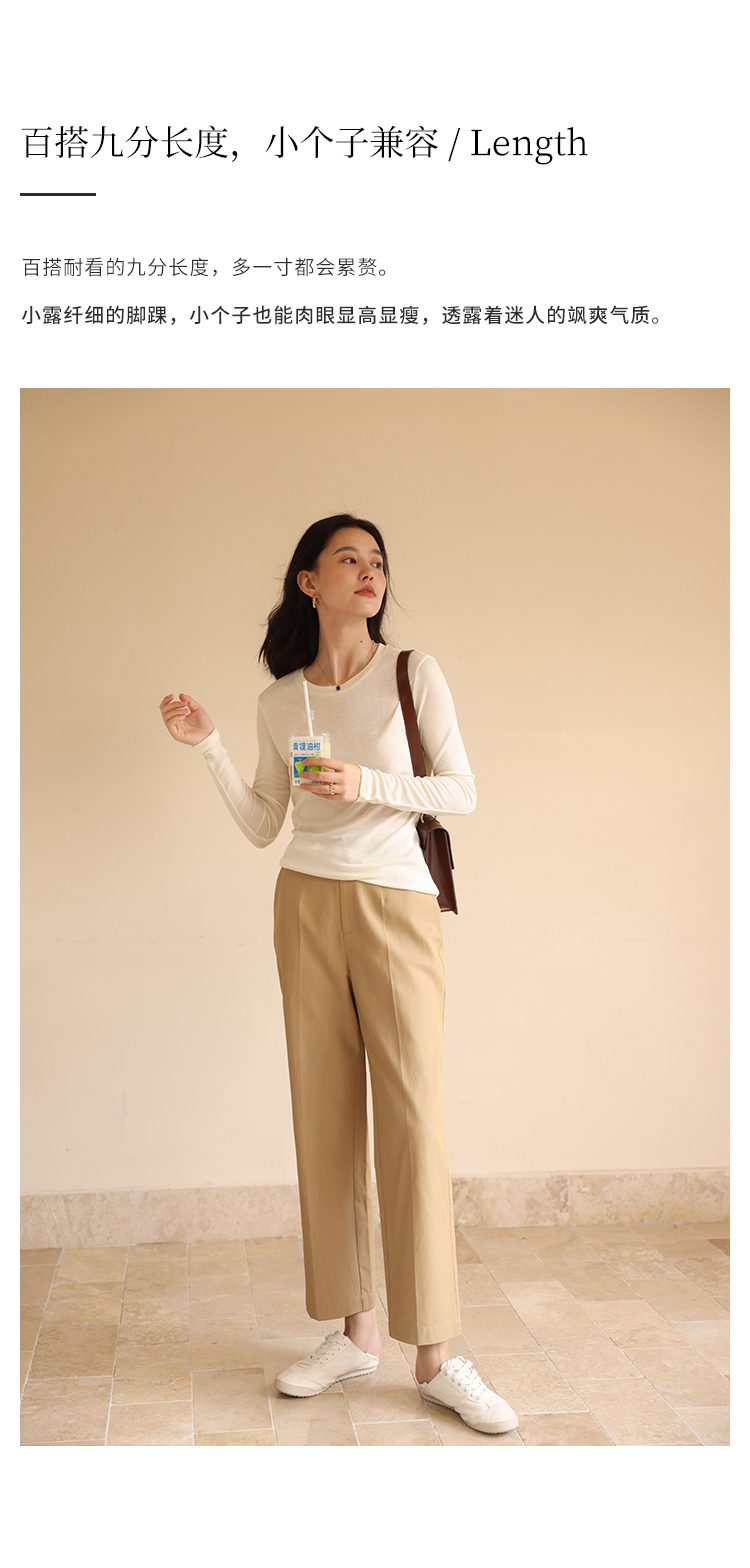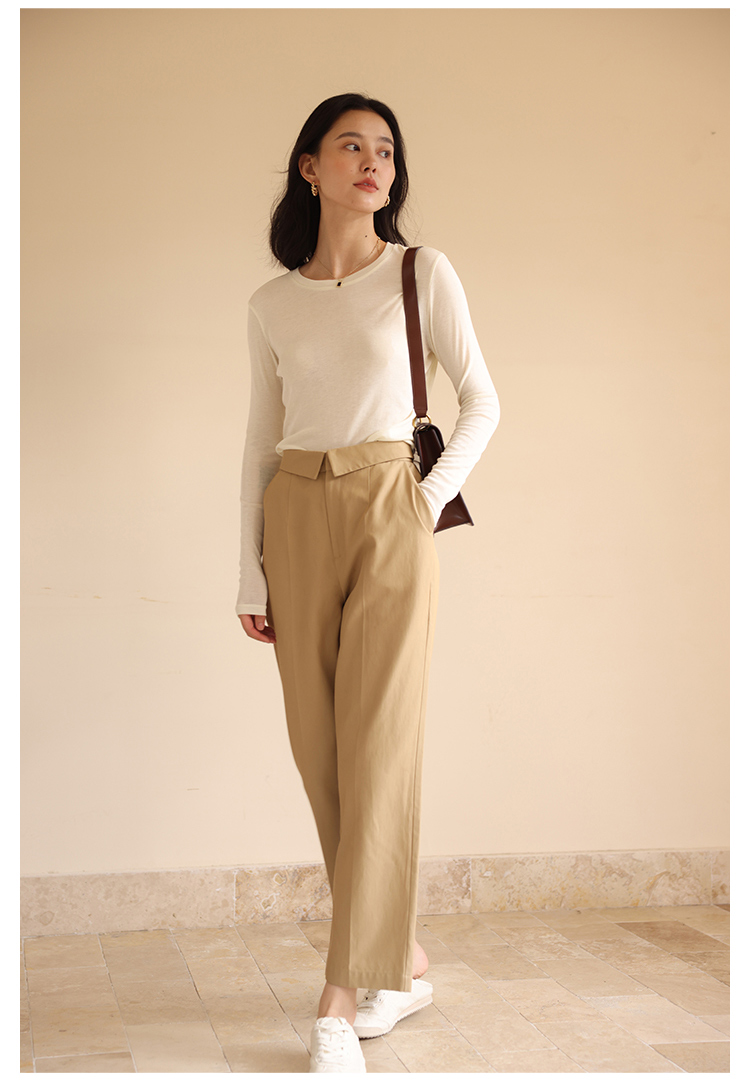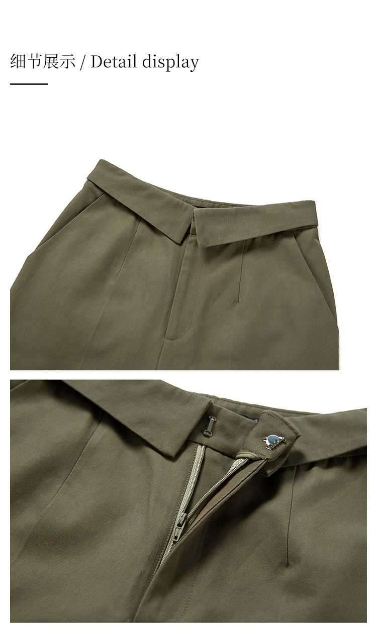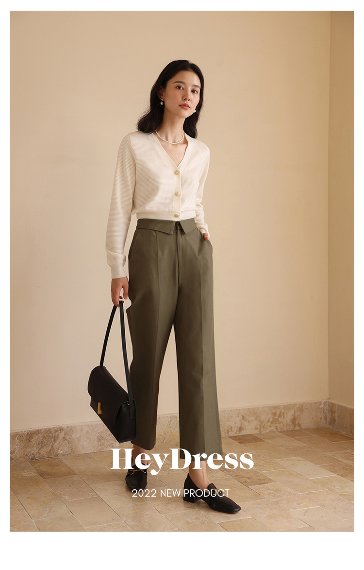HeyDress休闲裤女秋季翻边高腰设计感九分裤宽松直筒显瘦阔腿裤子