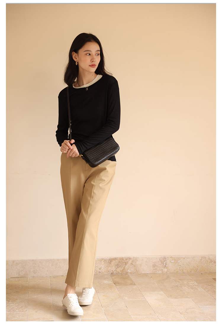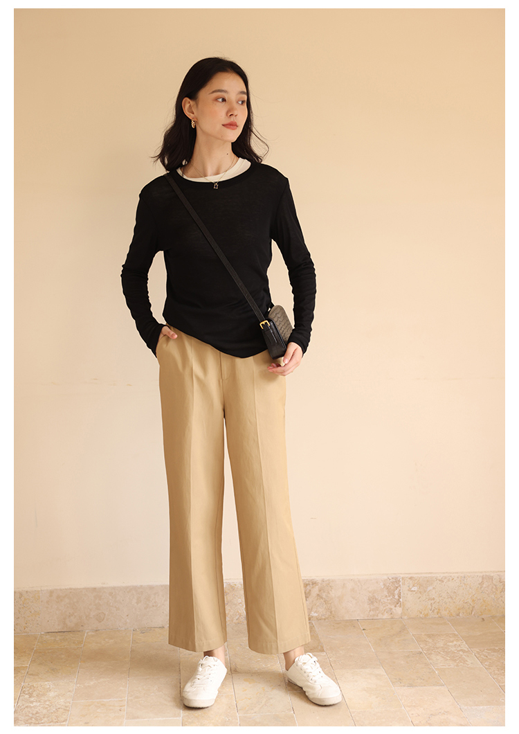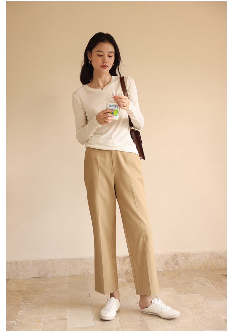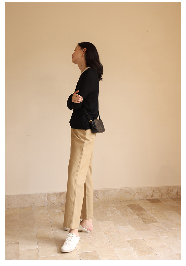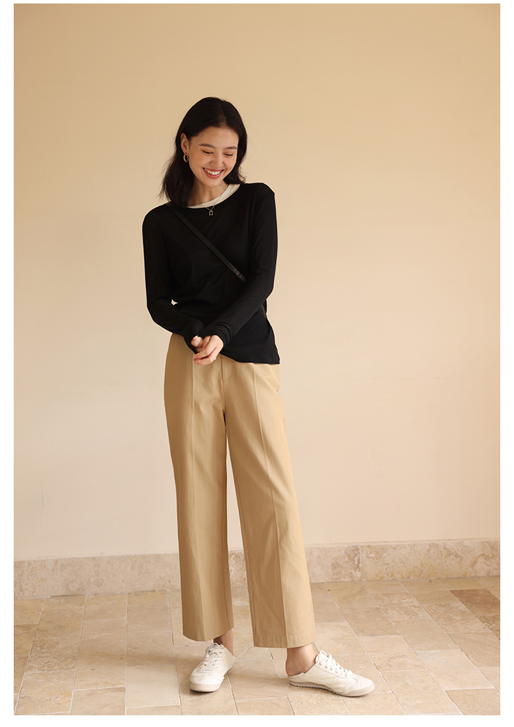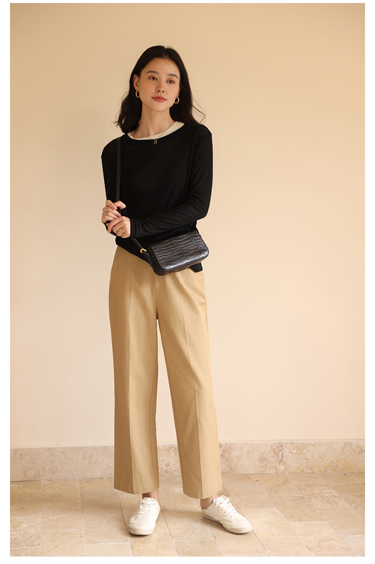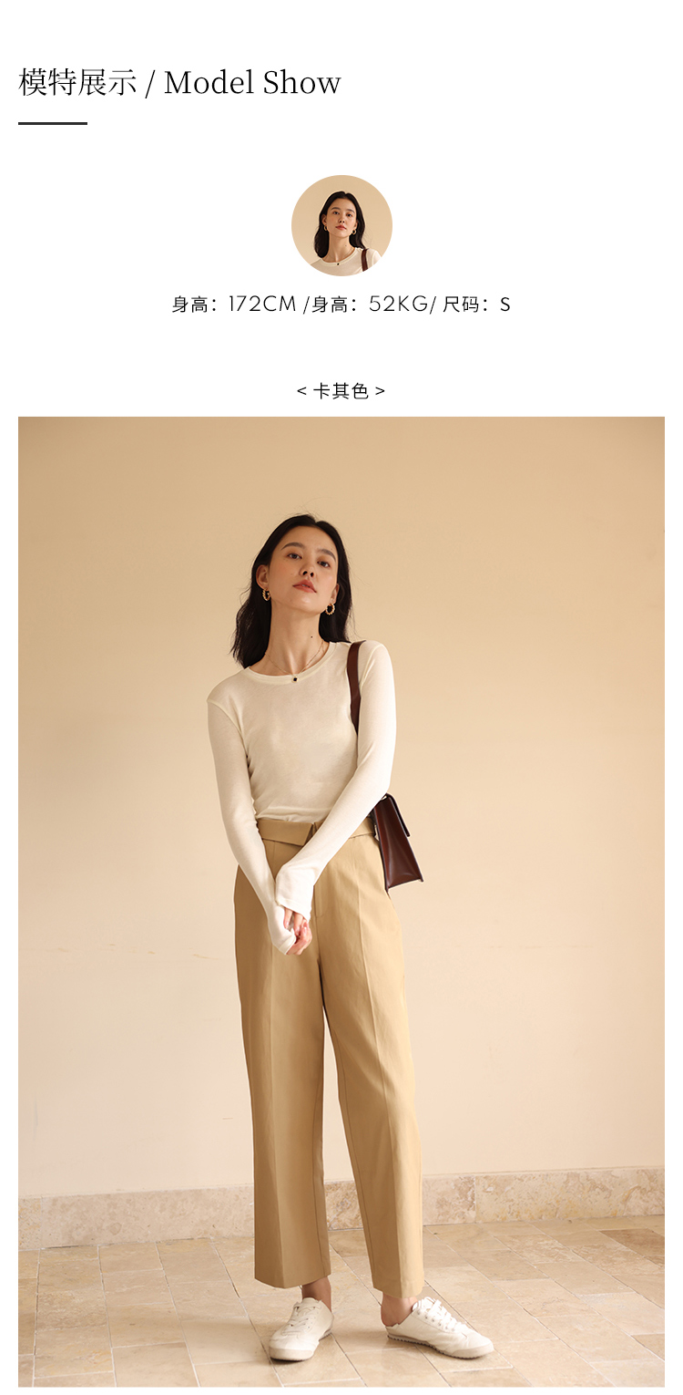 HeyDress休闲裤女秋季翻边高腰设计感九分裤宽松直筒显瘦阔腿裤子