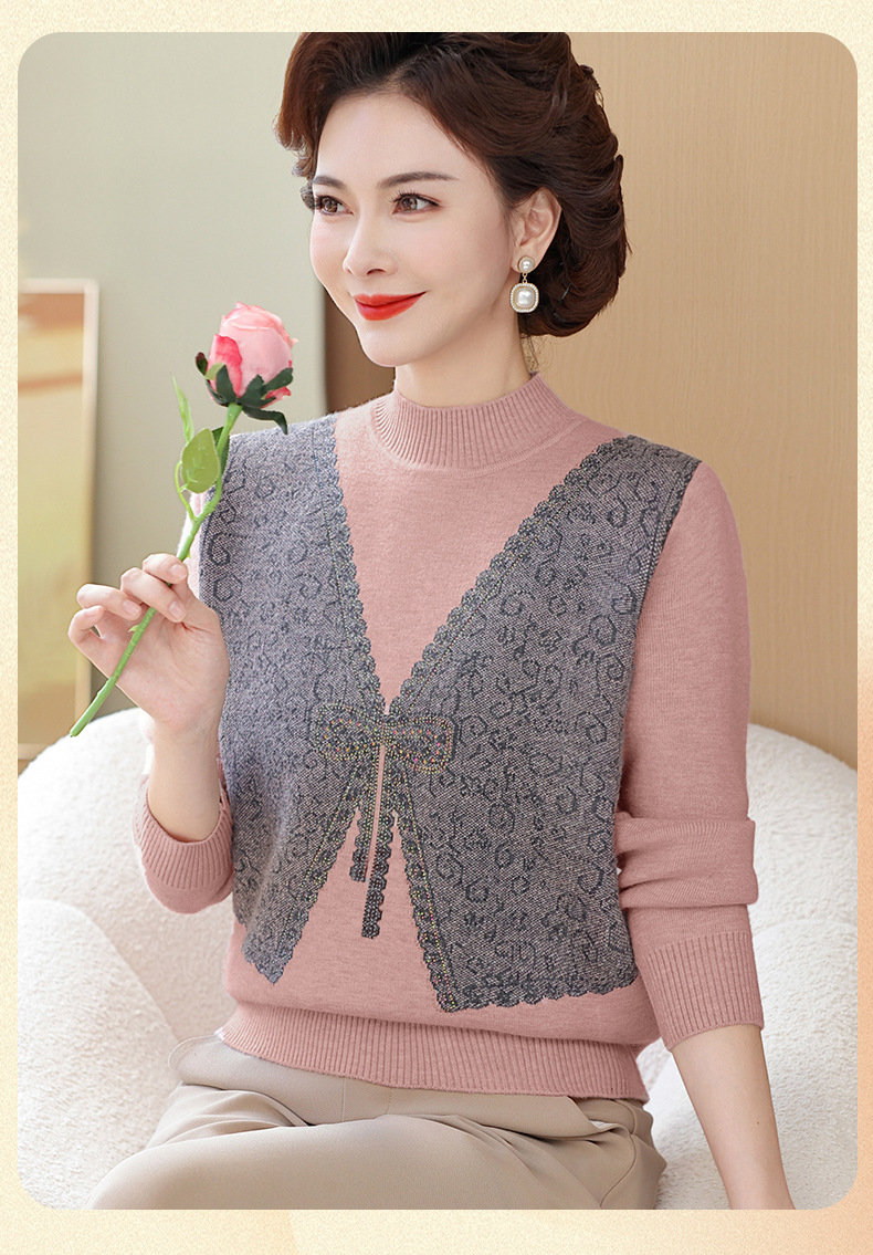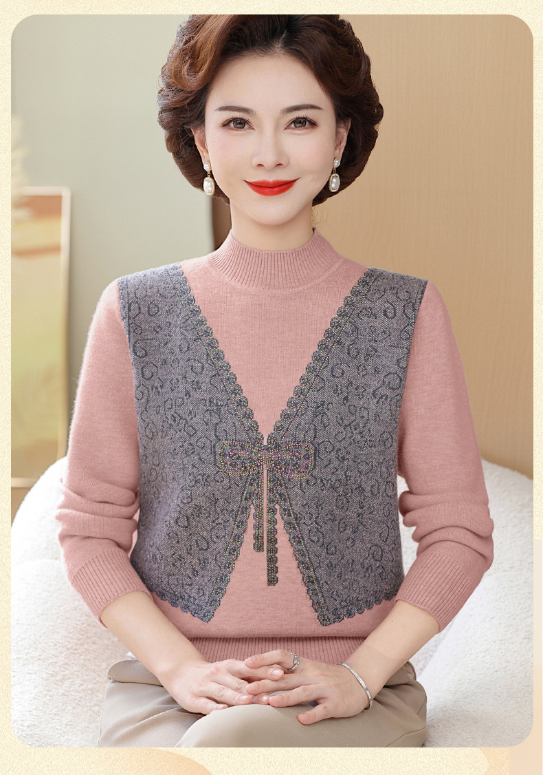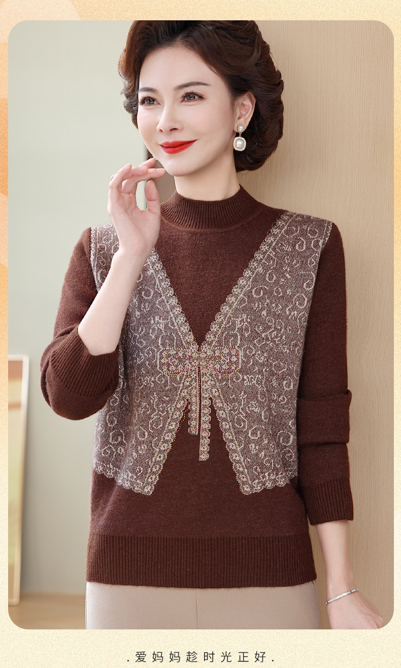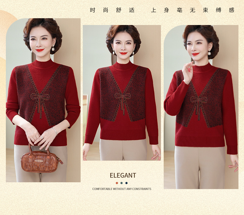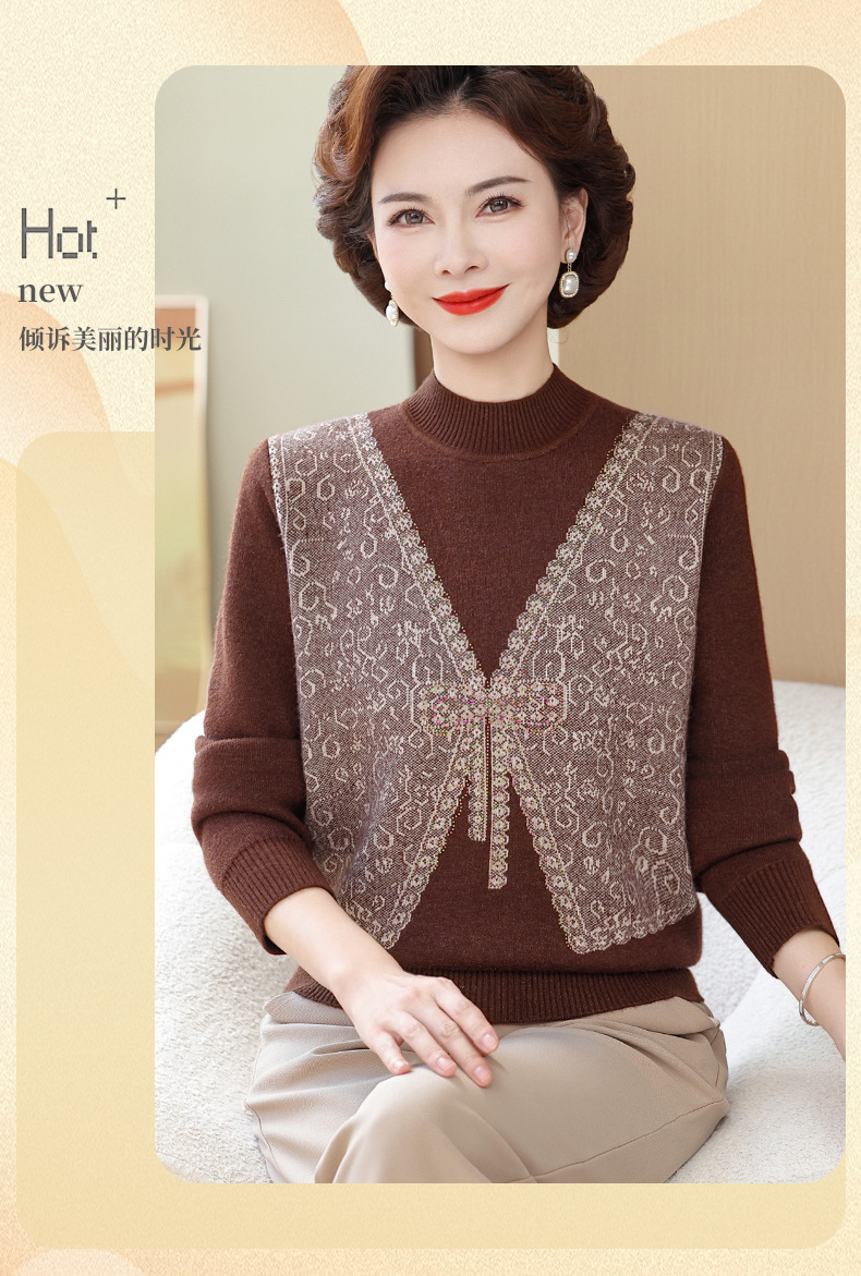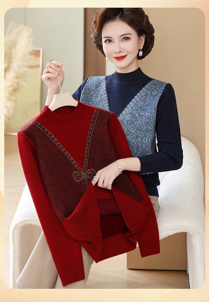 中老年加绒加厚打底衫中年妇女内搭保暖上衣妈妈装冬装一体绒毛衣