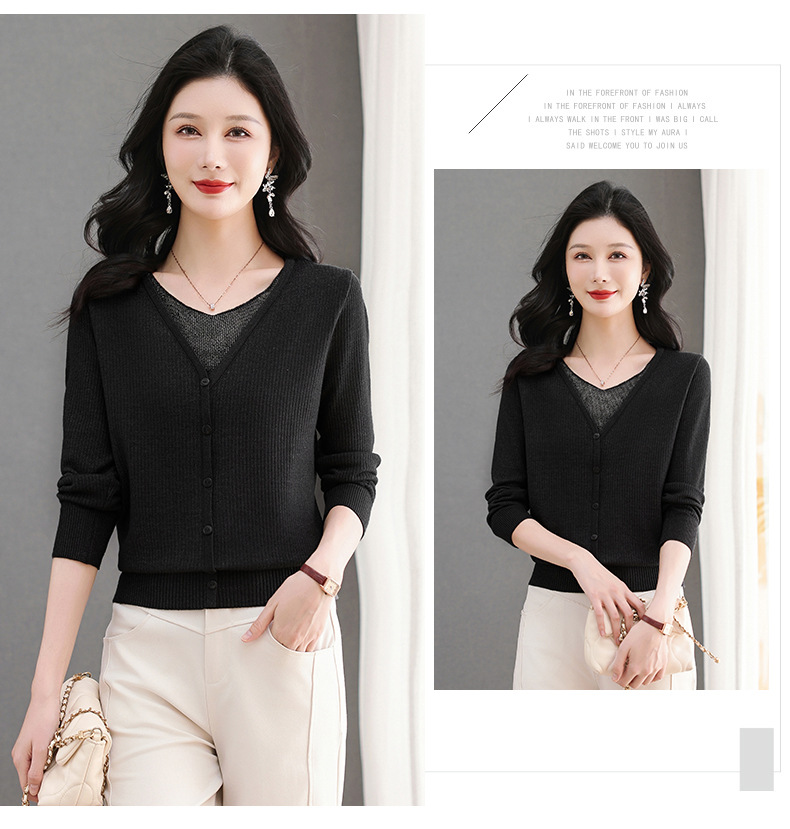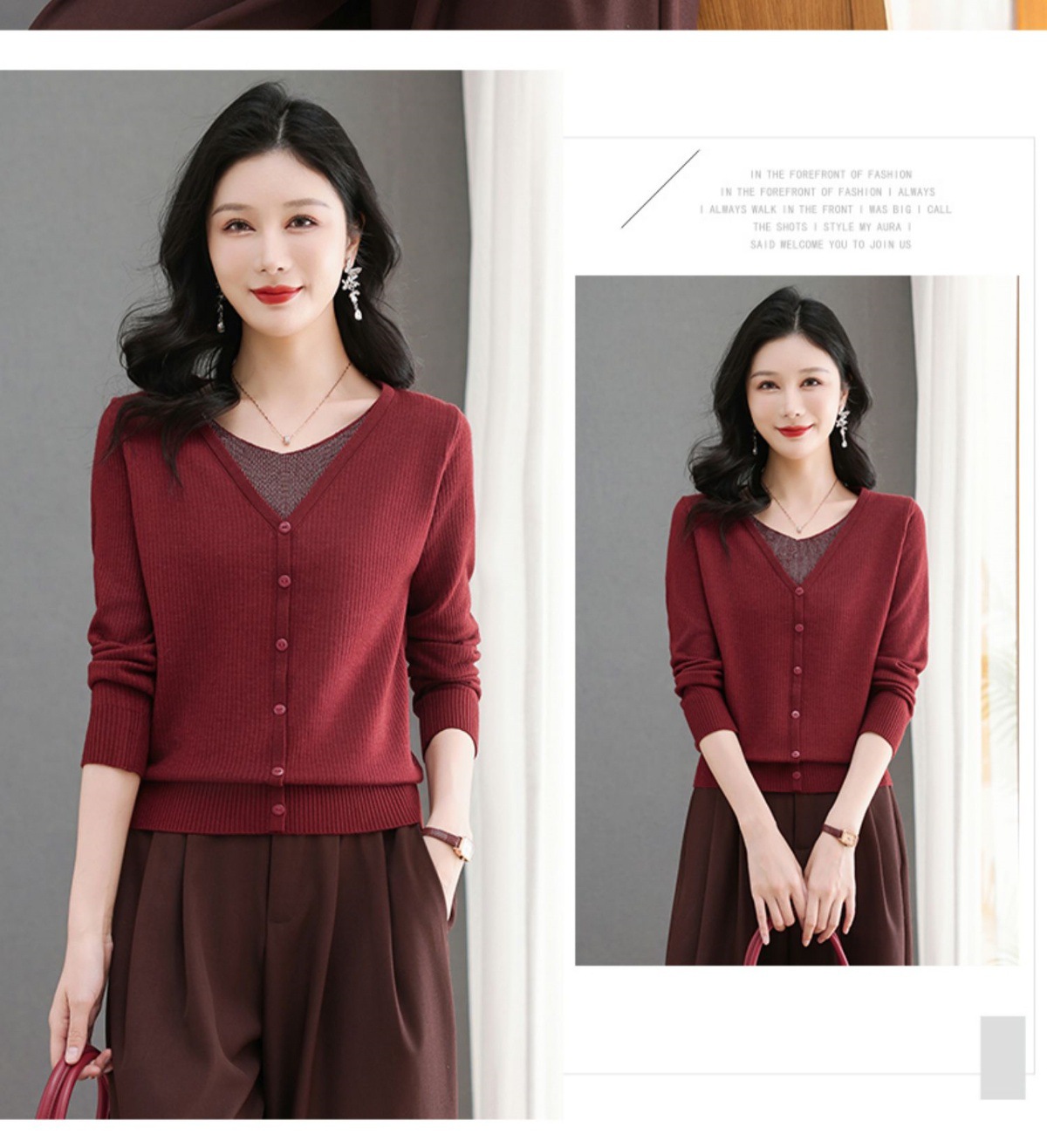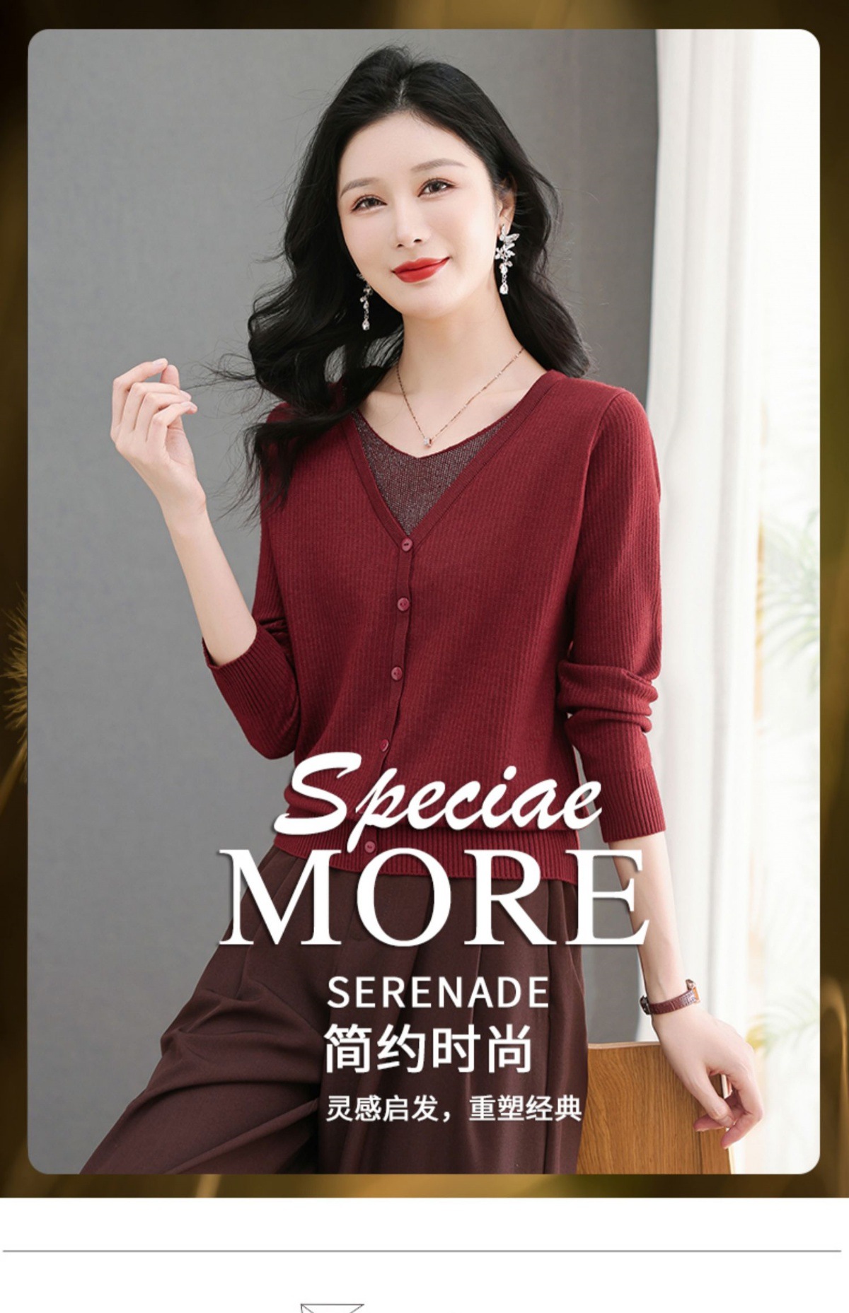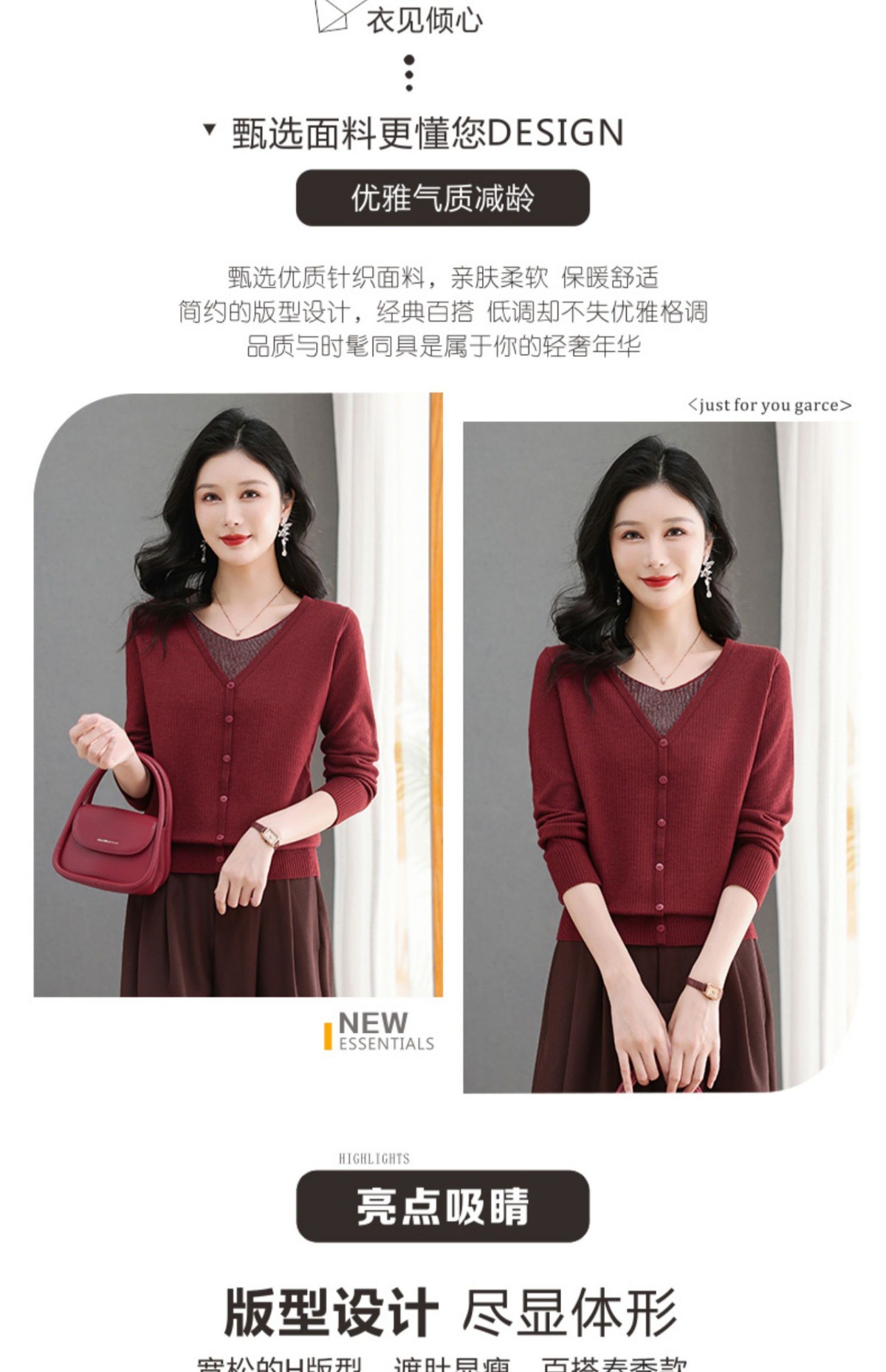 CC-NN-2502春秋季新款拼接假两件设计感针织打底衫时尚气质温柔宽松上衣