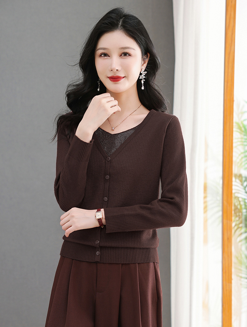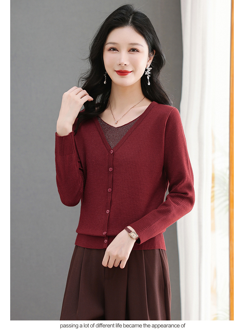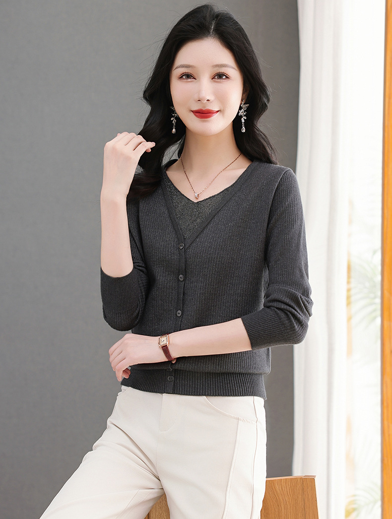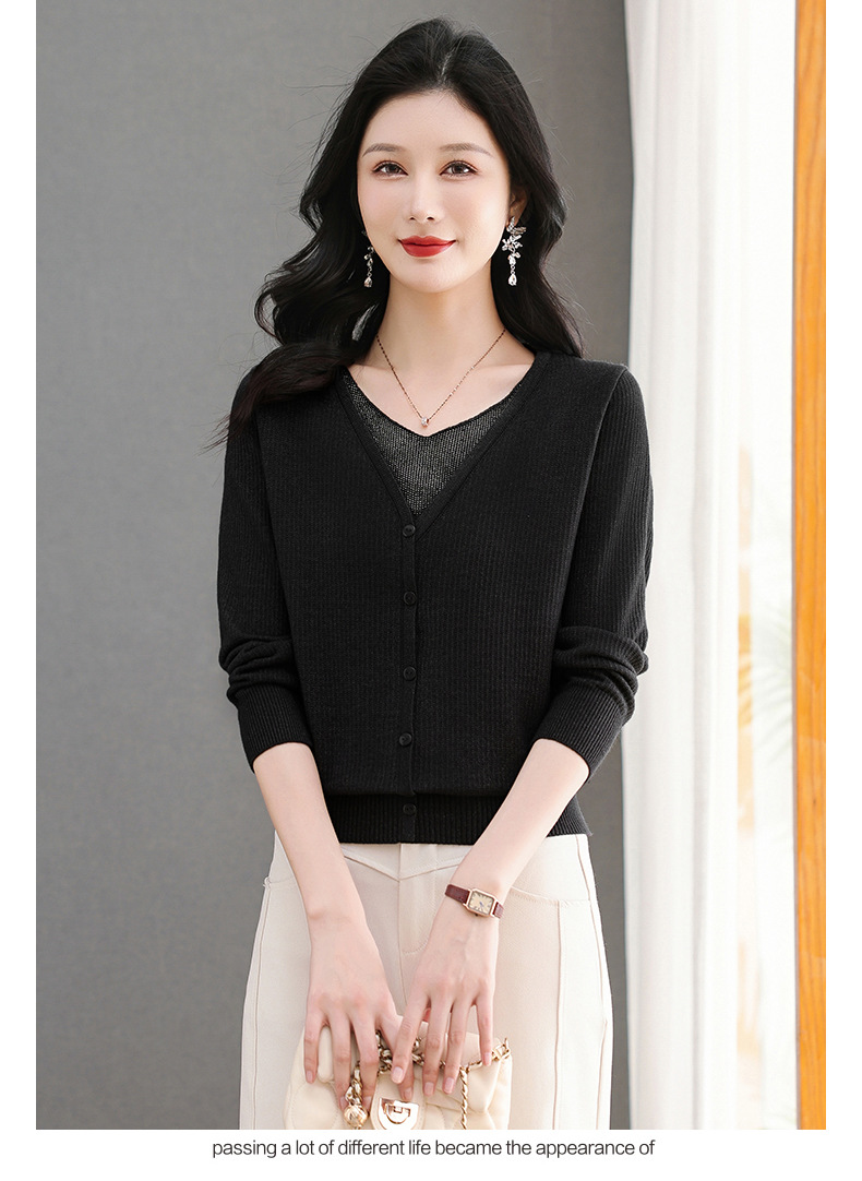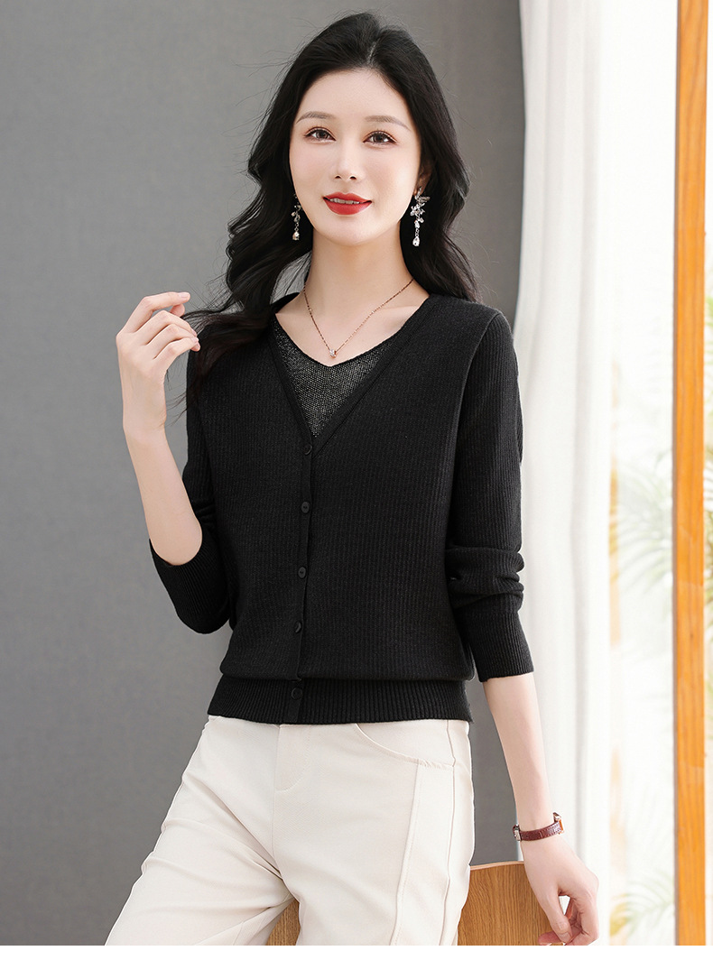 CC-NN-2502春秋季新款拼接假两件设计感针织打底衫时尚气质温柔宽松上衣