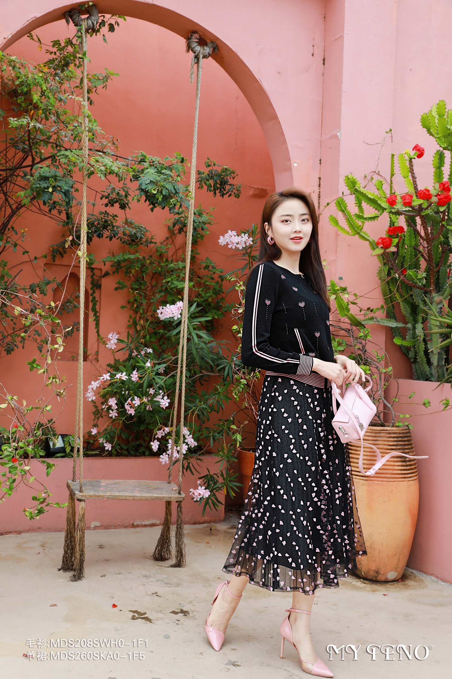 马天奴黑粉撞色纱裙MDS260SKA0