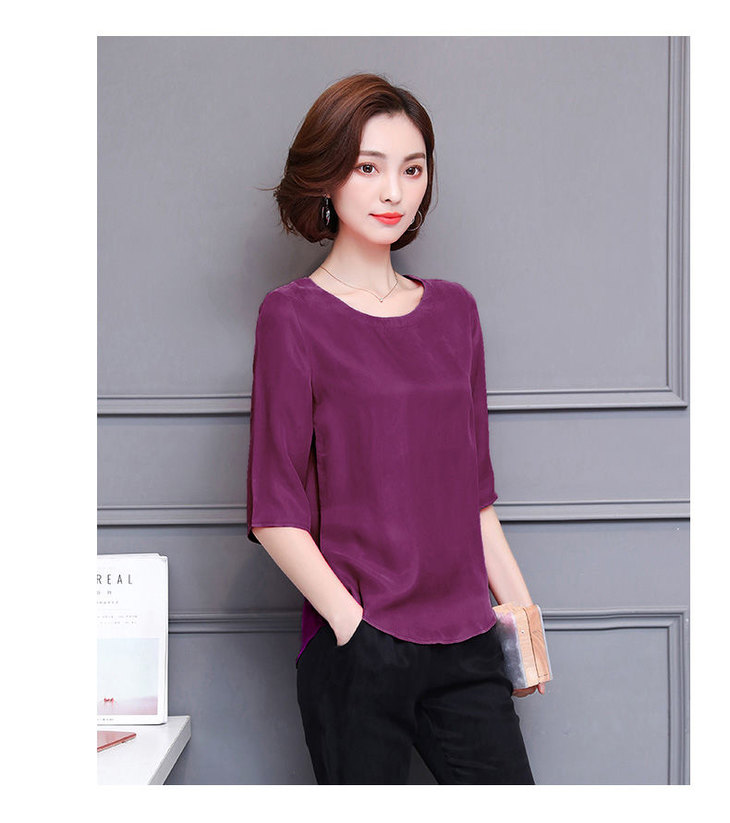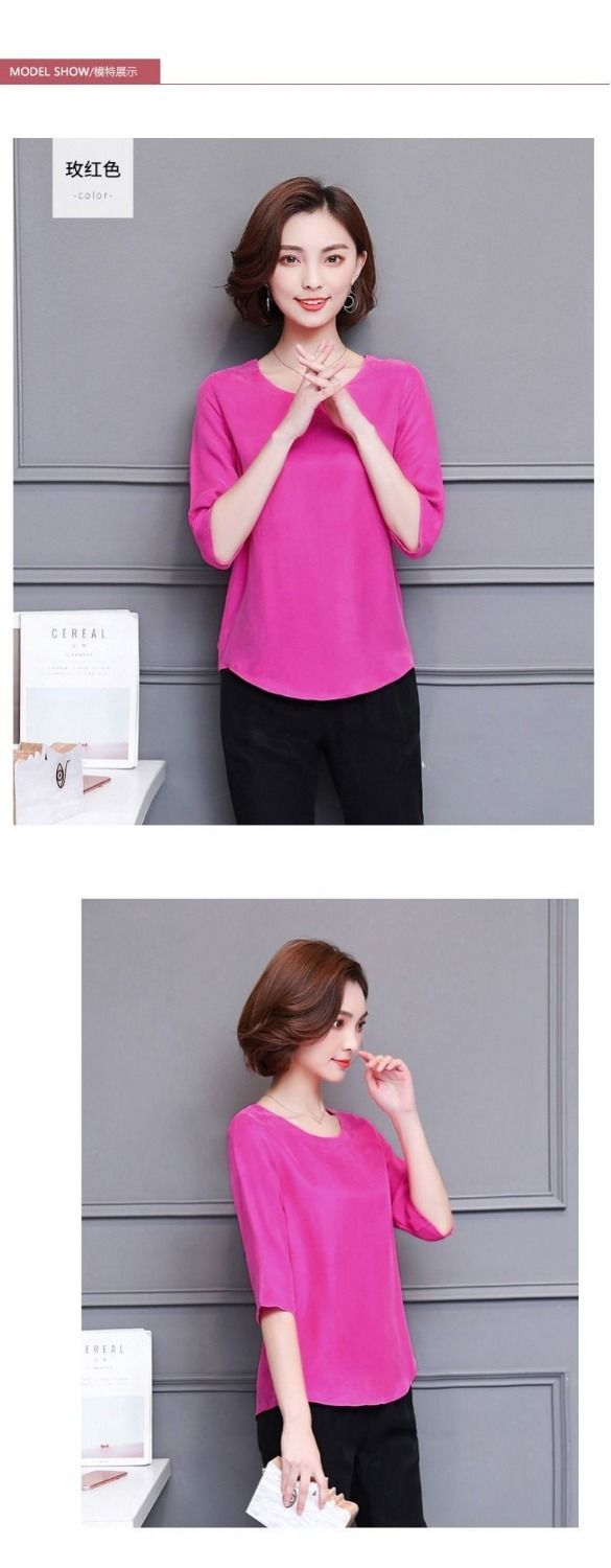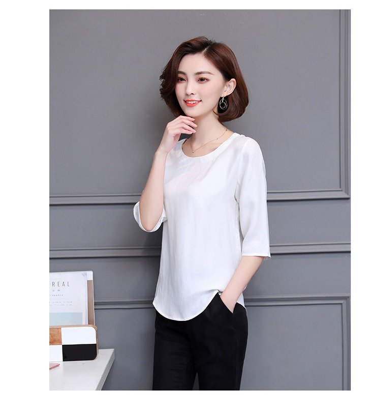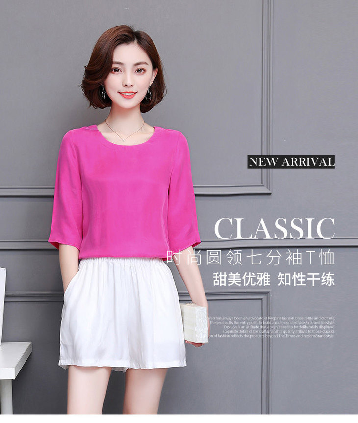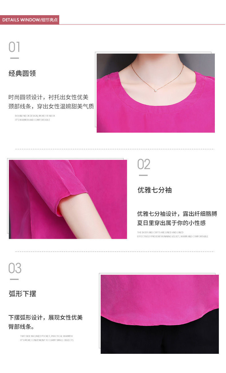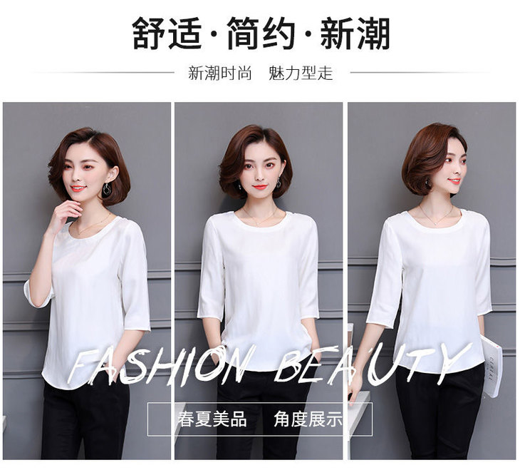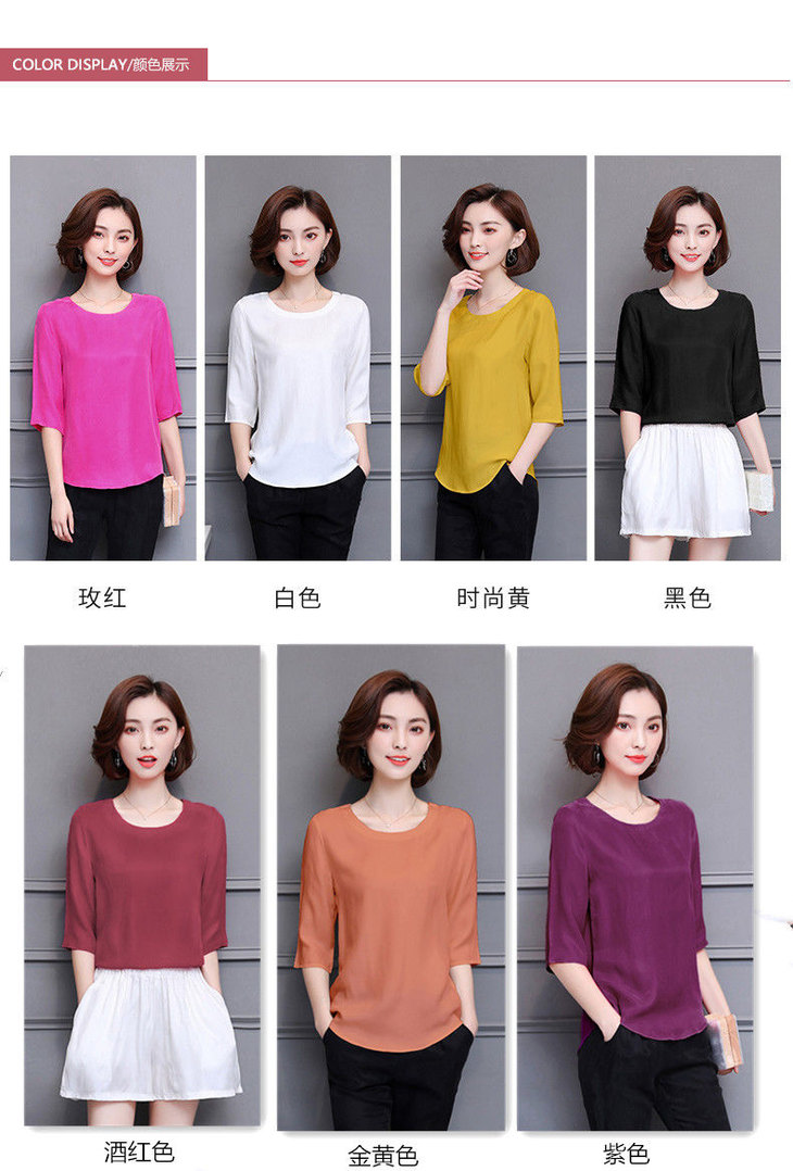 JXG-宽松重磅仿真丝上衣春秋新款大码七分袖t恤女纯色打底衫妈妈装