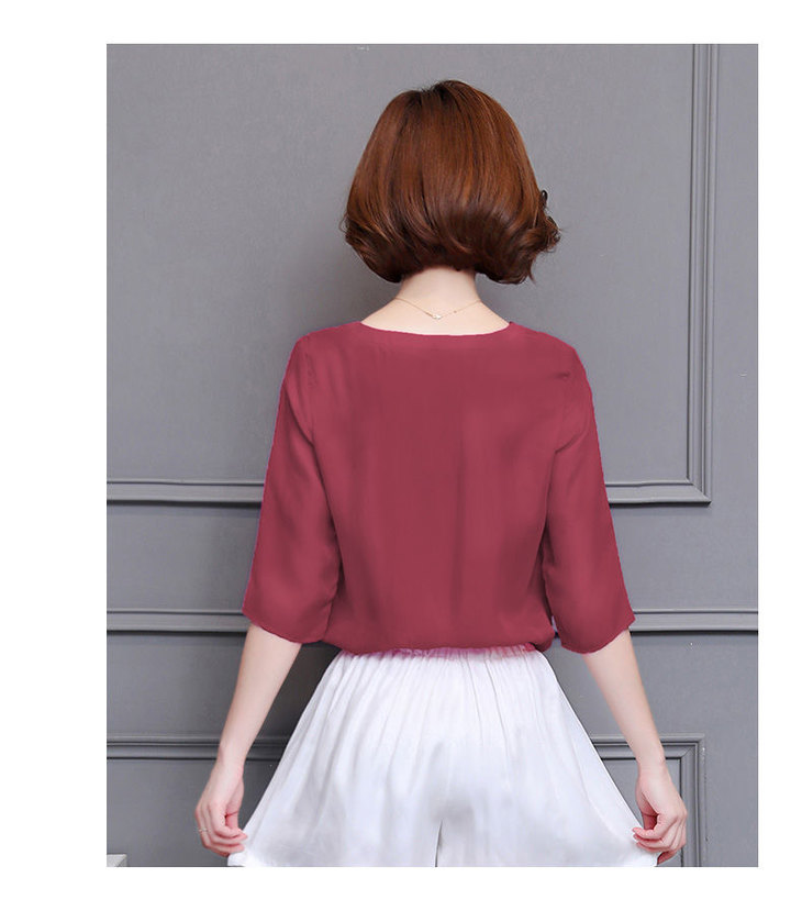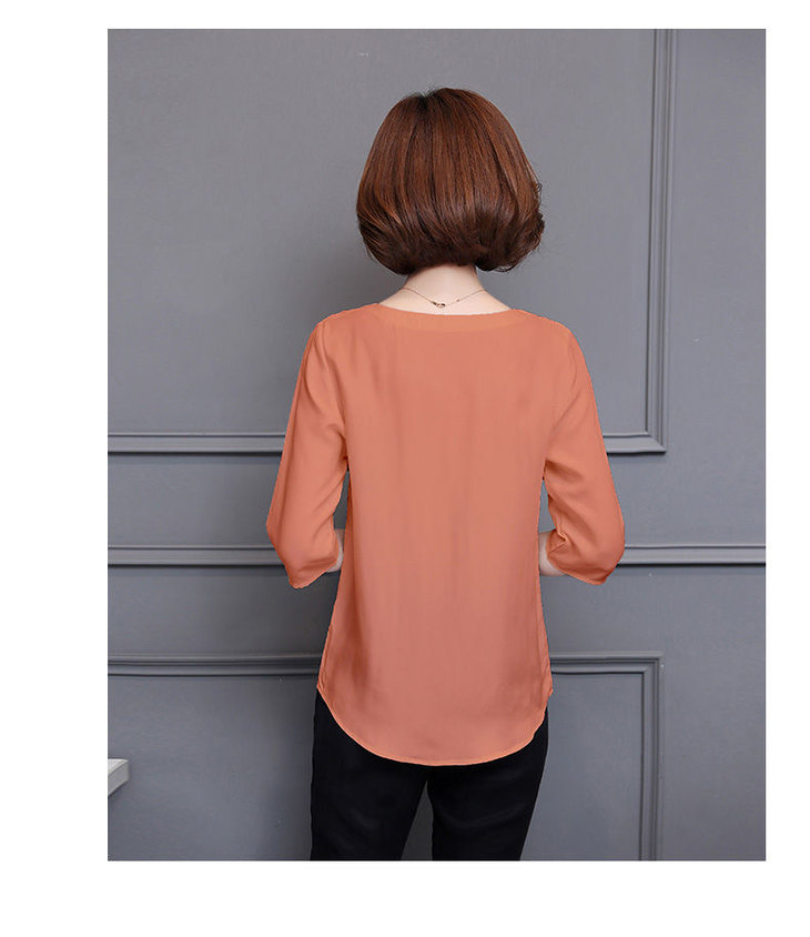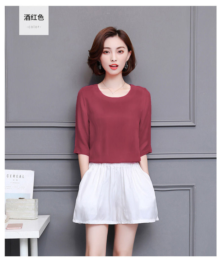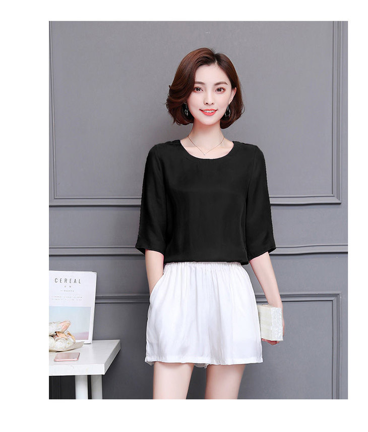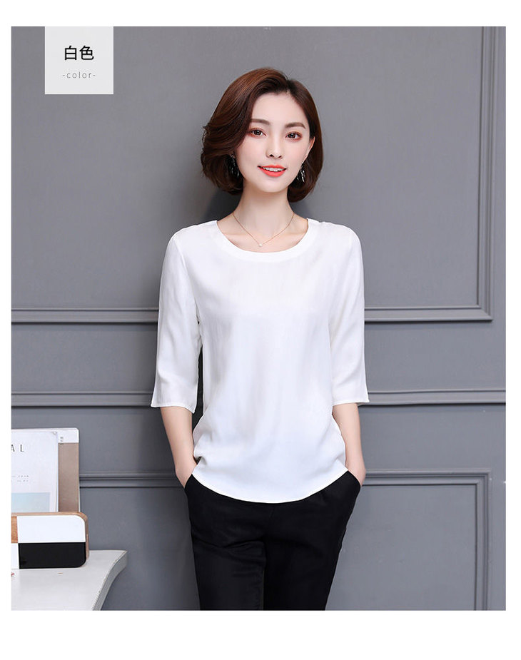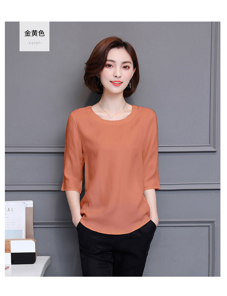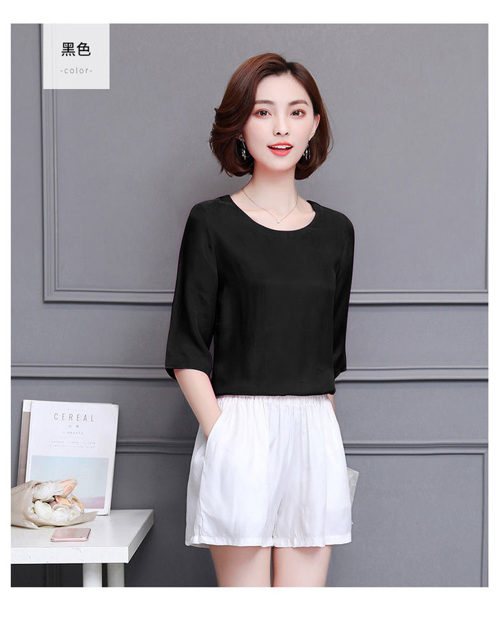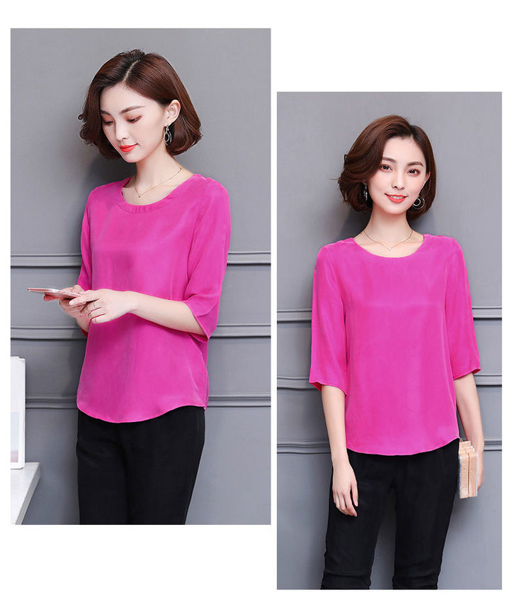 JXG-宽松重磅仿真丝上衣春秋新款大码七分袖t恤女纯色打底衫妈妈装