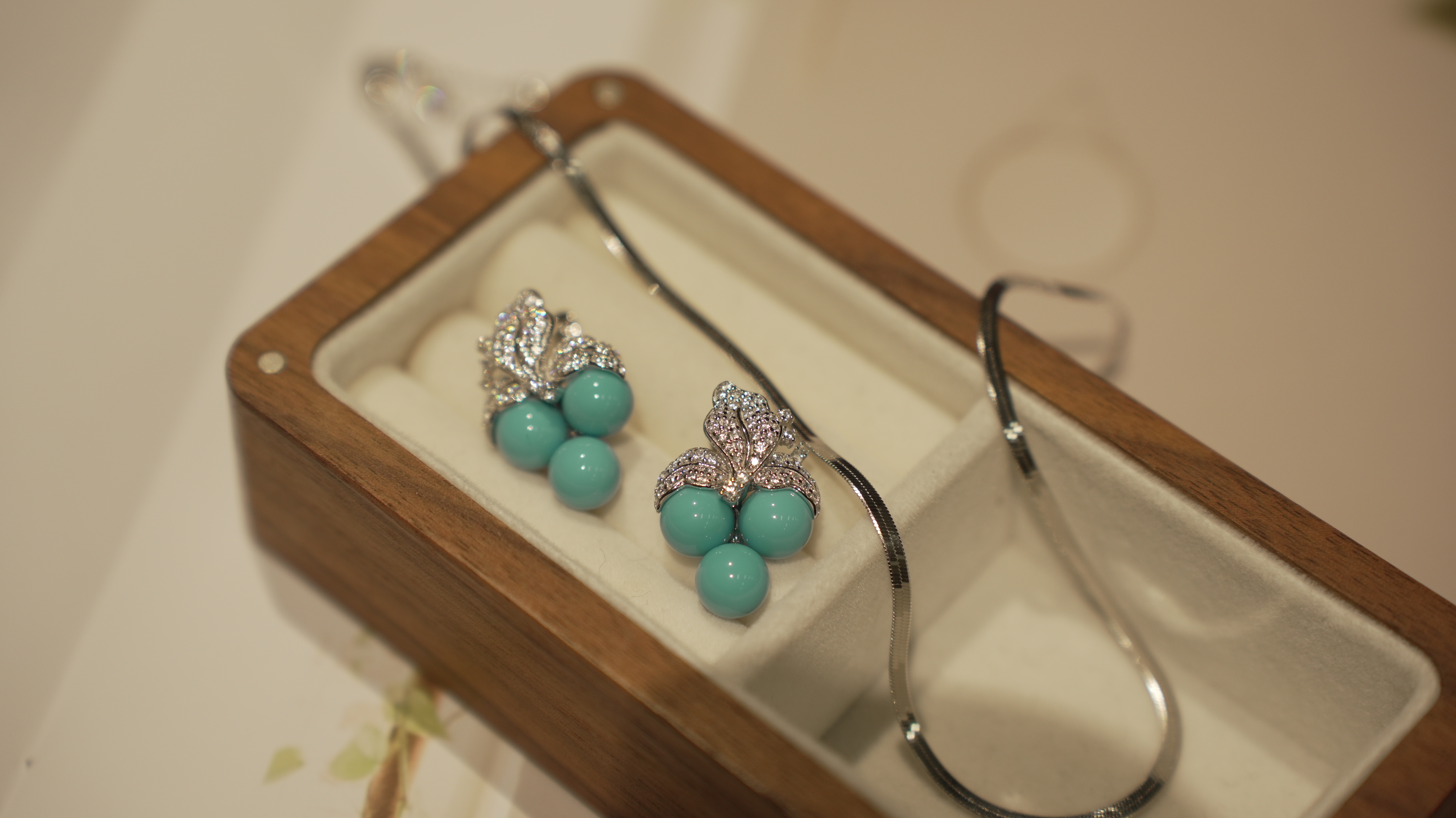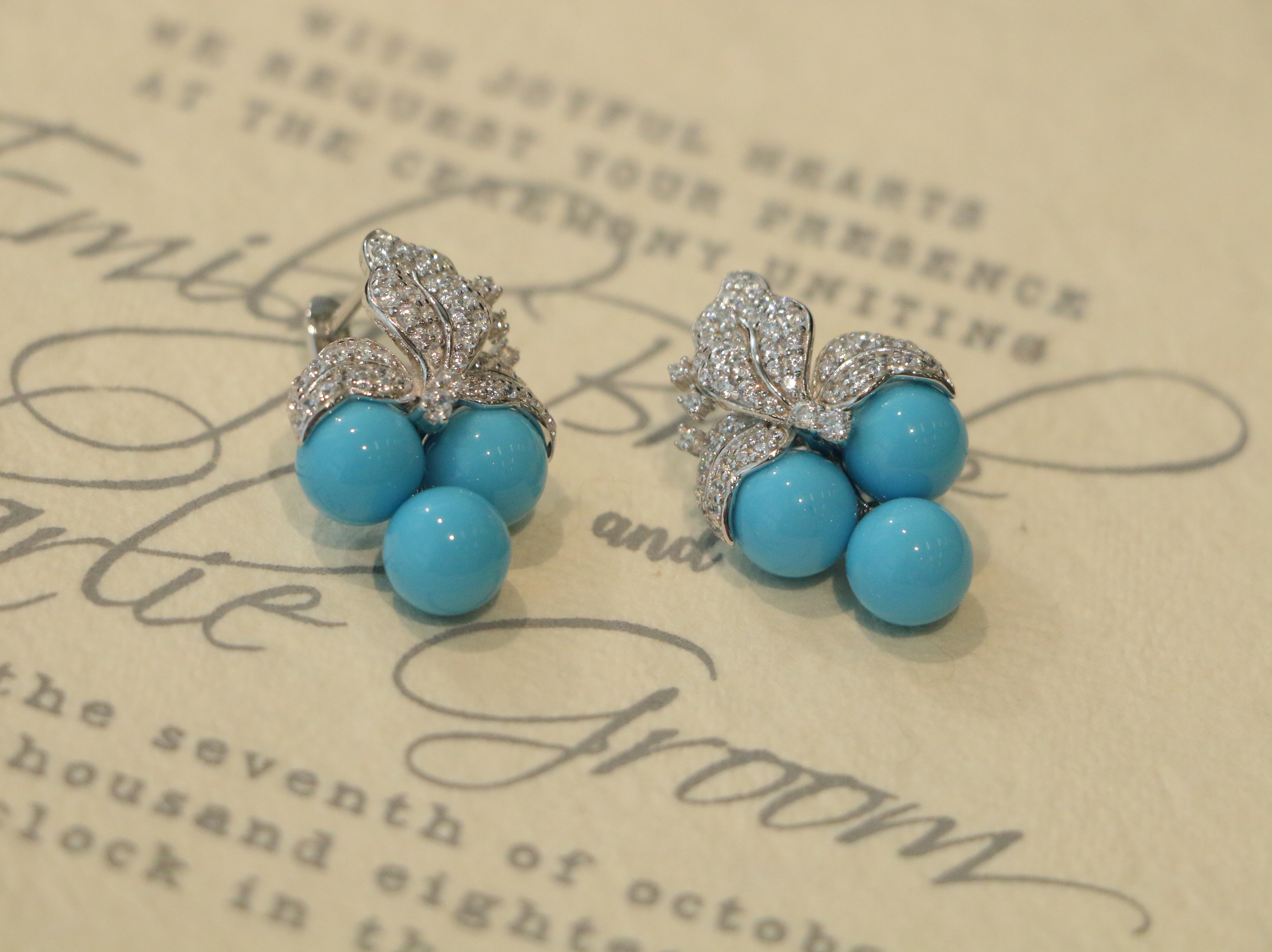 葡萄造型耳饰,Perperle系列,925银,人造绿松。